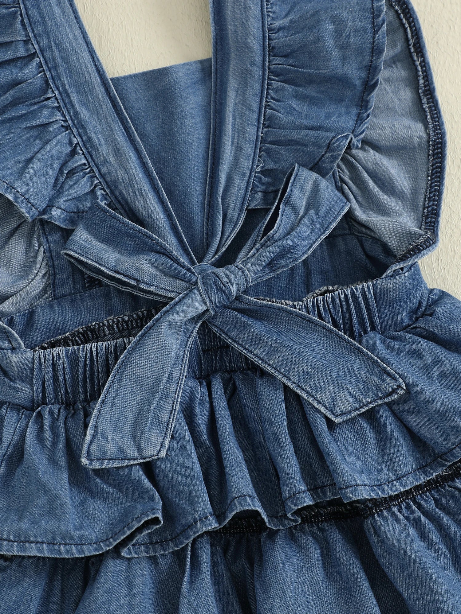 - Style: Two-piece set (denim romper dress + bowknot hairband)