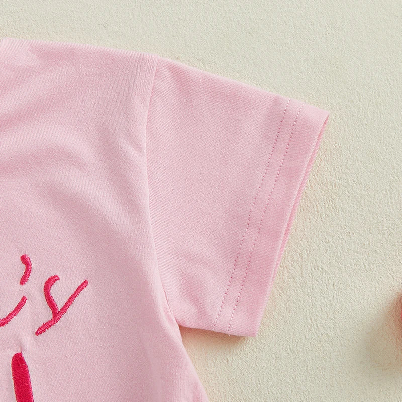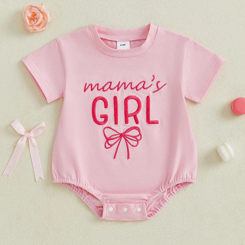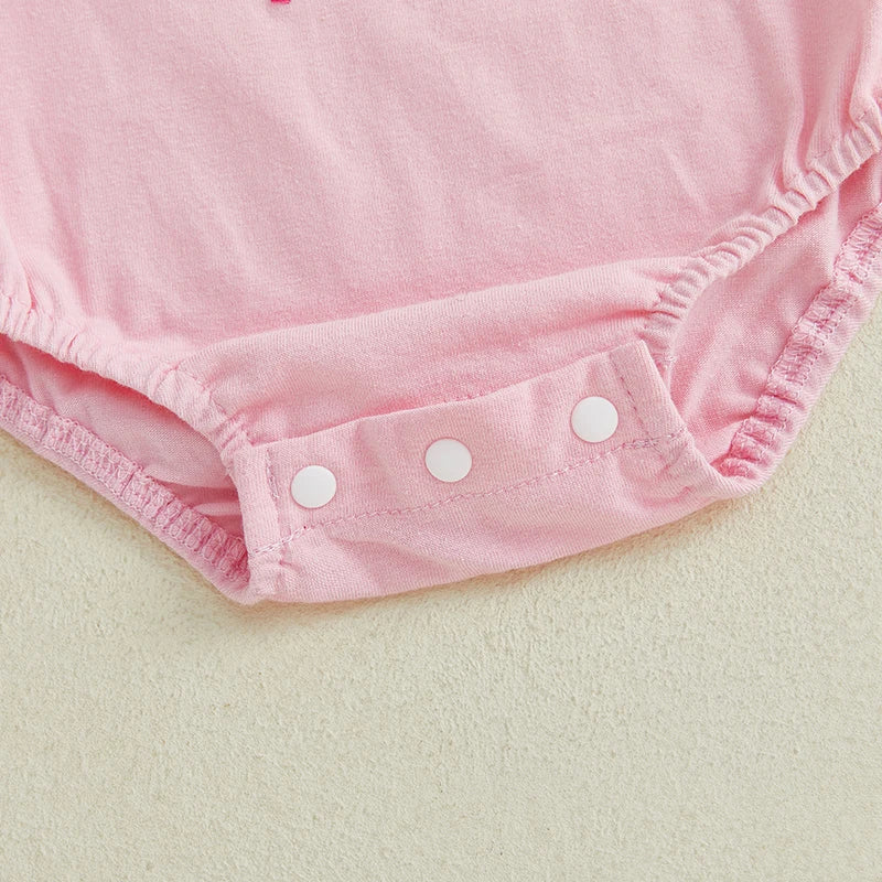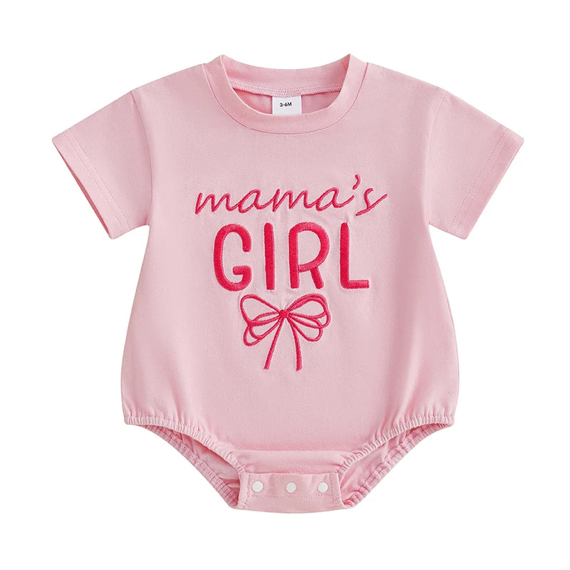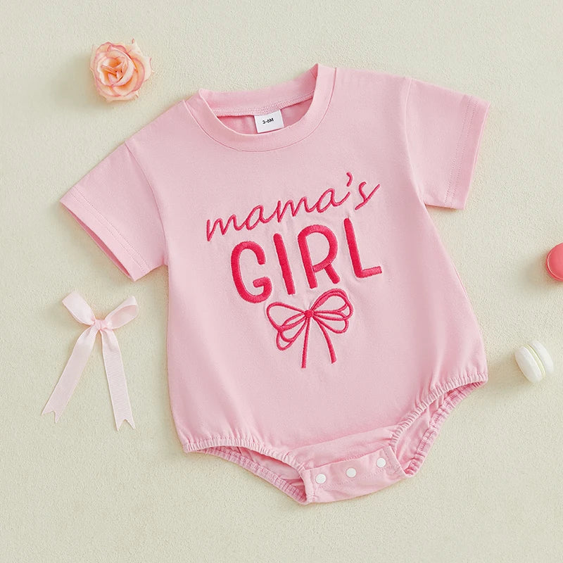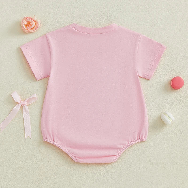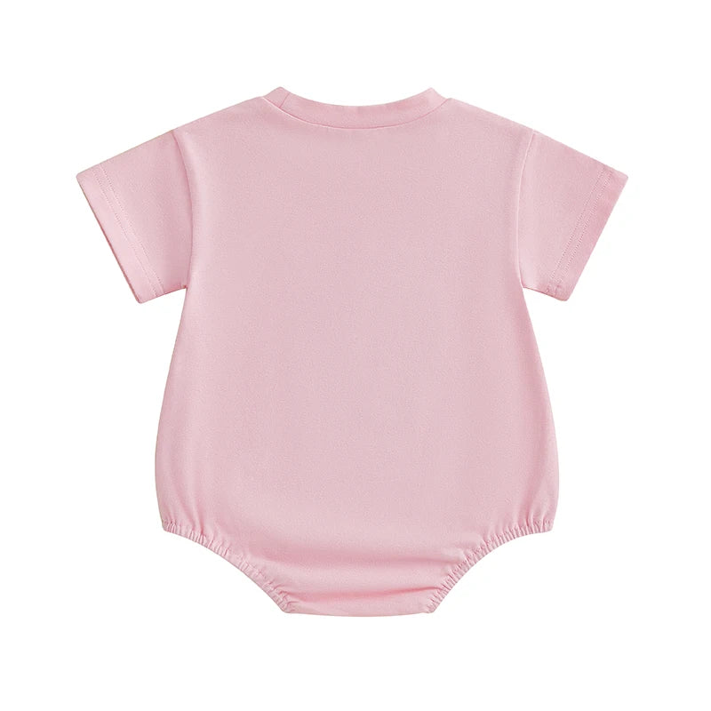 0-18M Baby Girls Summer Romper Short Sleeve Bow Letter Embroidery Bodysuit Babygrow Jumpsuit