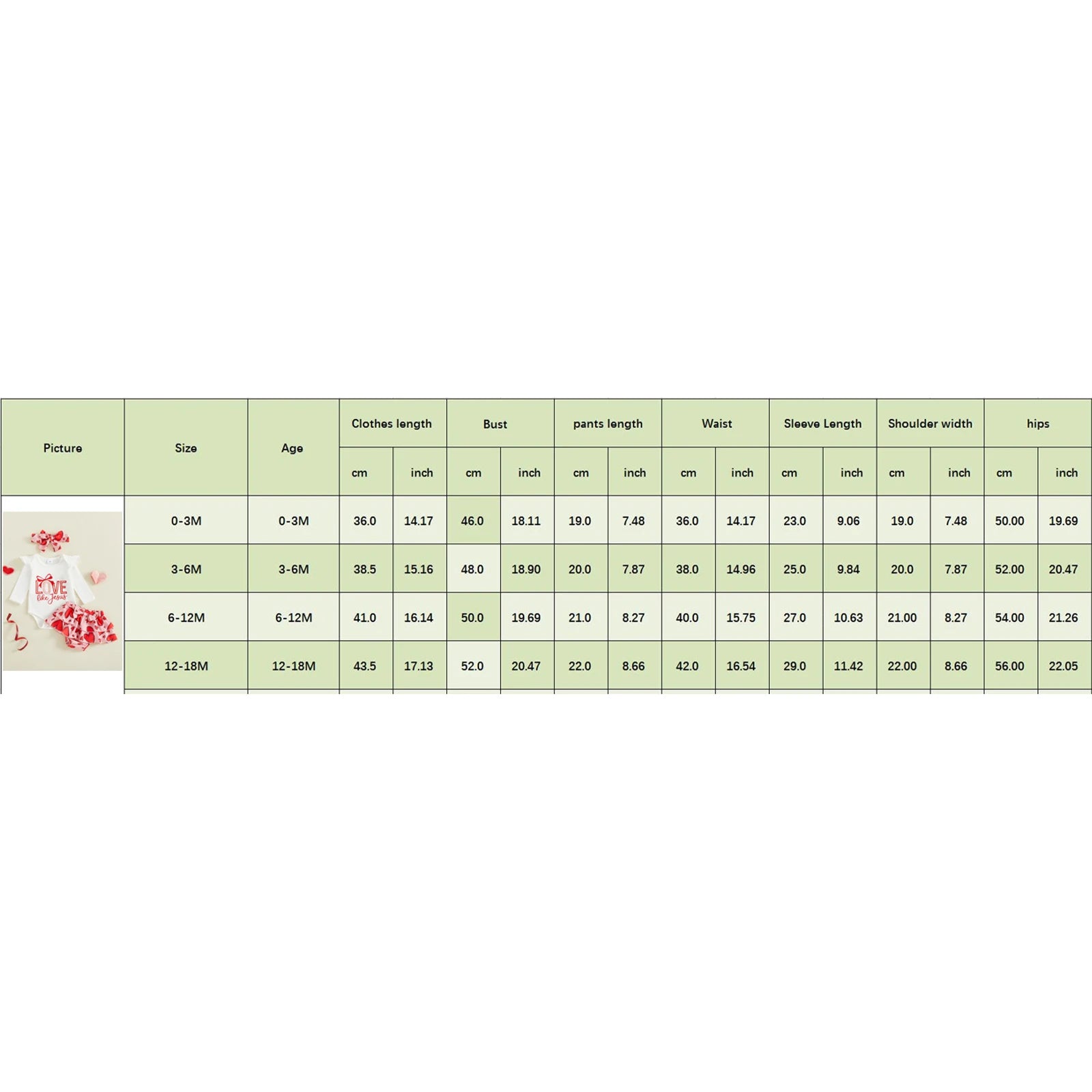Size Guide (Ages 0-18 Months):