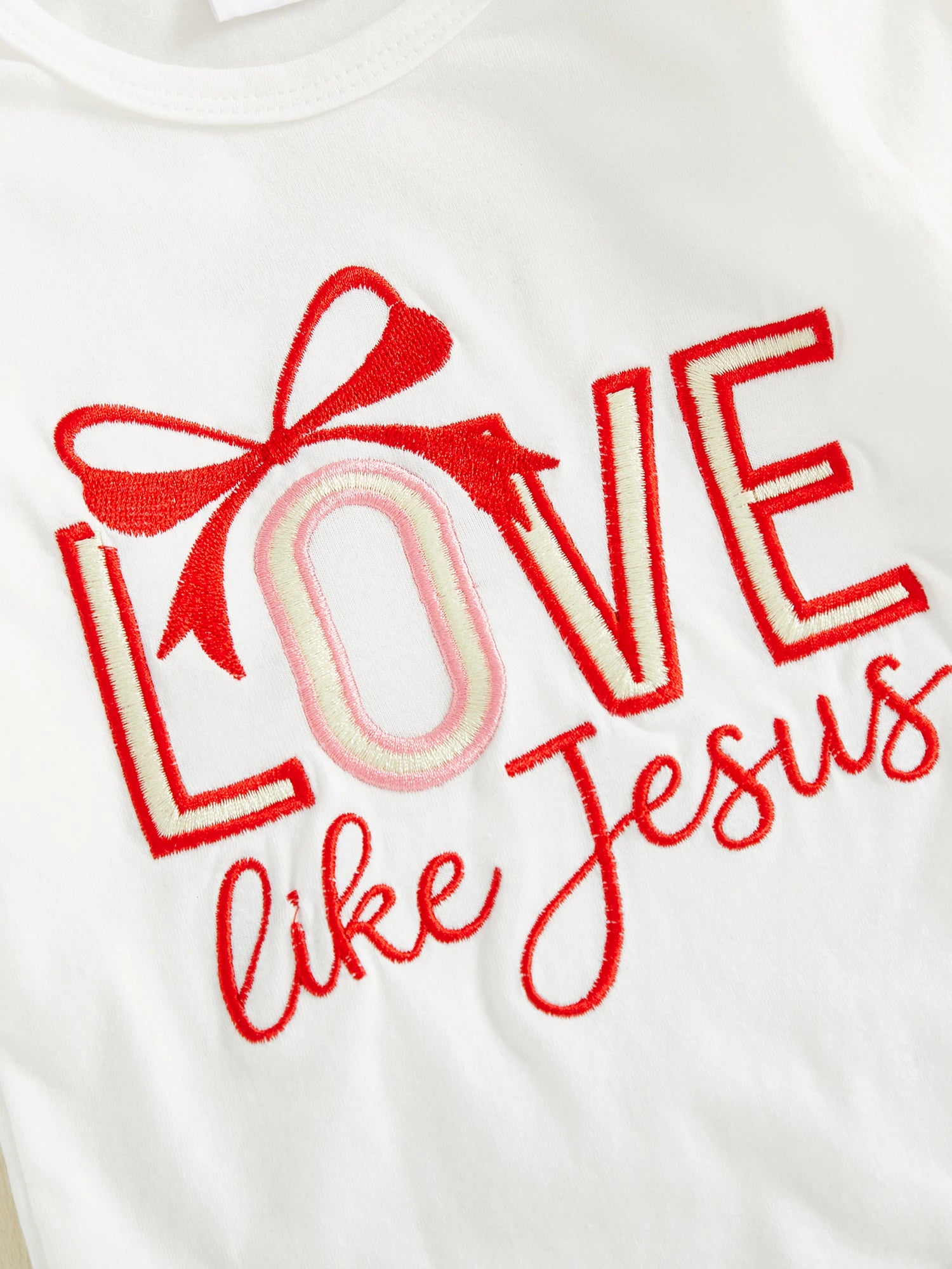 - Adorable letter embroidery and heart print details