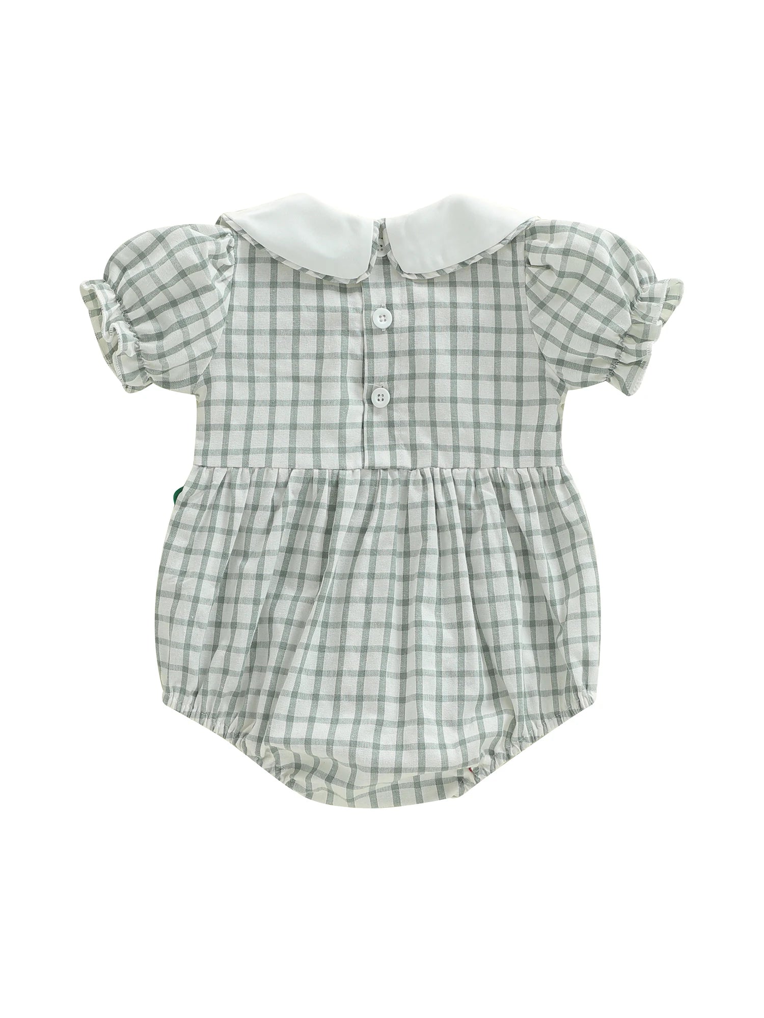 Celebrate Irish heritage with this adorable plaid romper for your little one. Featuring charming clover and letter embroidery with a sweet doll collar and short sleeves, this delightful jumpsuit is perfect for St. Patrick's Day celebrations or everyday wear.