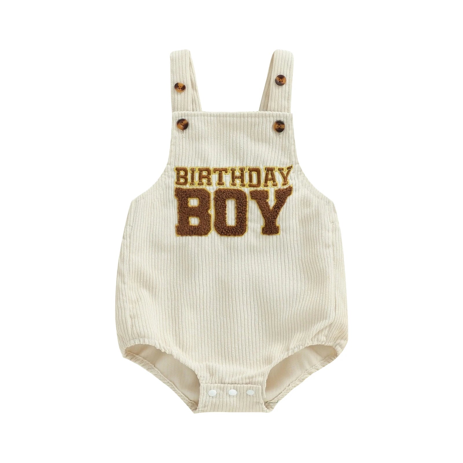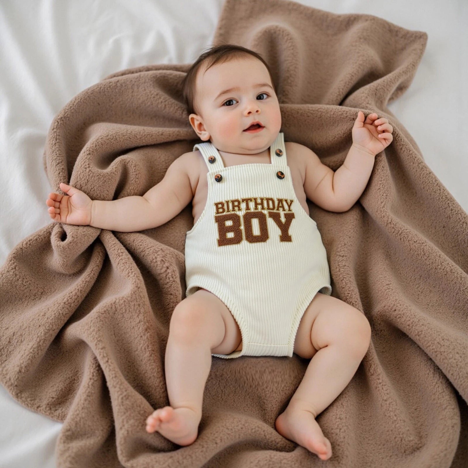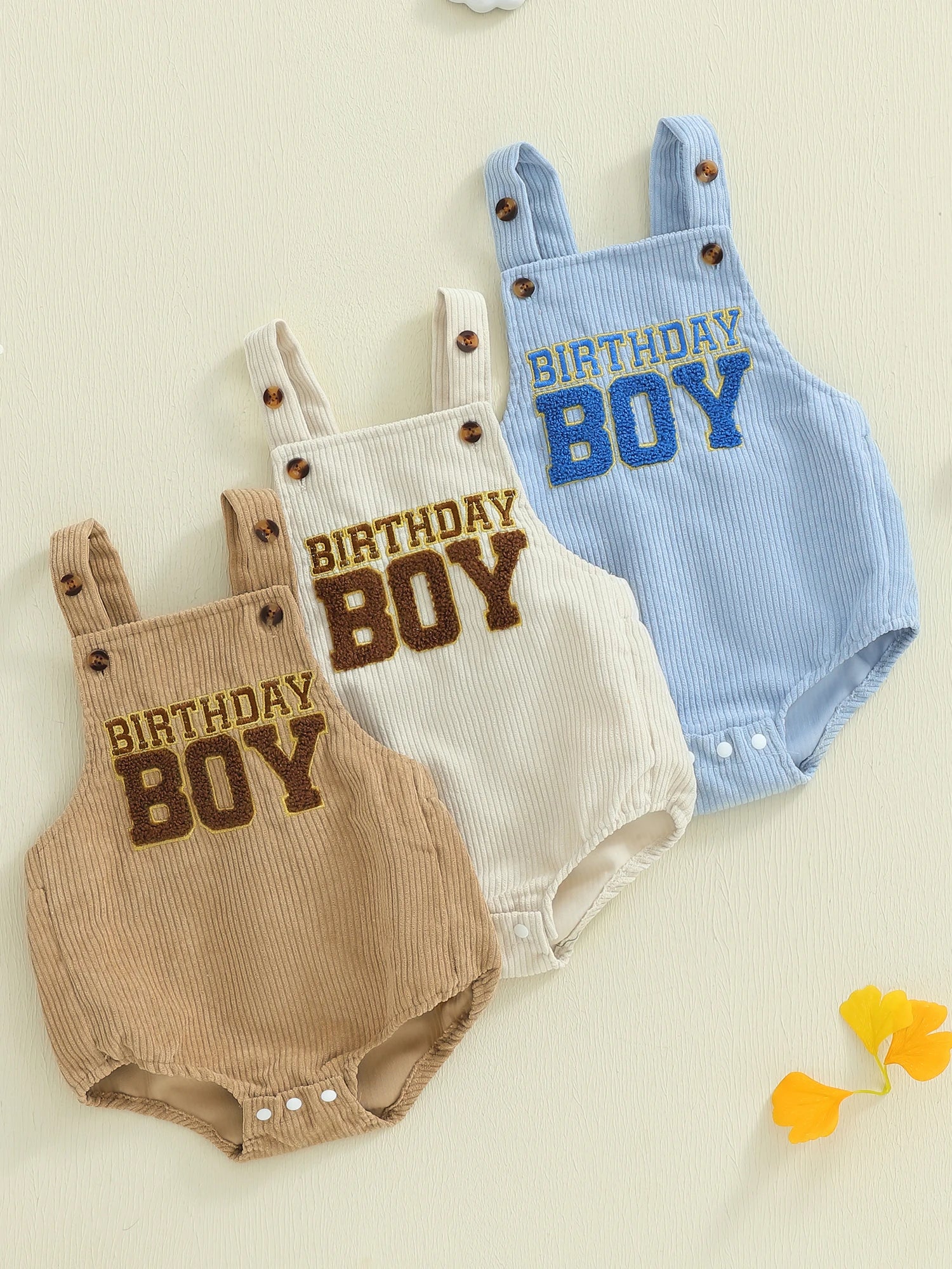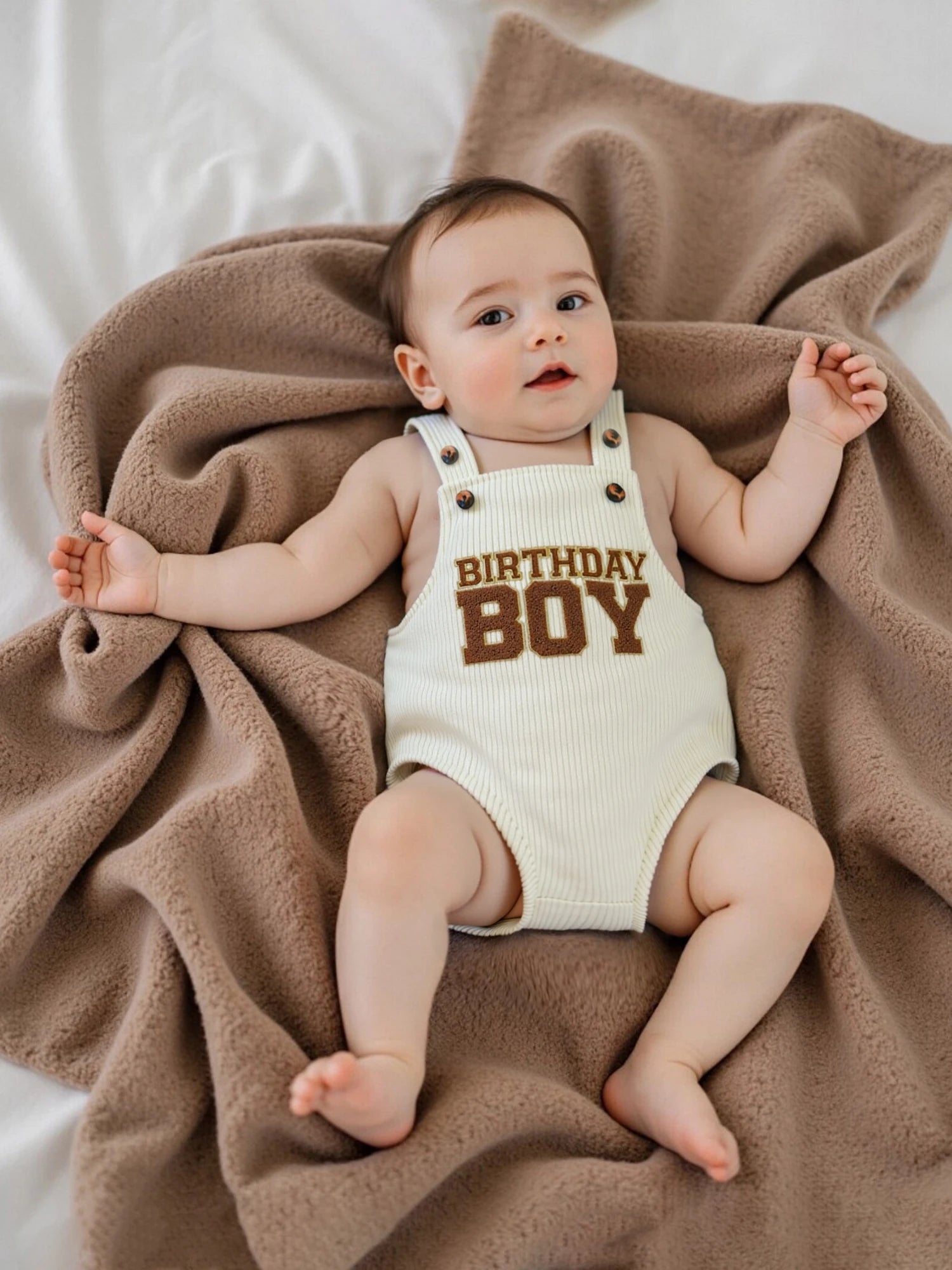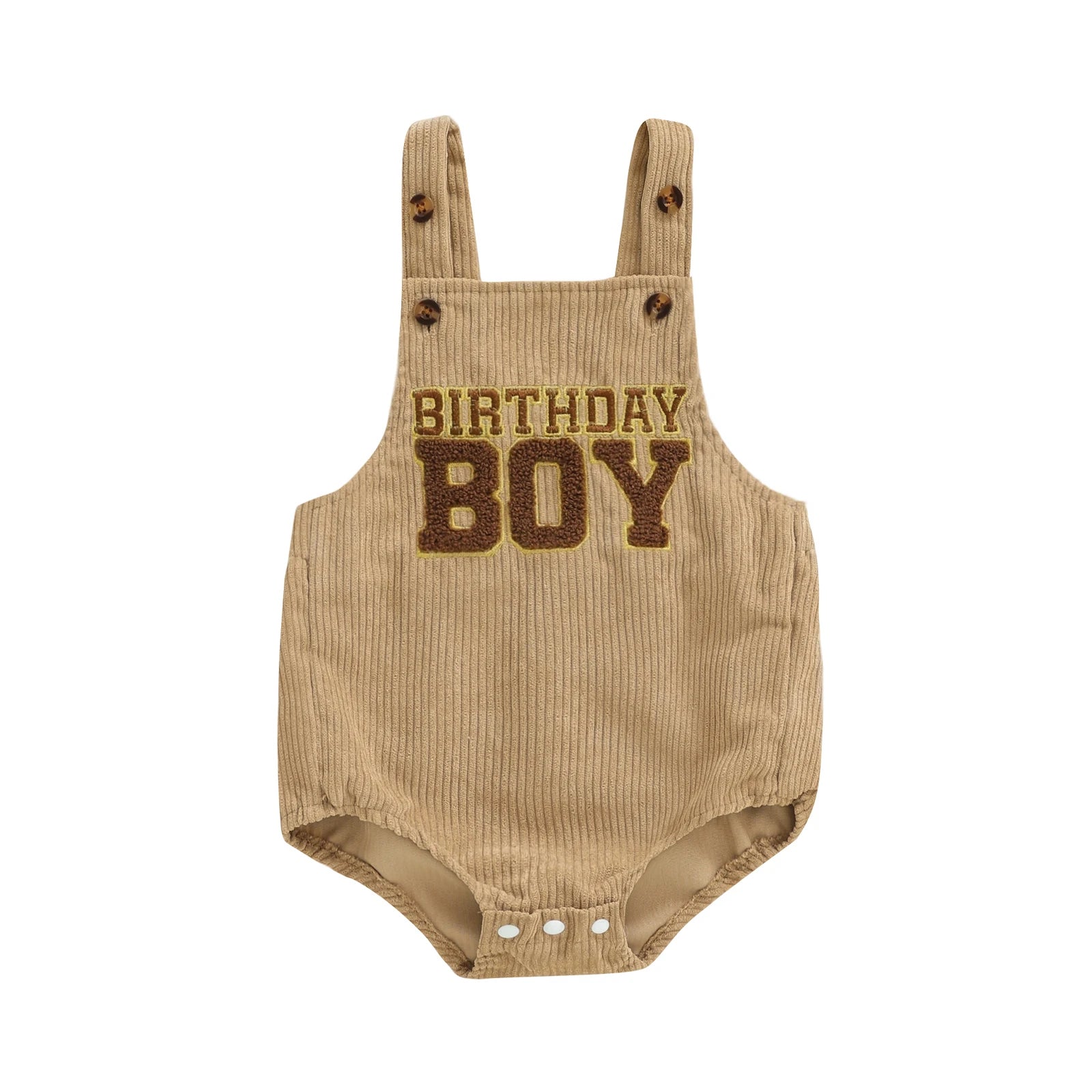 Dress your little gentleman in style with this charming sleeveless romper featuring beautiful letter embroidery and a trendy square neckline. Perfect for warm weather and special occasions.