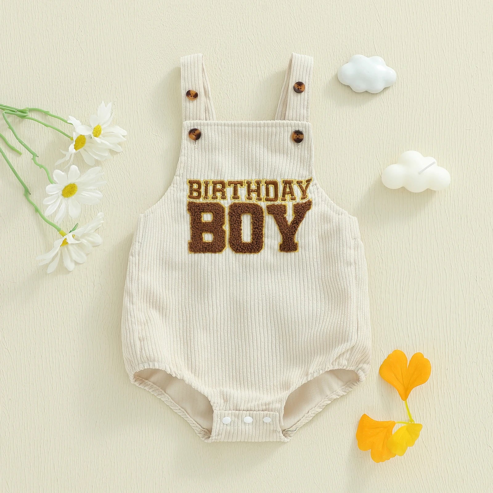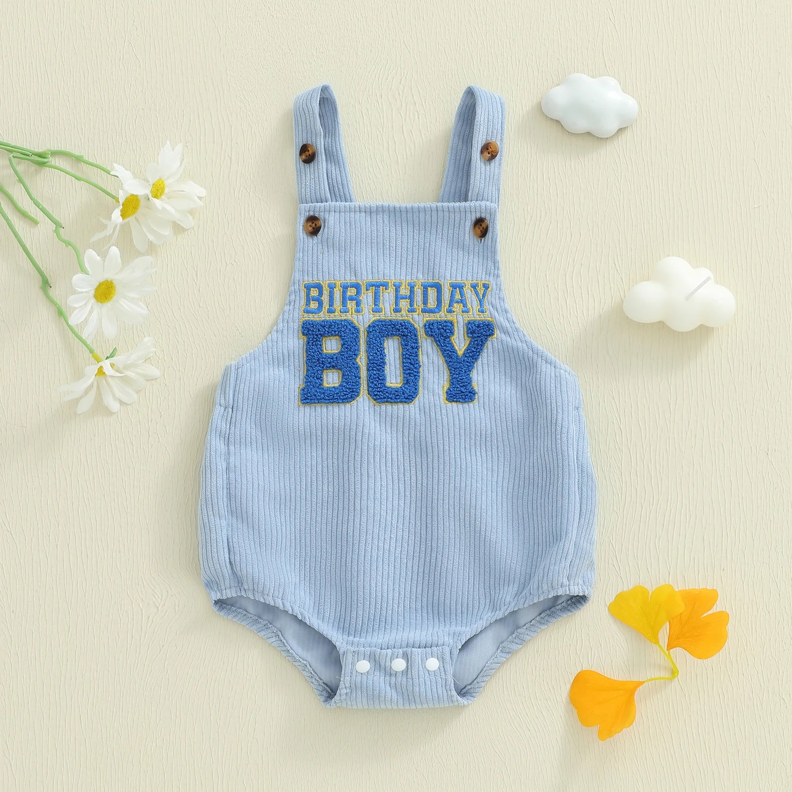 Newborn Baby Boys Romper - Letter Embroidery Square Neck Sleeveless Jumpsuit (0-18M)