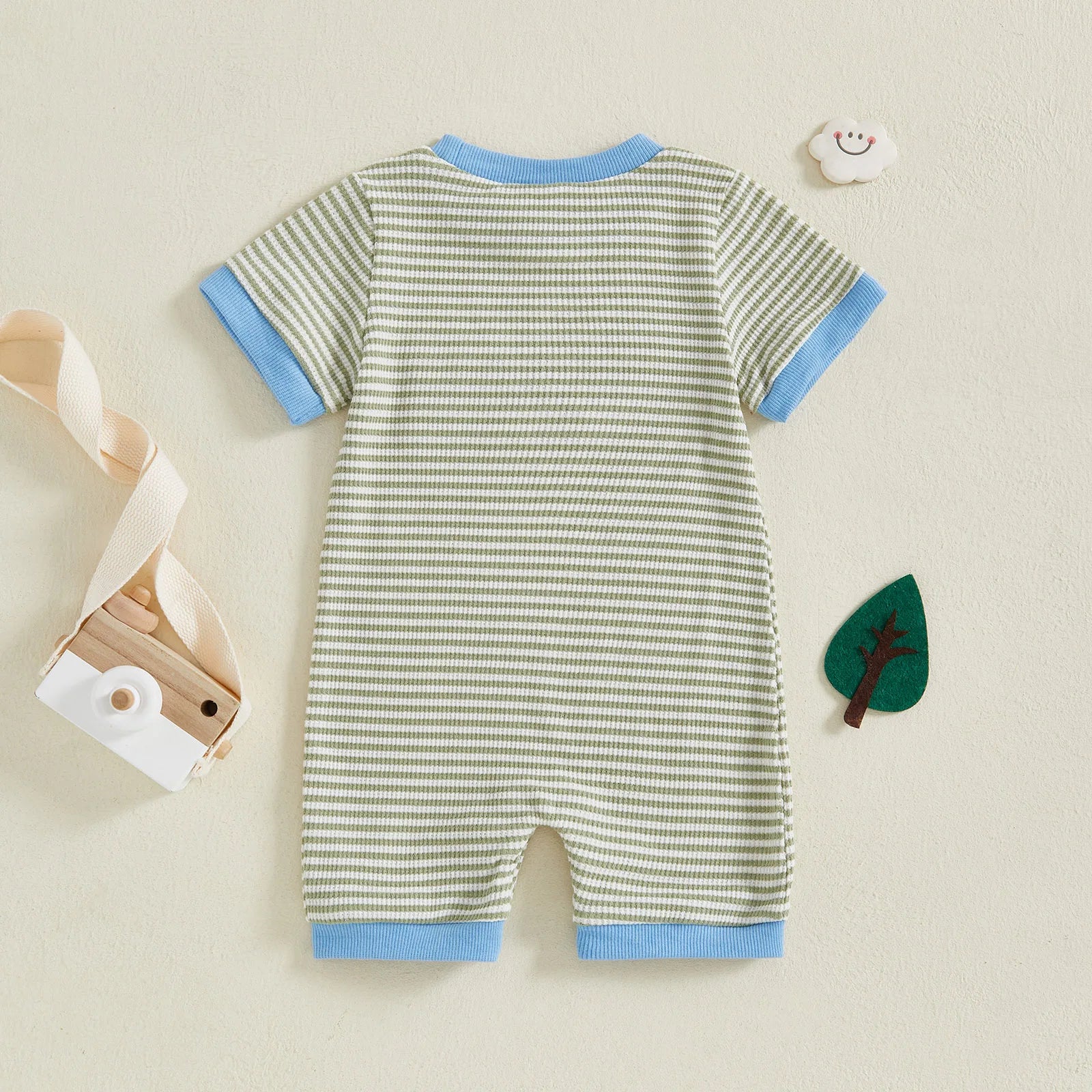 Newborn Baby Boys Summer Romper - Letter Embroidery Striped Jumpsuit (0-18M)