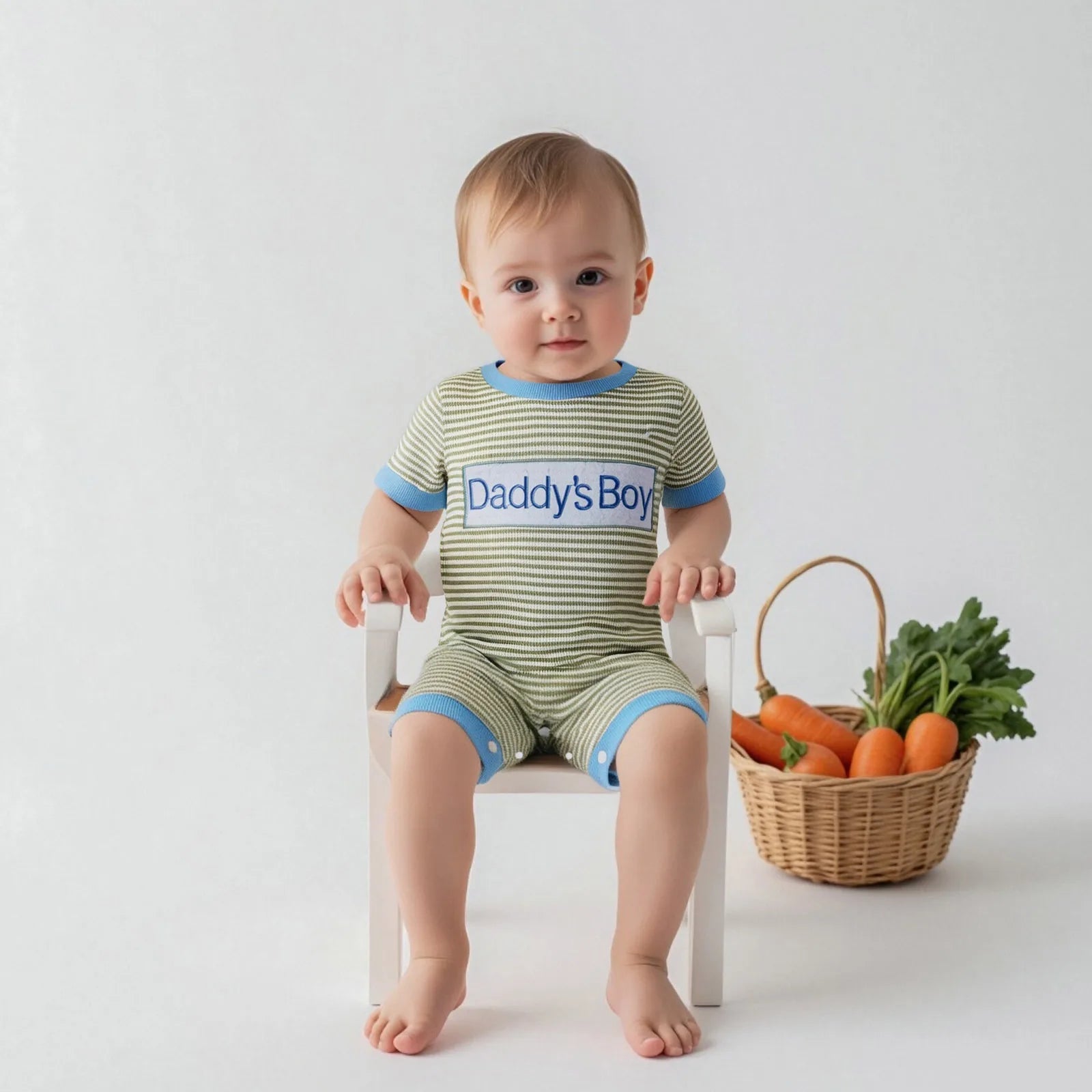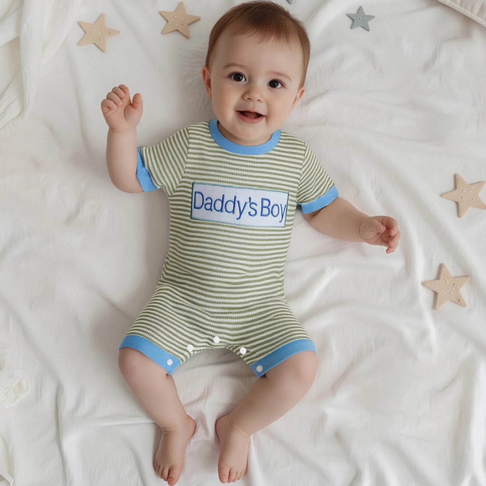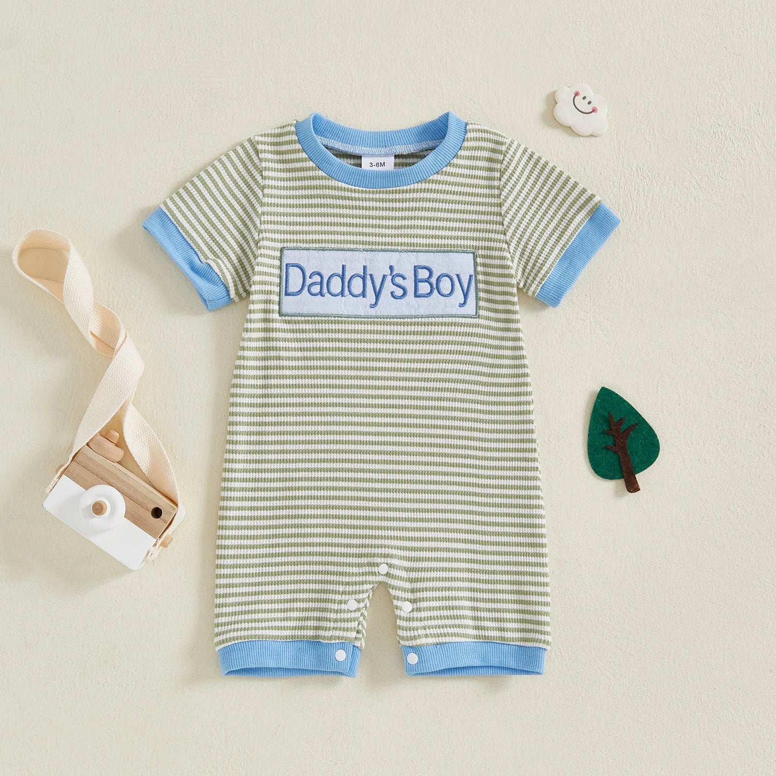 Create precious memories with dad in this sweet romper that combines comfort with adorable style. The letter embroidery and striped pattern make it perfect for capturing those special Father's Day moments!