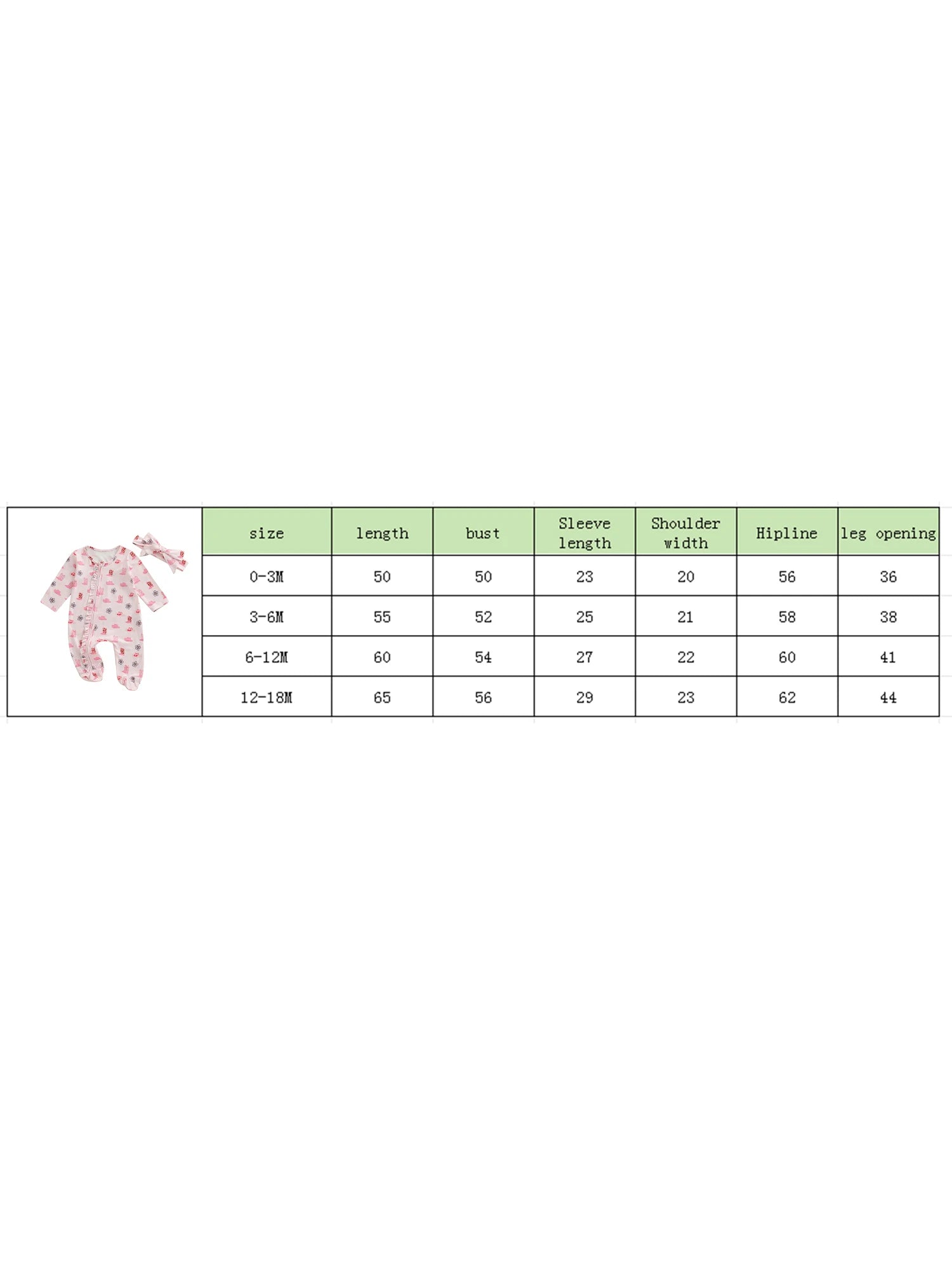 This adorable long-sleeve jumpsuit features a charming floral hat print design and comes complete with a matching headband. The convenient zip-up closure and footed design make dressing easy while keeping your little one warm and comfortable throughout the cooler months. Suitable for both baby girls and boys aged 0-18 months.