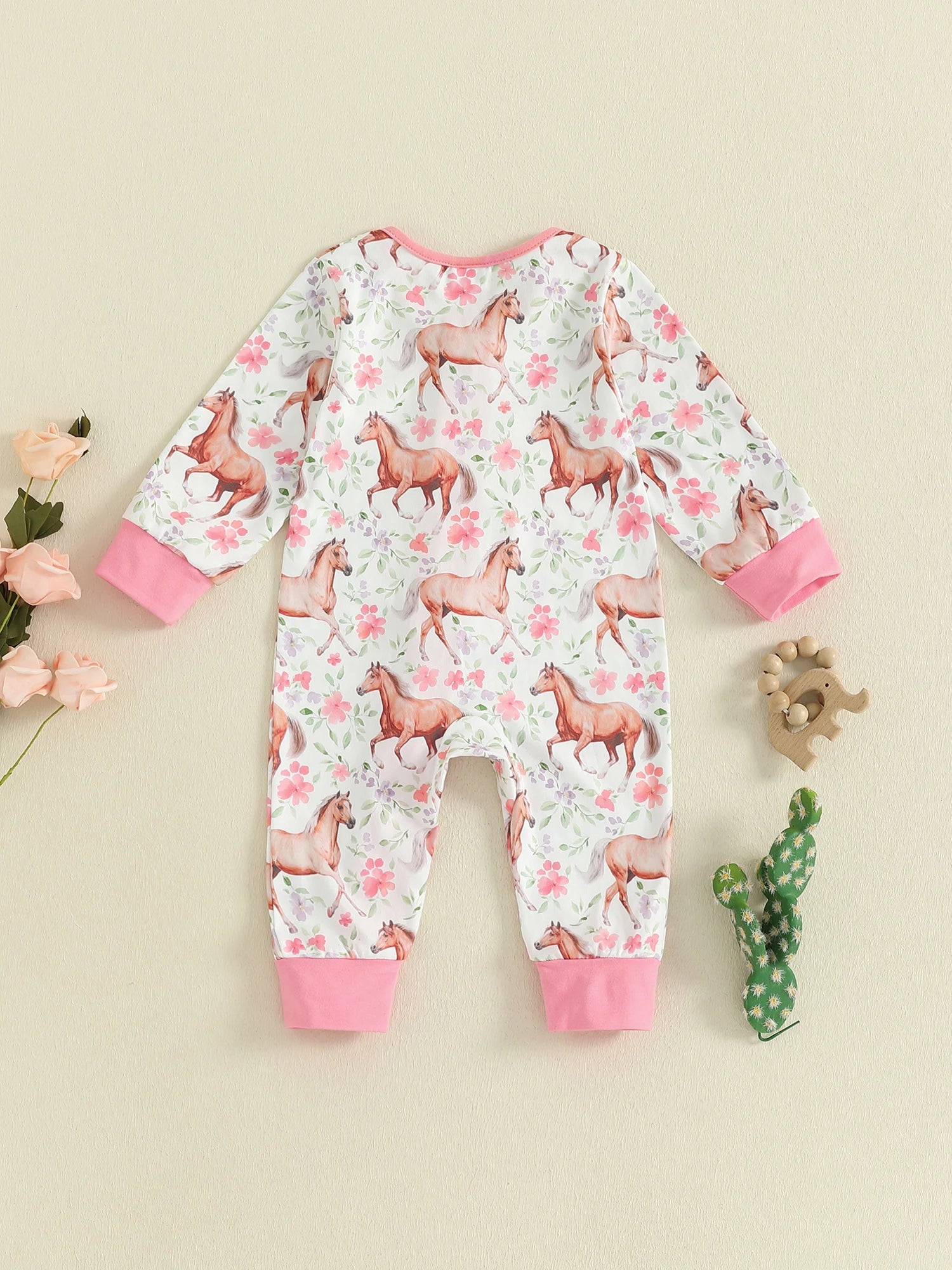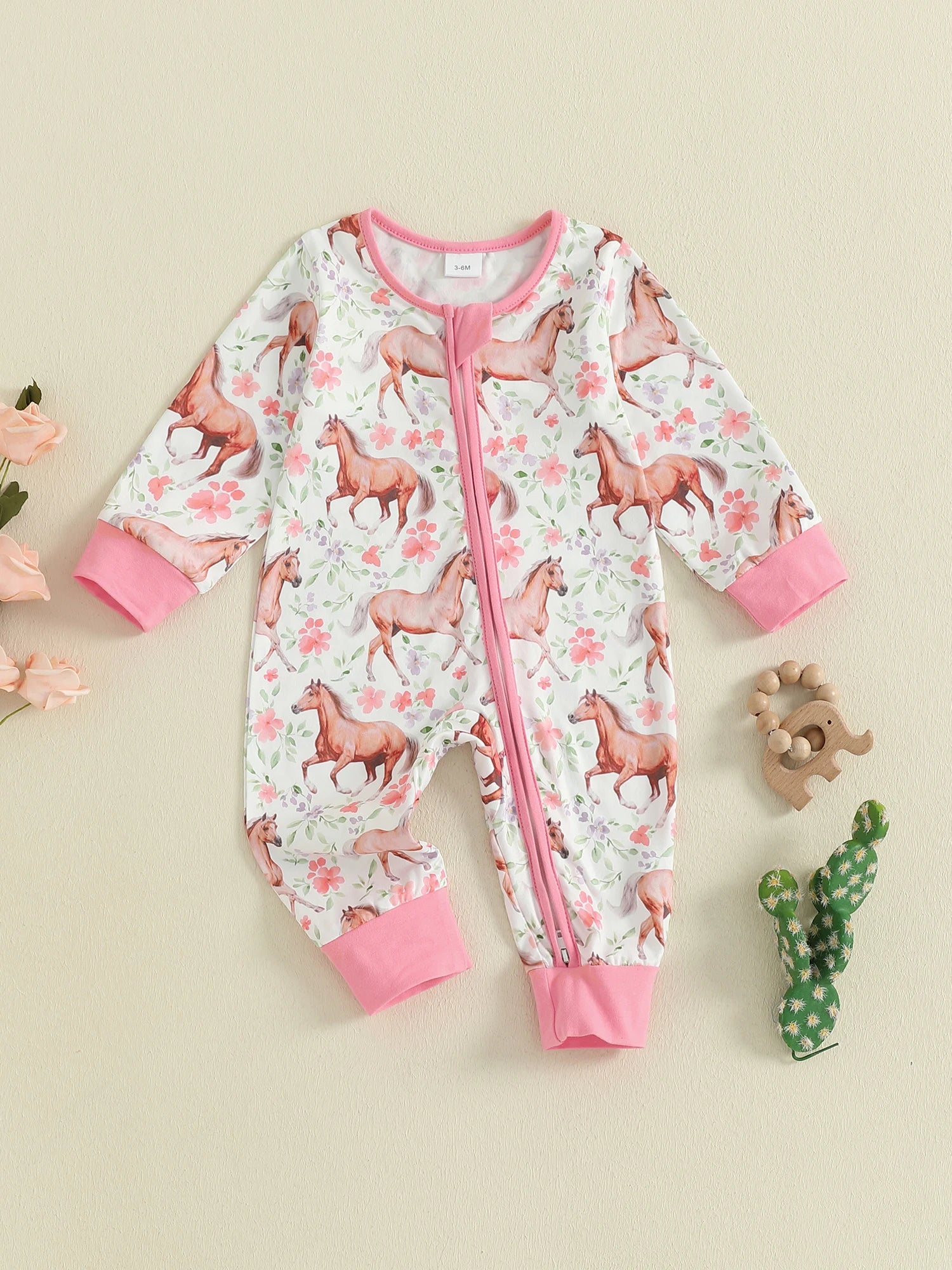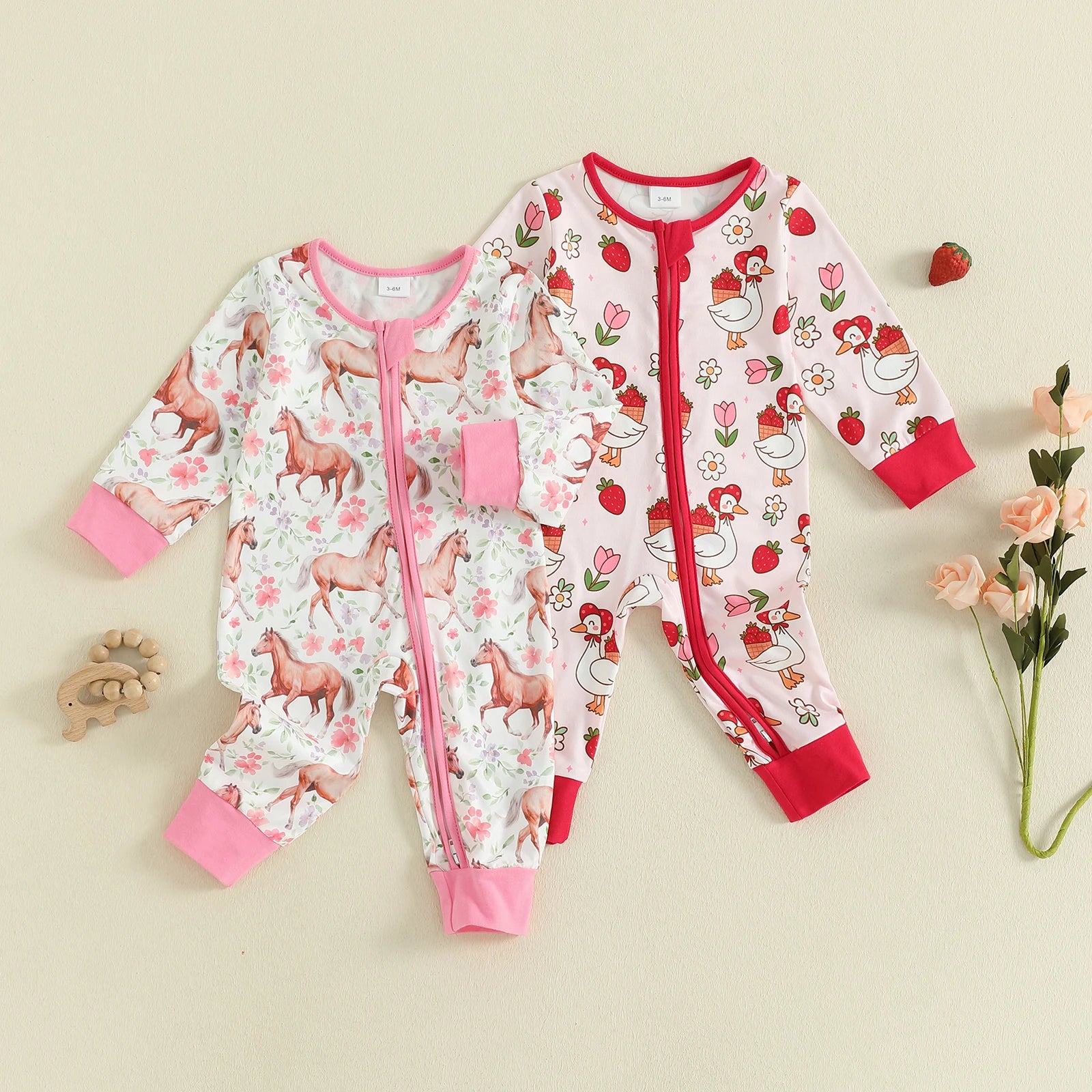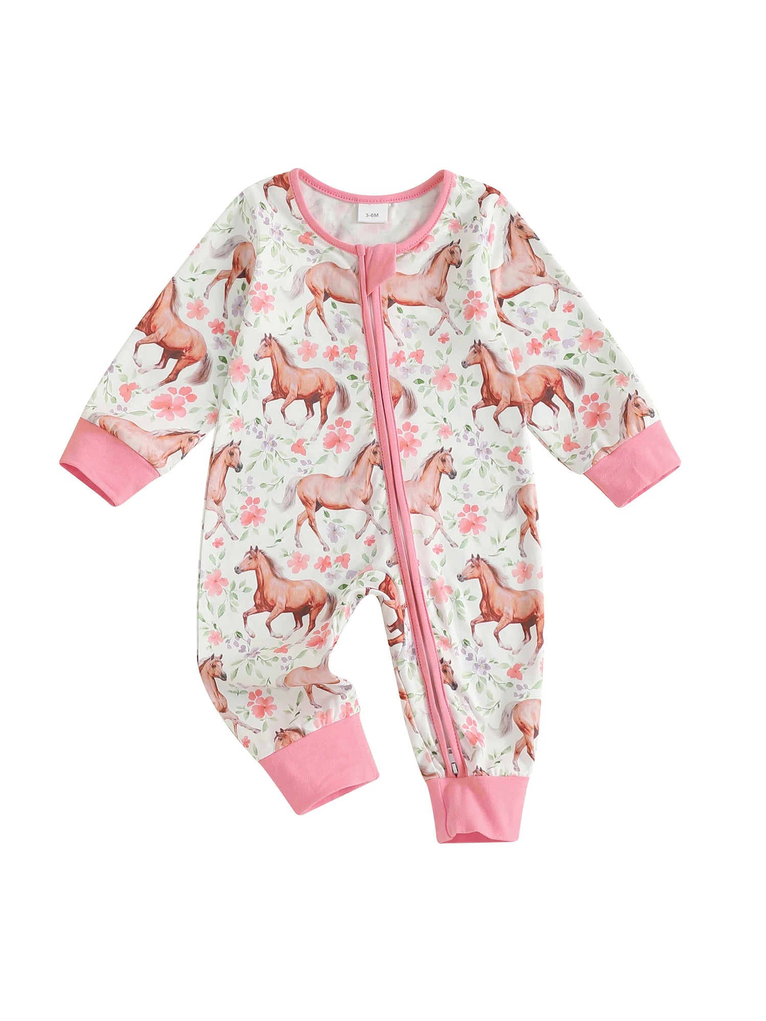 Baby Animal Print Romper - Long Sleeve Zipper Jumpsuit for Autumn Winter (0-18M)