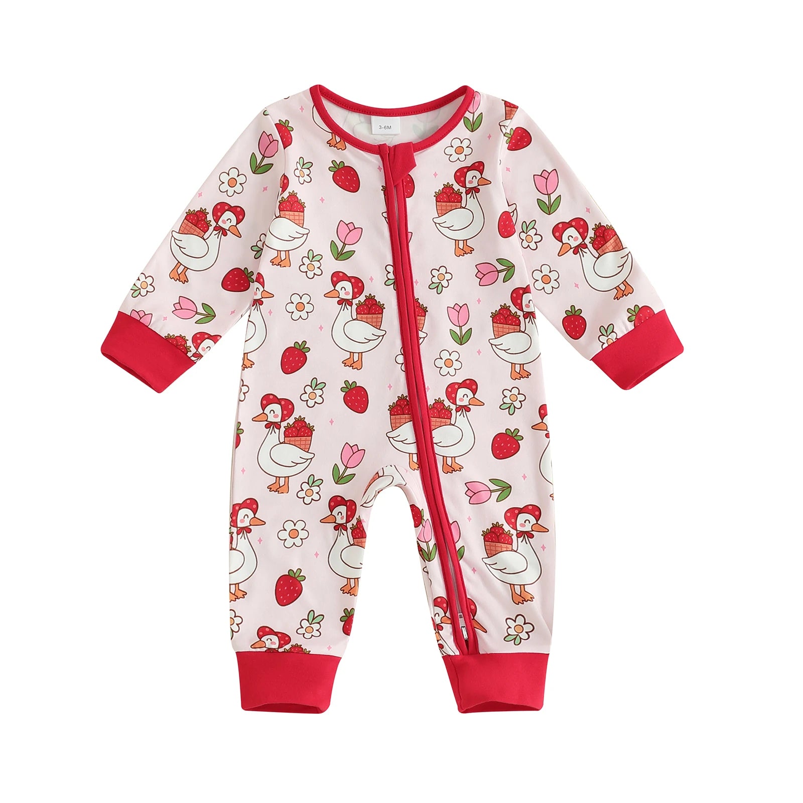 Keep your little one cosy and stylish this autumn and winter with this charming animal print romper. Featuring a convenient zipper closure, comfortable long sleeves, and a classic crew neck, this unisex jumpsuit is perfect for newborns and infants aged 0-18 months, suitable for both baby girls and boys.