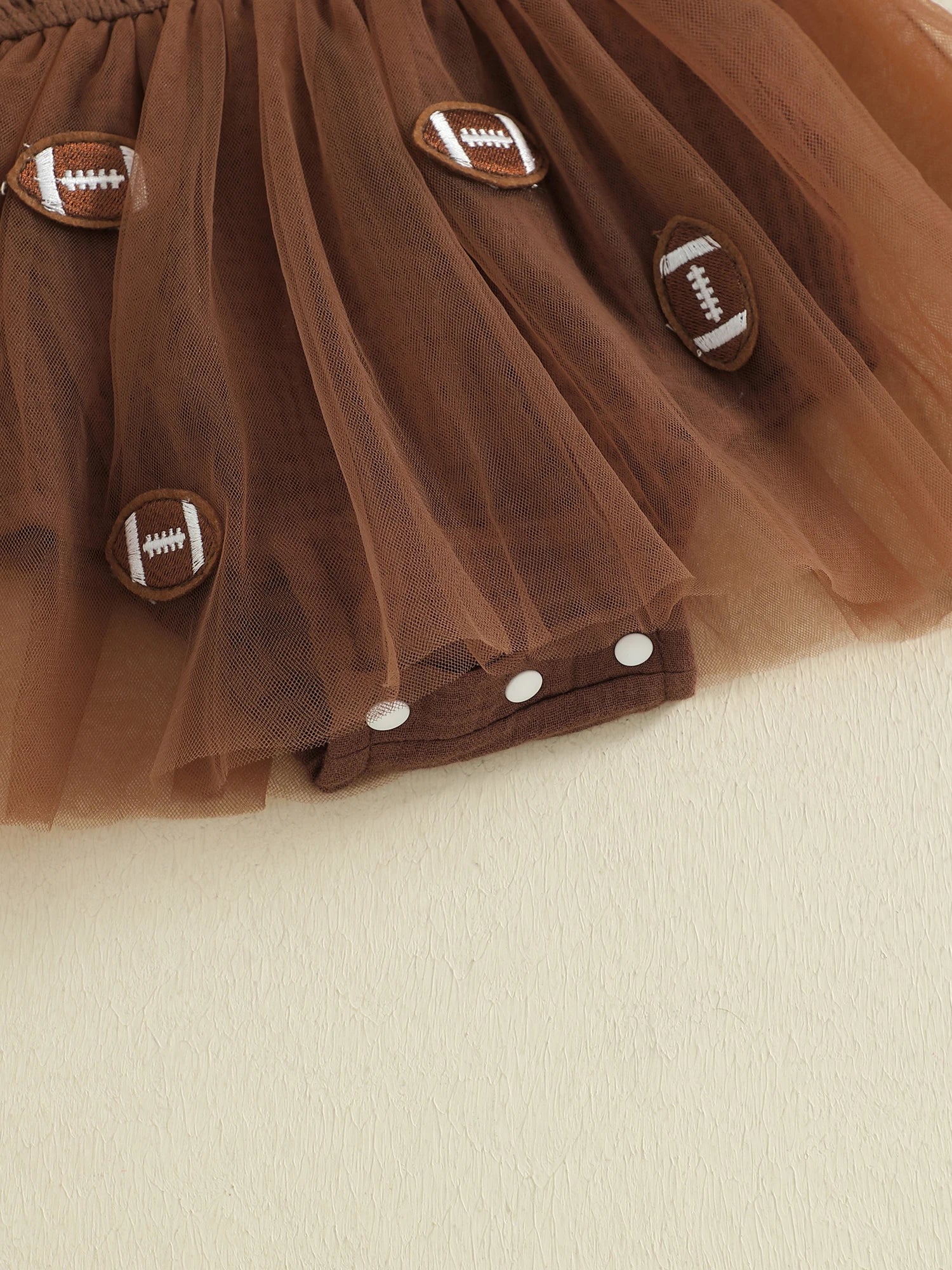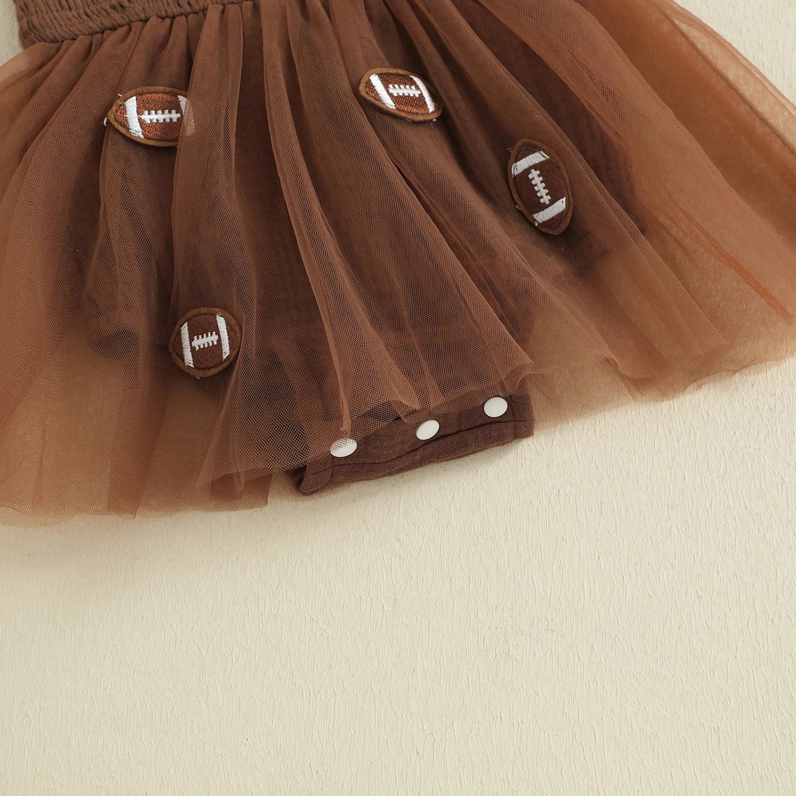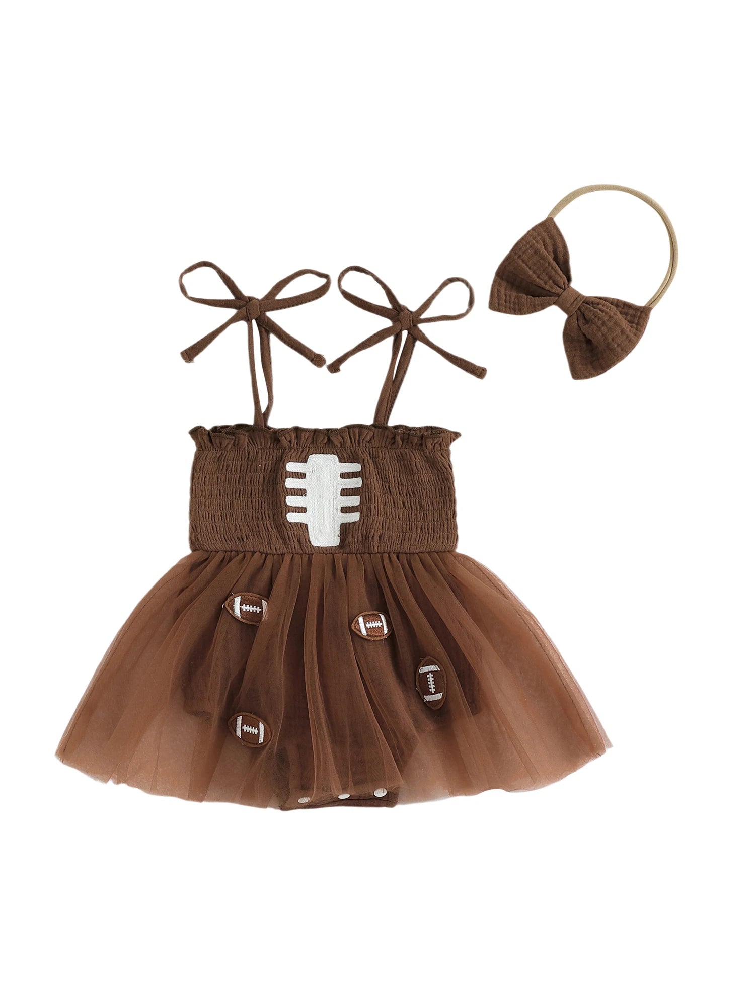 Baby Girls Football Embroidered Romper Dress with Bow Headband (0-18M)