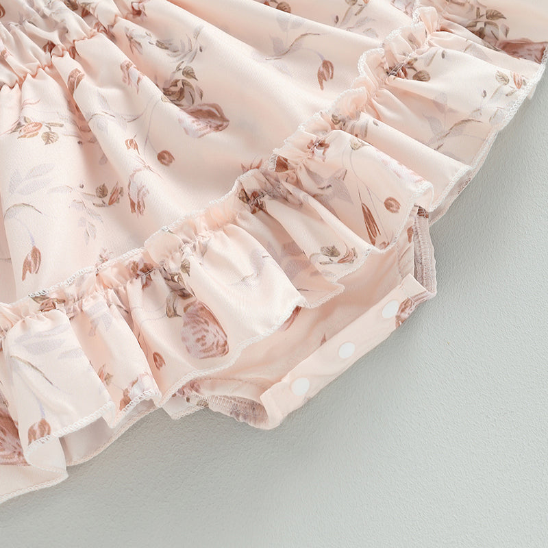 Princess Baby Girl Romper Dress - Ruffles Long Sleeve Floral Print with Headband