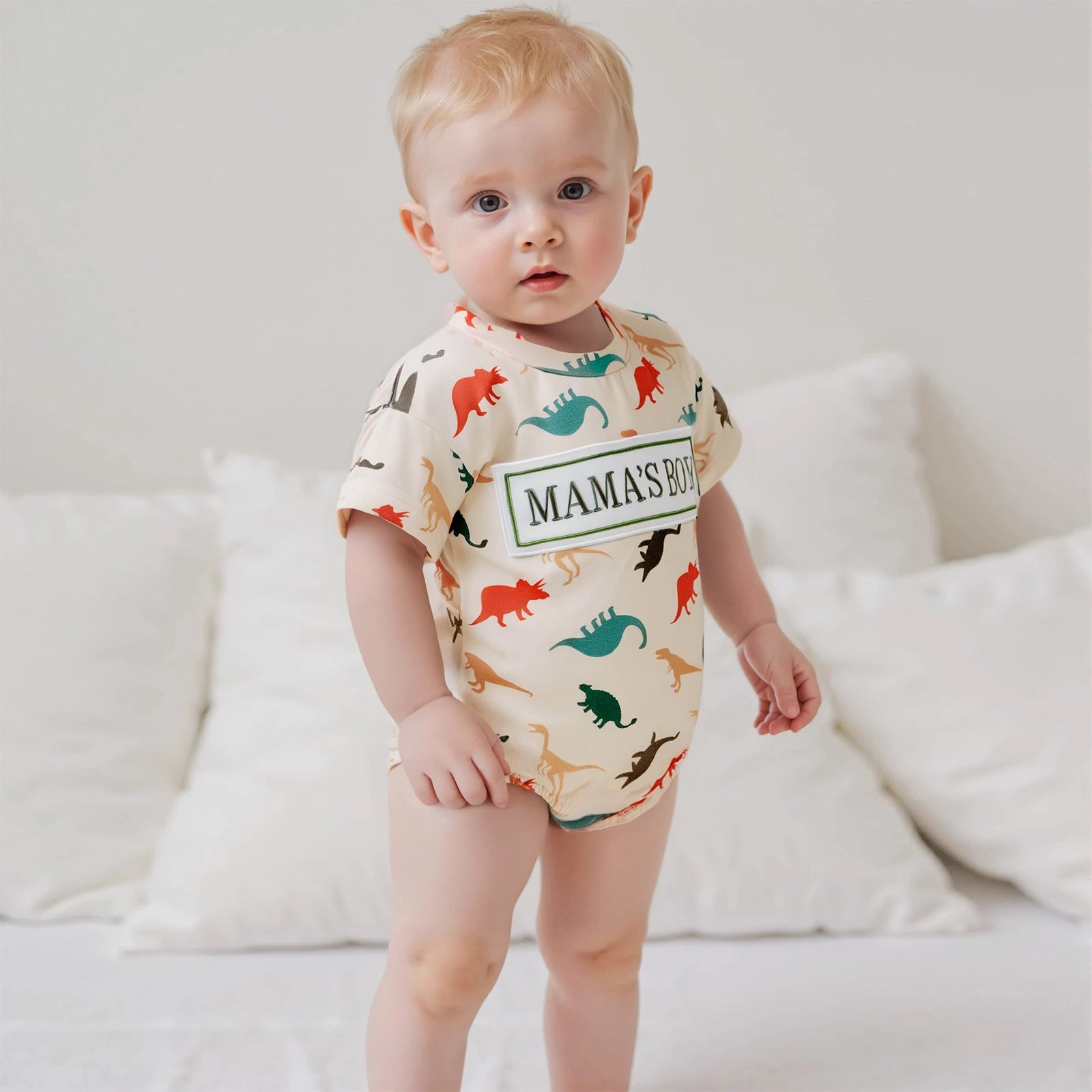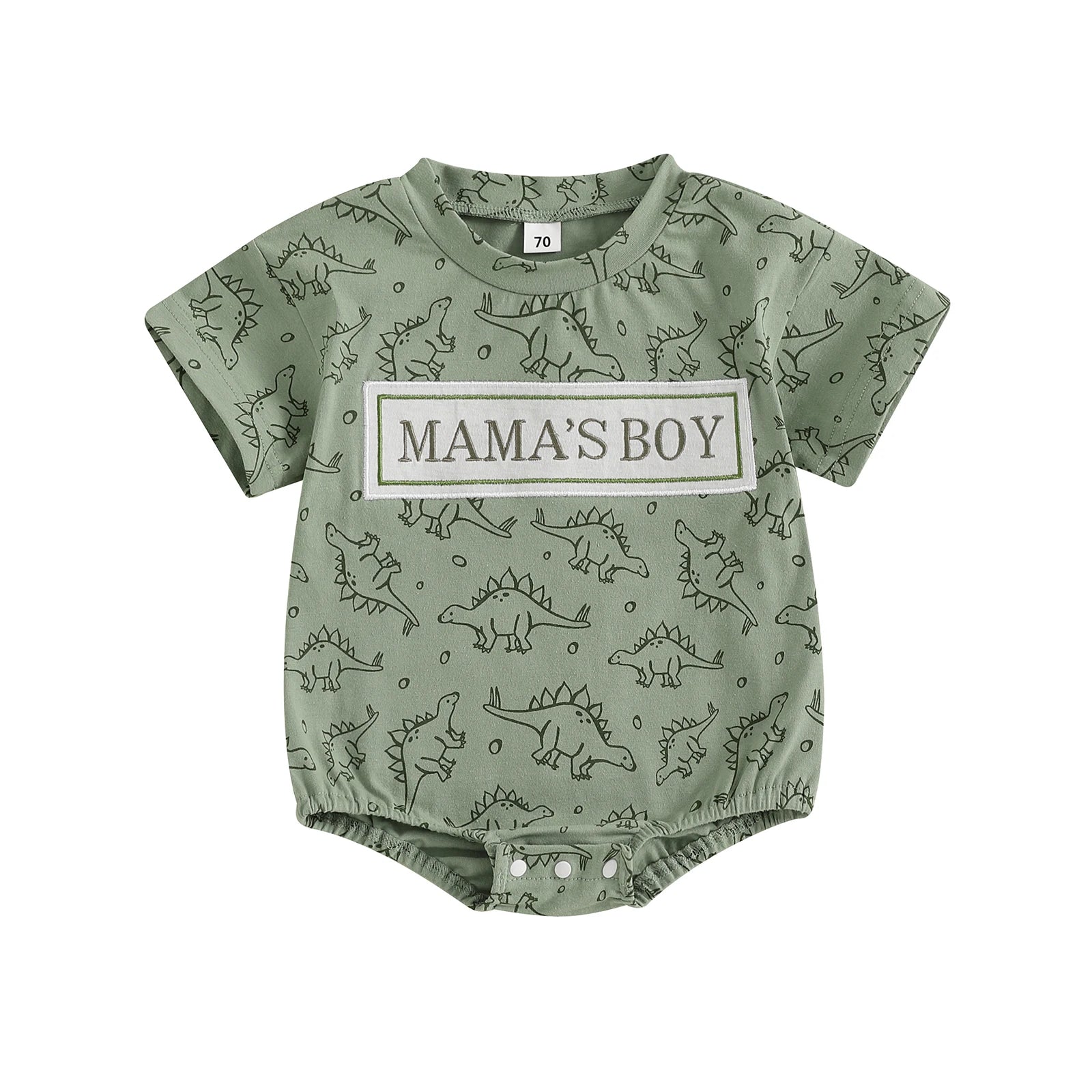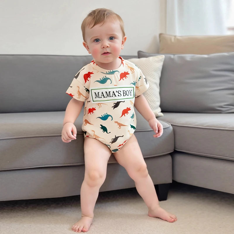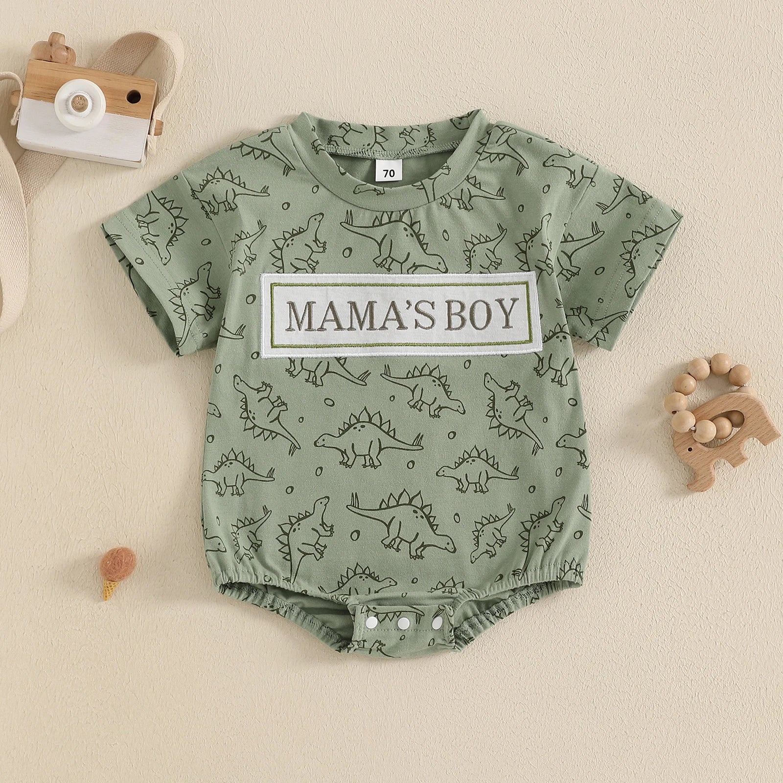 Baby Boys Dinosaur Romper - Letter Embroidery Short Sleeve Bodysuit (0-18M)
