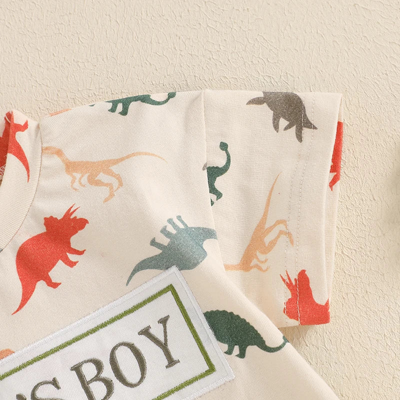 Let your little explorer roam in style with this cute dinosaur romper. Featuring charming letter embroidery and playful dinosaur prints, this bodysuit is perfect for adventurous babies who love prehistoric fun.