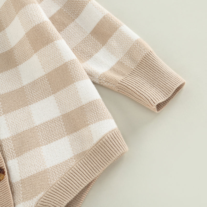 Keep your little one warm and stylish with this adorable knitted sweater romper featuring a classic plaid print. Perfect for autumn and cooler days, this long-sleeve jumpsuit combines comfort with timeless style, complete with a practical single-breasted button closure for easy dressing.