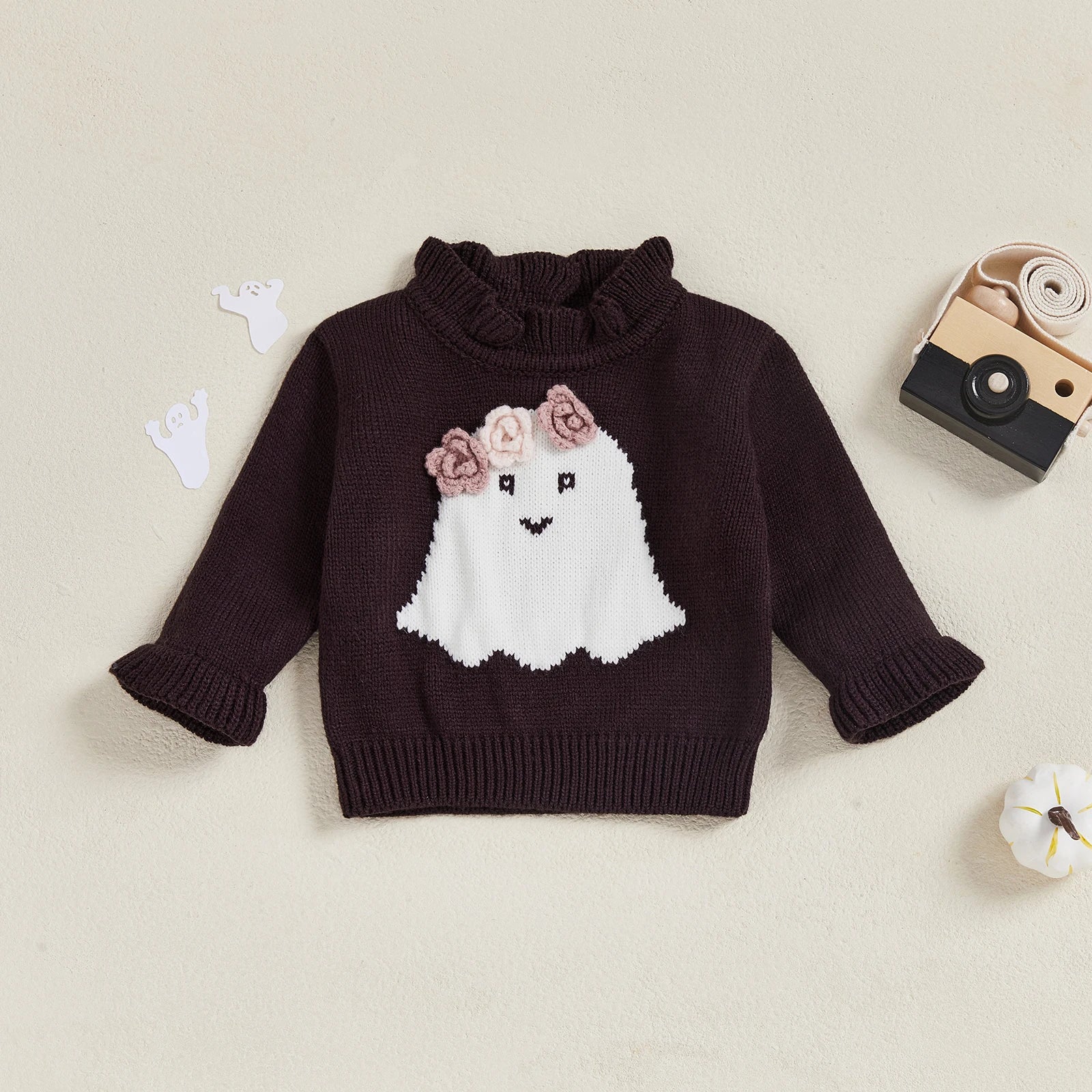 Baby Halloween Knit Sweater - Long Sleeve Ghost Embroidery Pullover