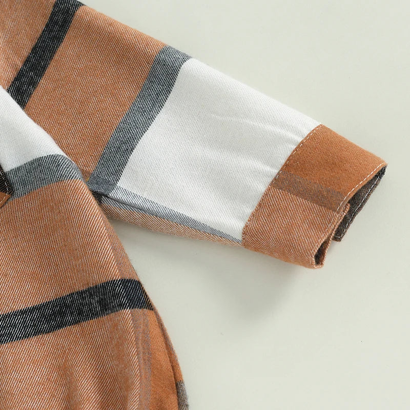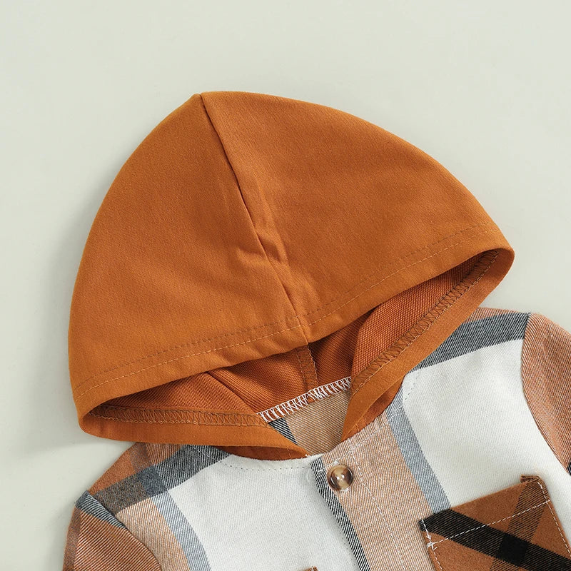 Dress your little gentleman in this smart casual clothing set featuring a long sleeve plaid print hooded romper with convenient pocket detail and matching trousers. Perfect for everyday adventures and special occasions.