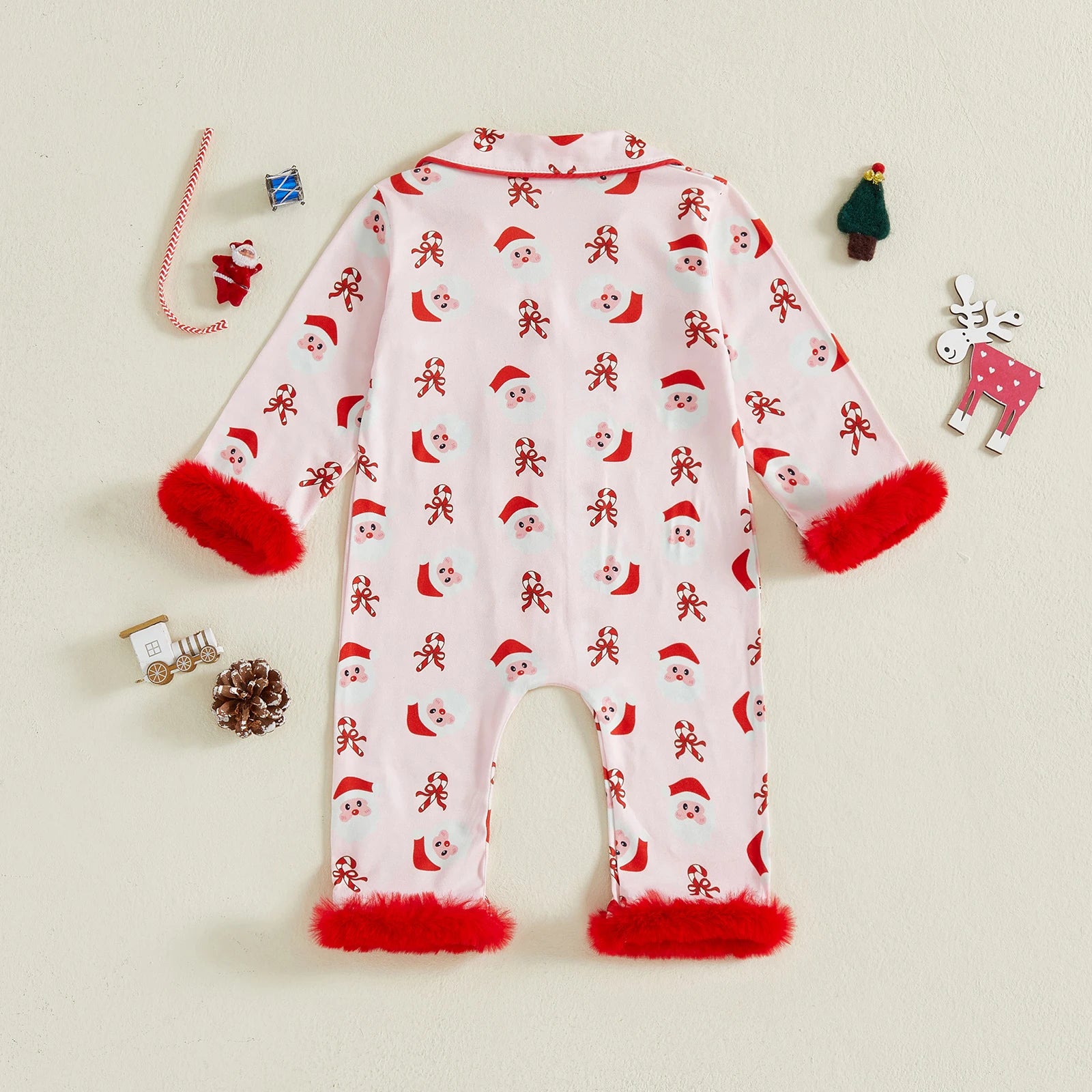 Lovely Baby Girls Christmas Pajama Jumpsuit - Santa Claus & Candy Cane Print (0-24M)