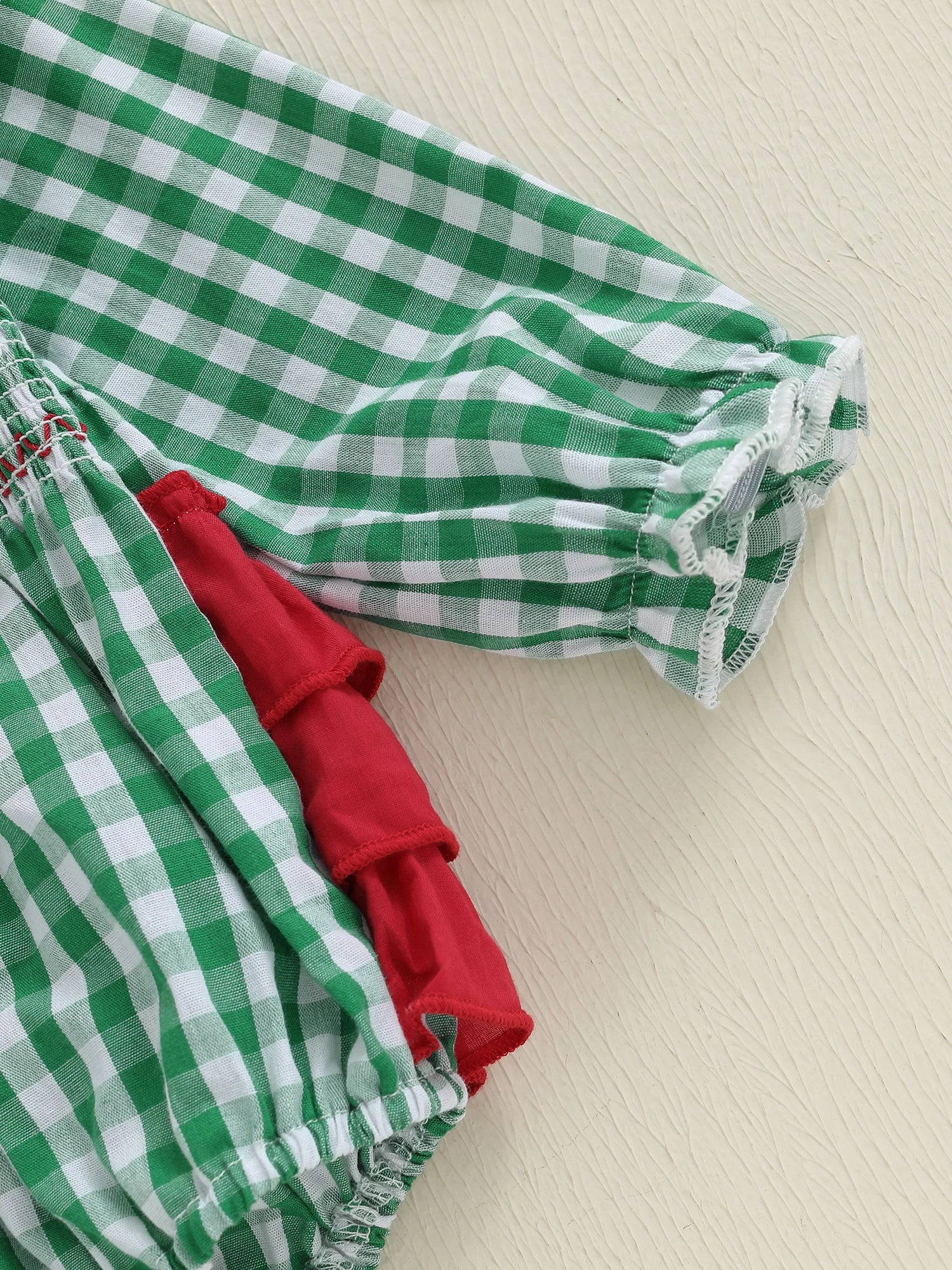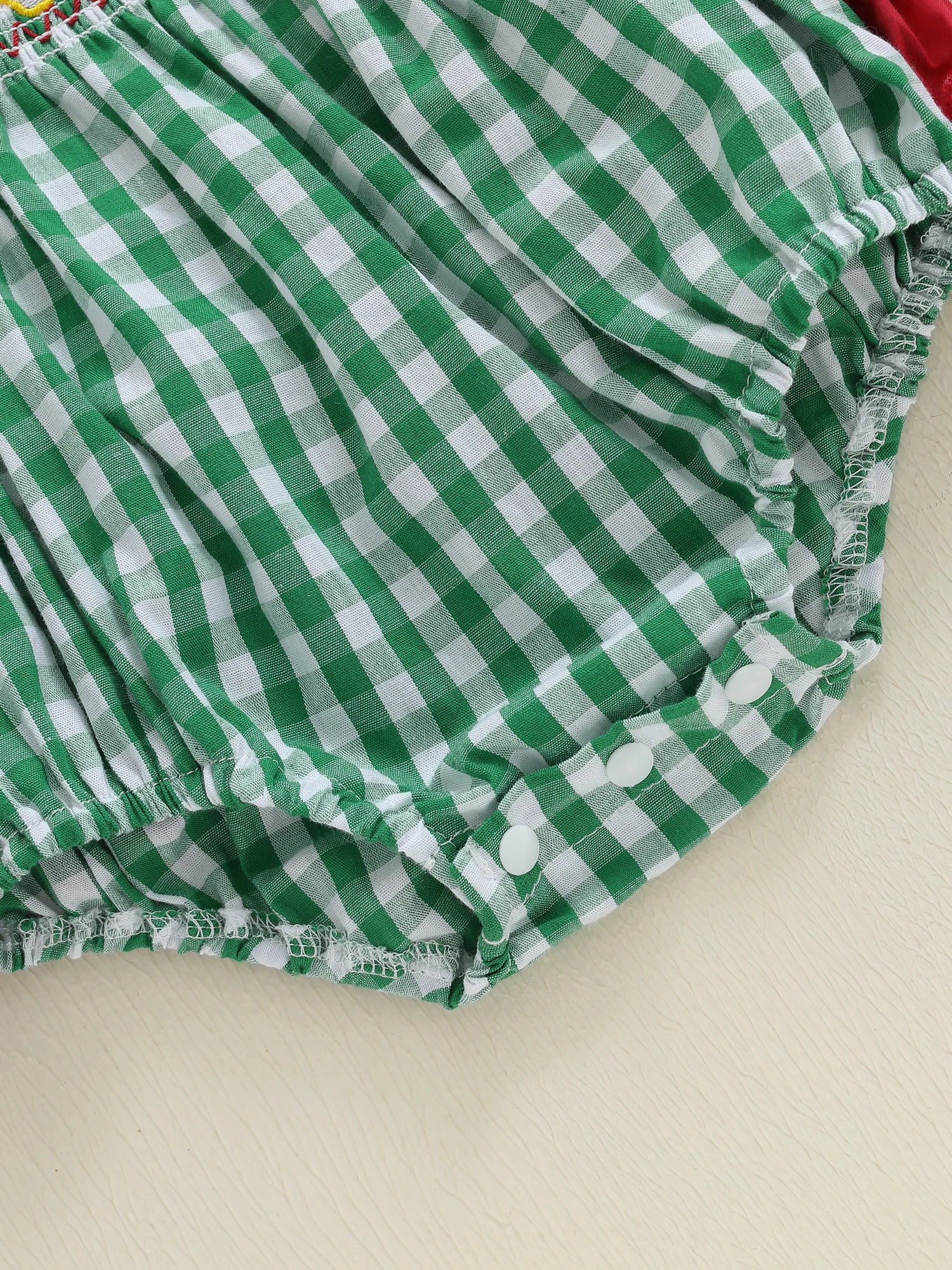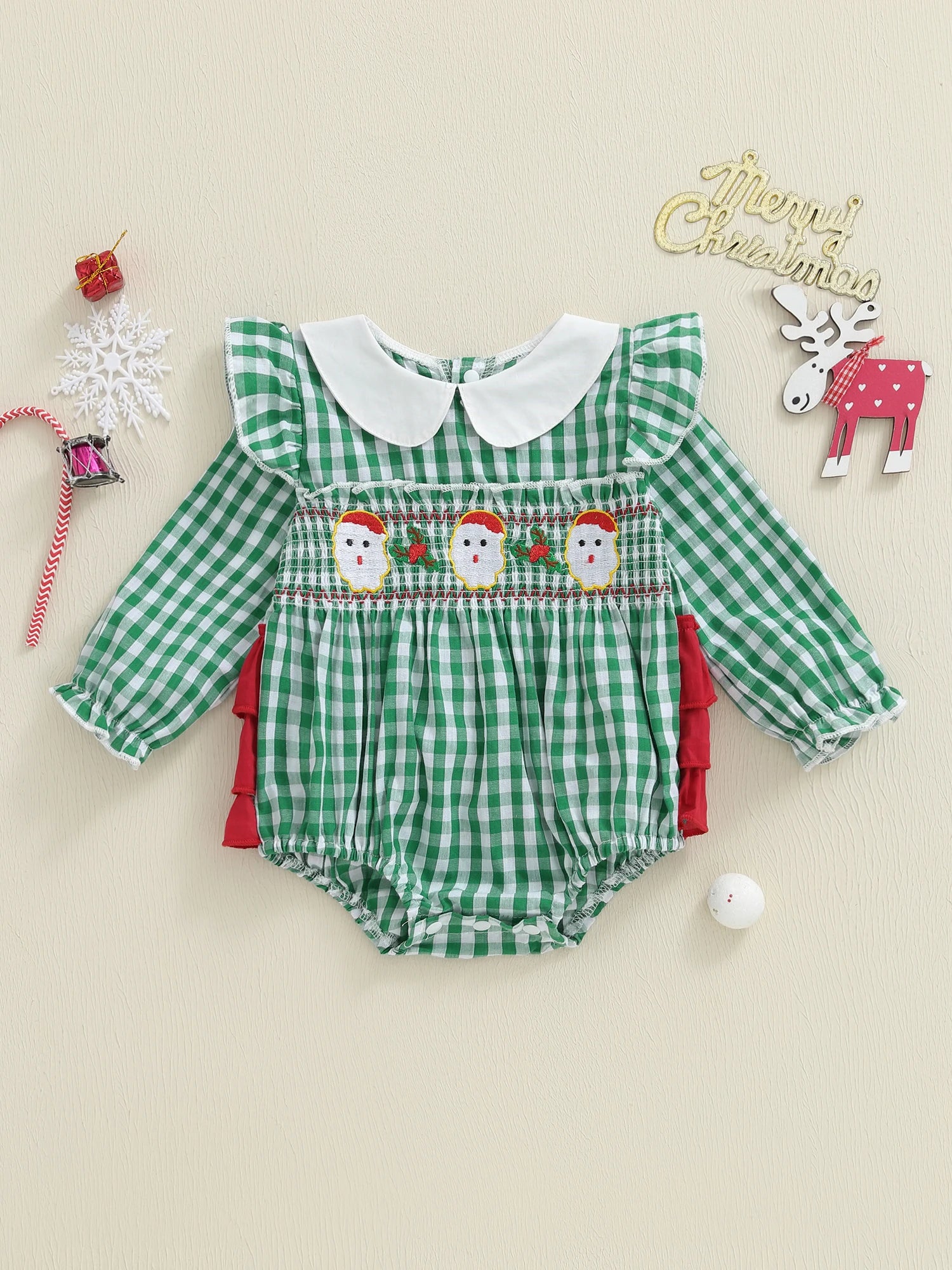 Dress your little one in festive style with this charming plaid Christmas romper featuring delightful Santa embroidery. Perfect for holiday gatherings, family photos, and creating precious Christmas memories.