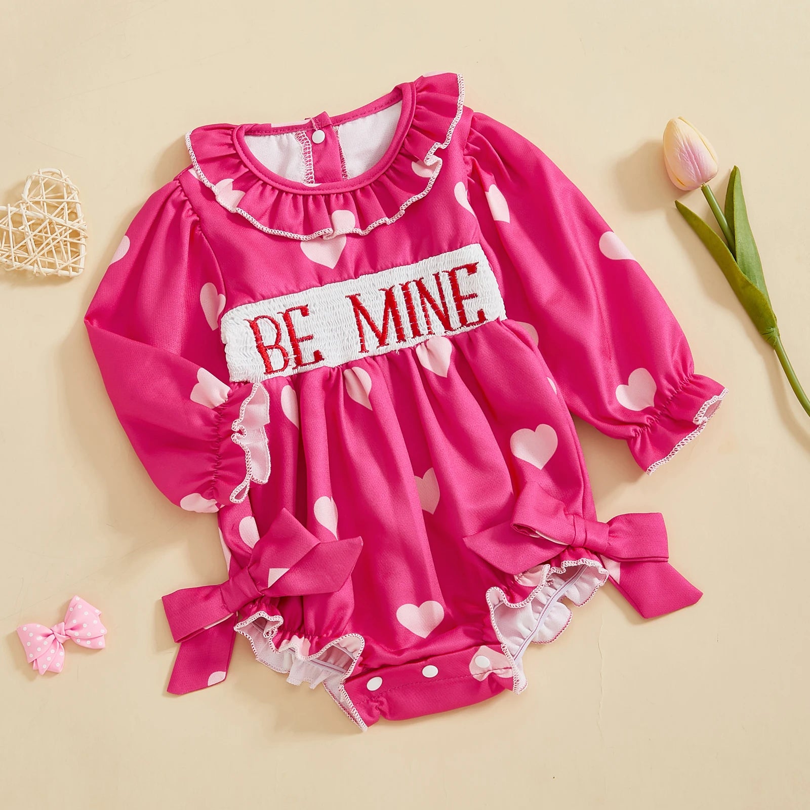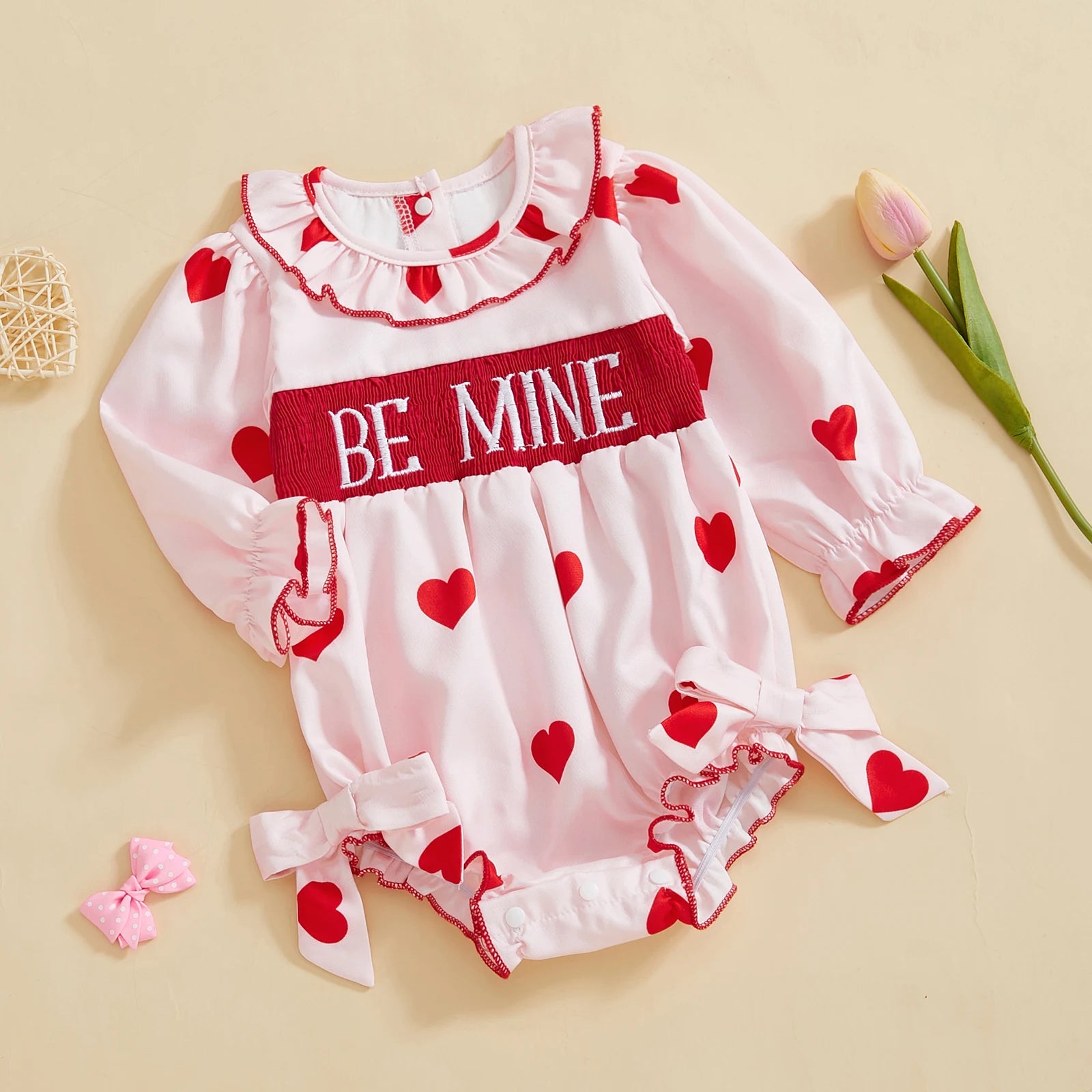 Baby Girls Valentine's Day Romper - Heart Print with Letter Embroidery & Bow (0-24M)