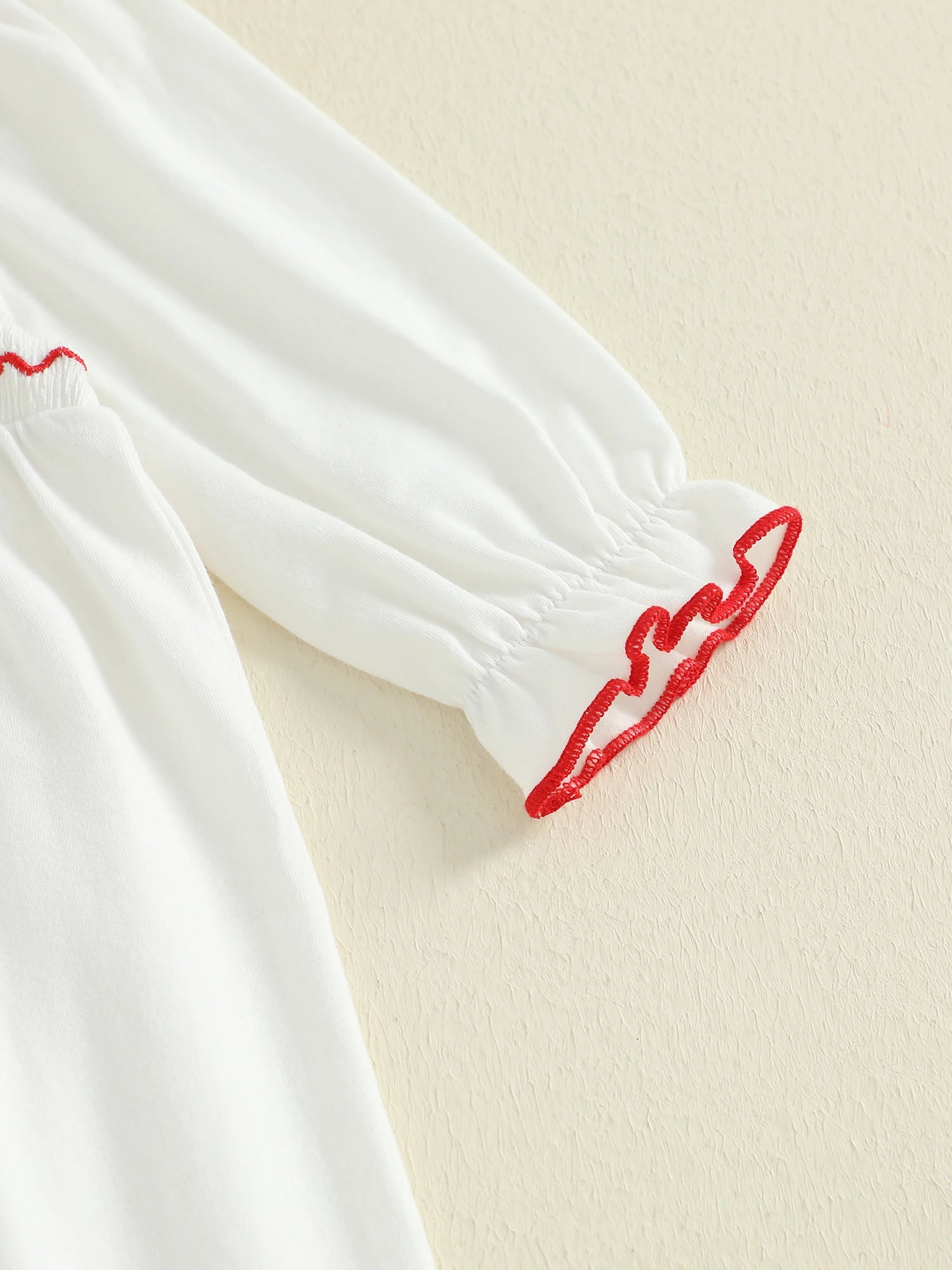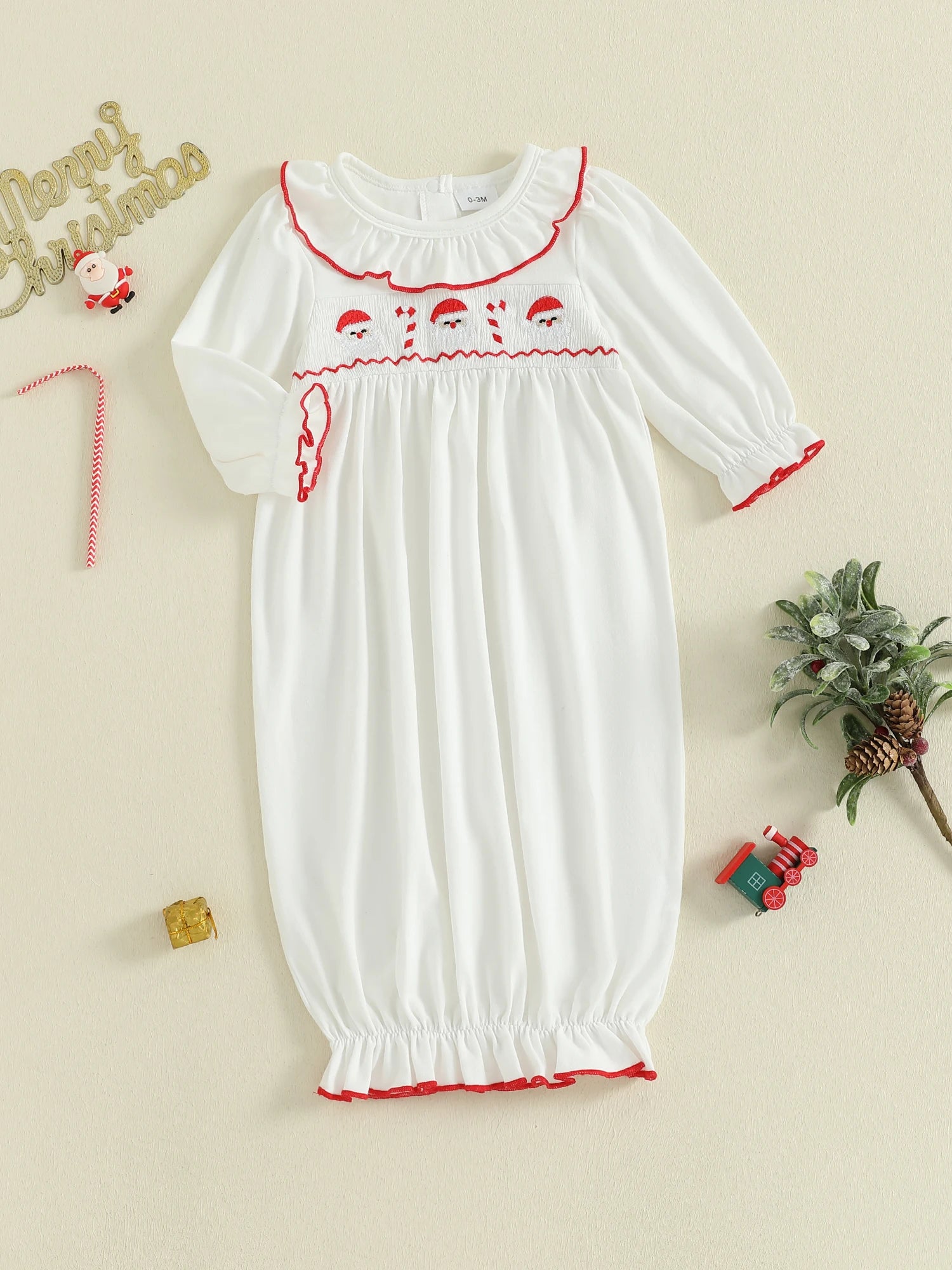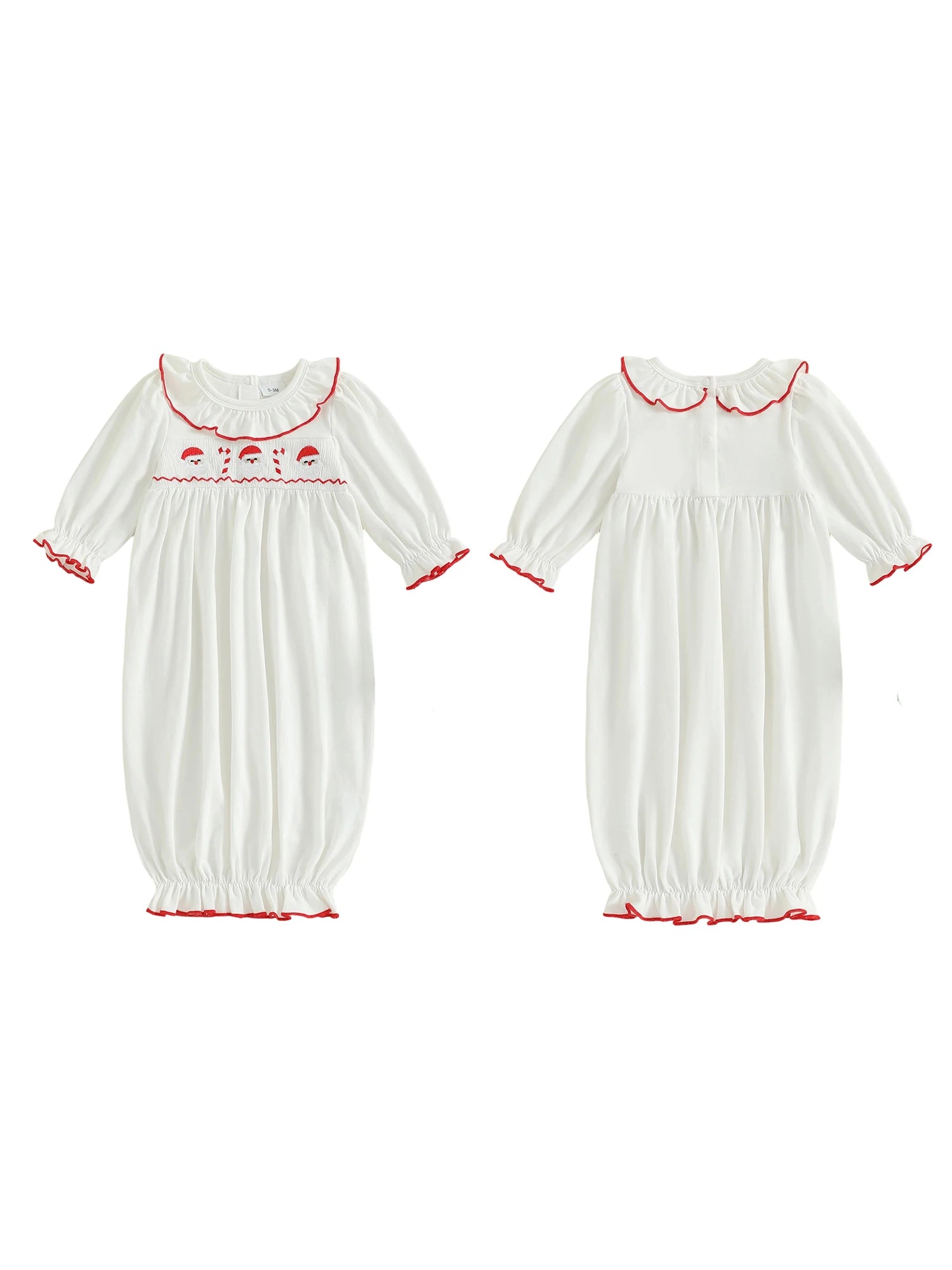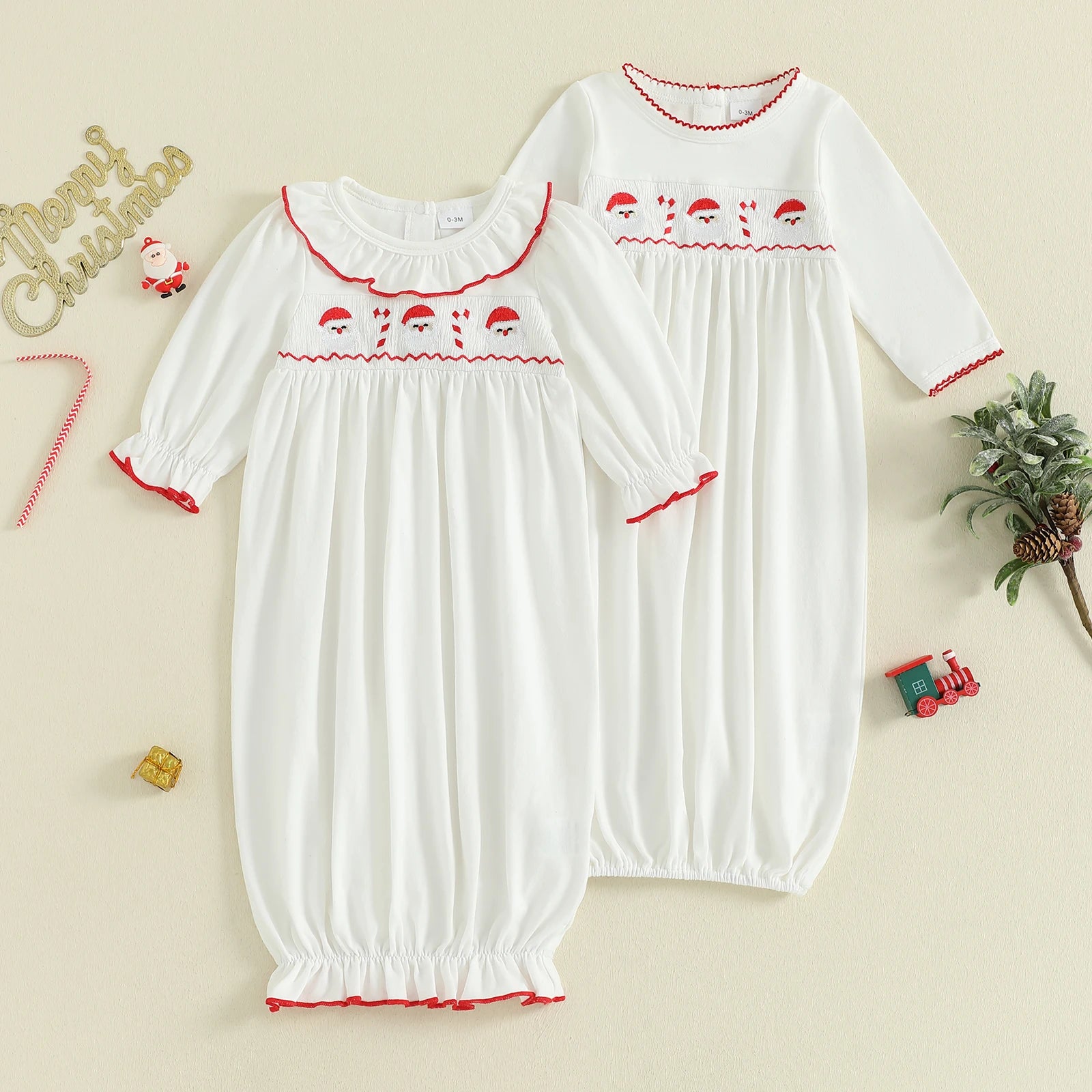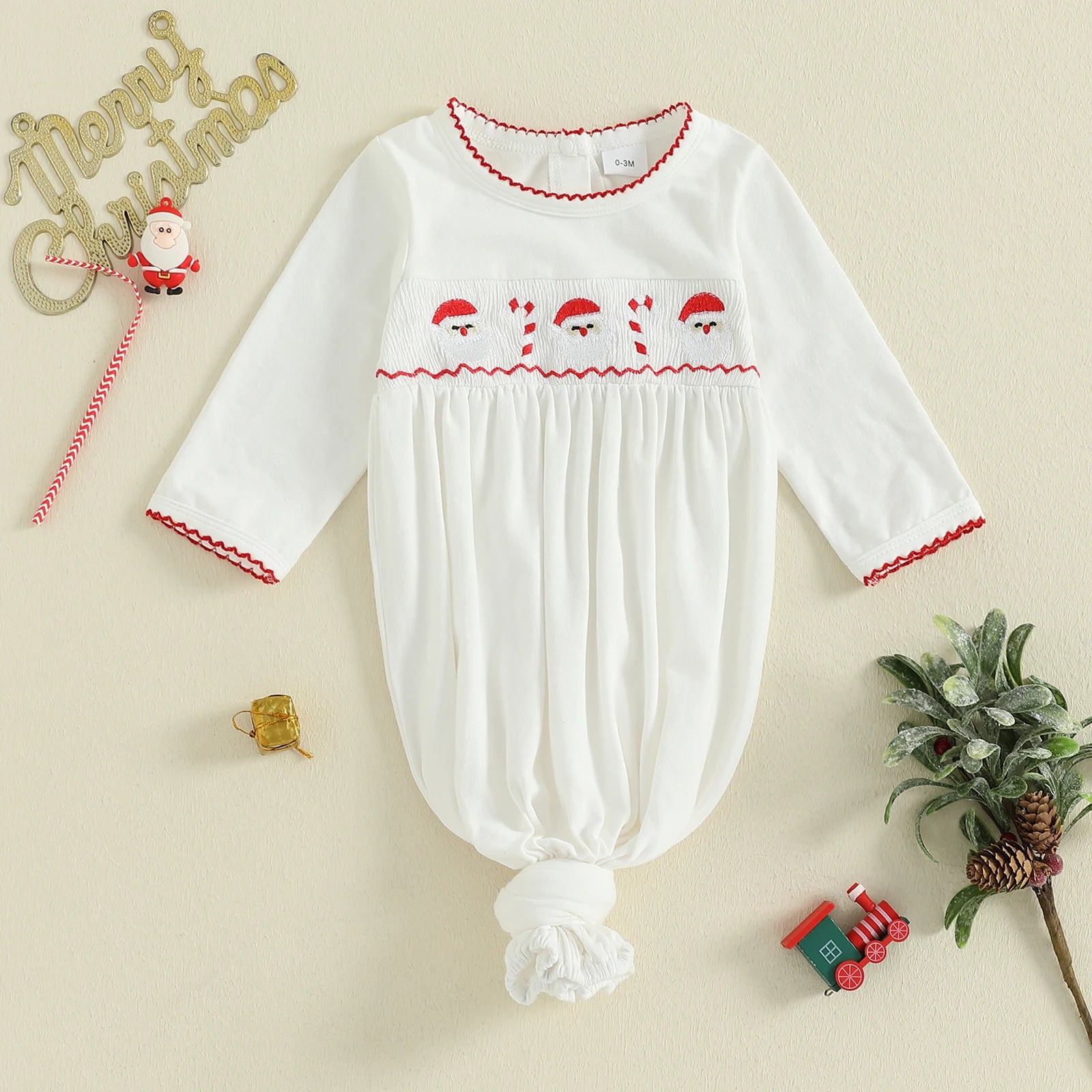 Welcome your little one's first Christmas with this charming long-sleeve romper featuring beautiful Christmas embroidery. Perfect for newborns during the autumn and winter season, this cozy set is ideal for both boys and girls.