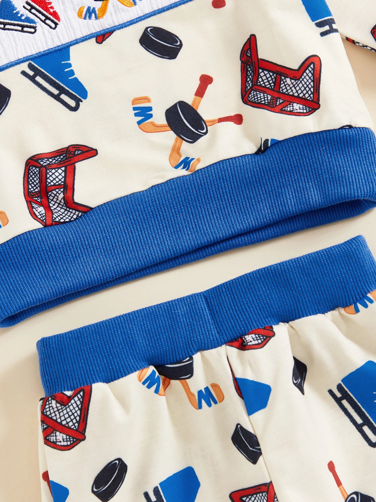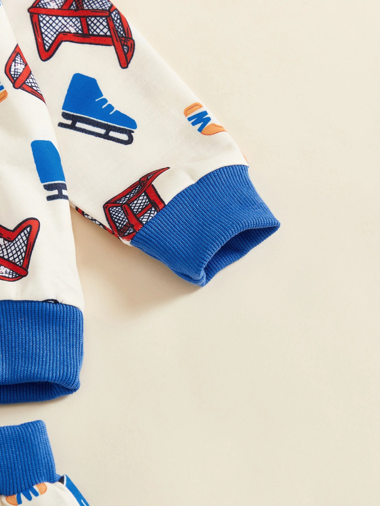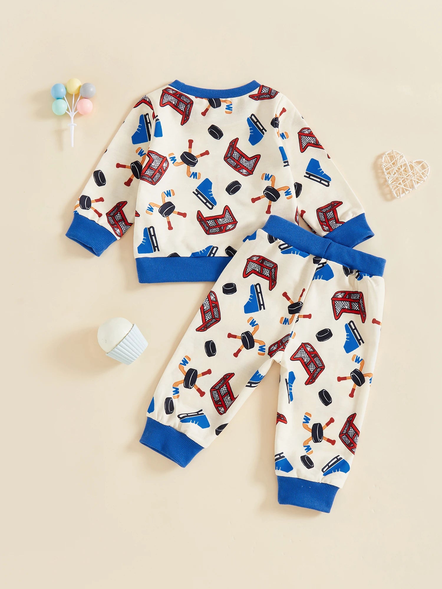 Baby Boys 2-Piece Fall Clothes Set - Cartoon Print Sweatshirt & Pants (0-3Y)