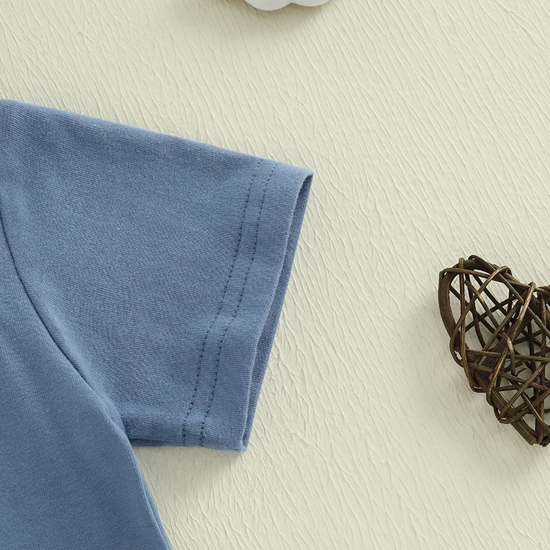 Perfect for summer outings, playdates, beach trips, or everyday casual wear. The comfortable, breathable fabric ensures your little one stays cool while looking stylish in this trendy letter-embroidered outfit.