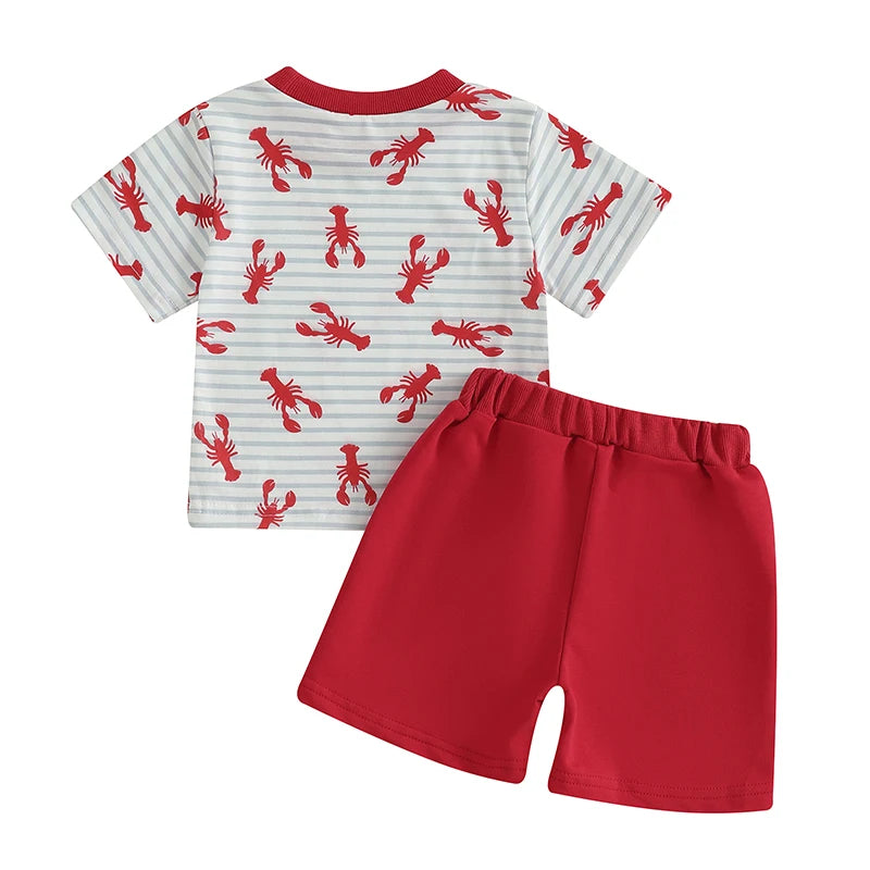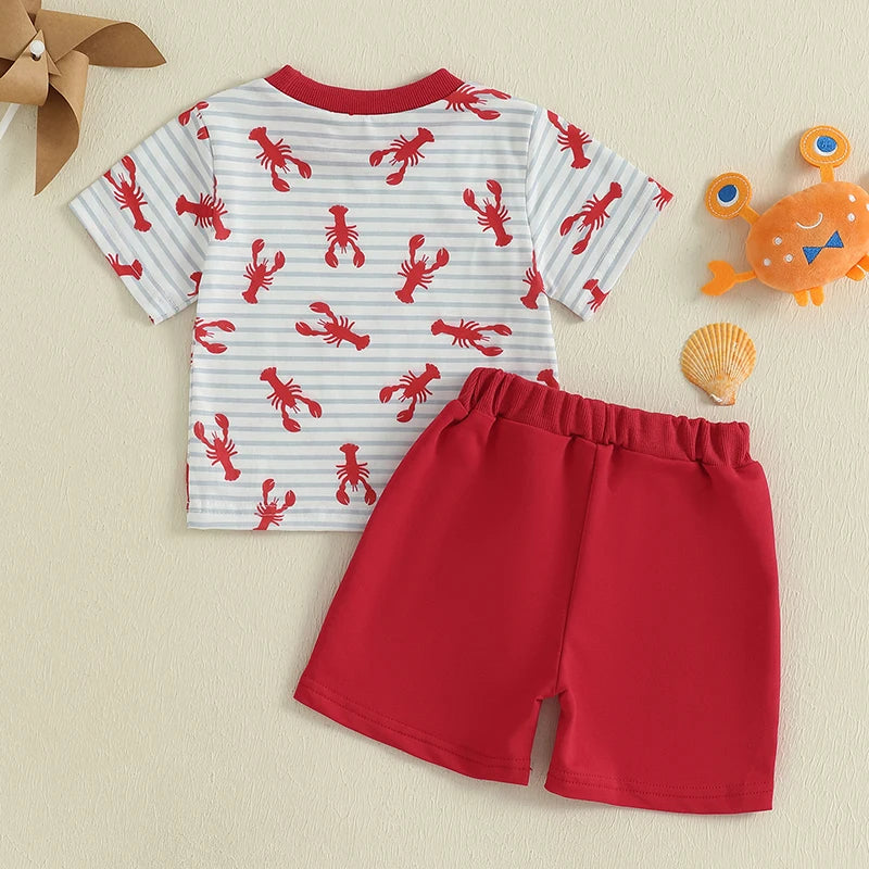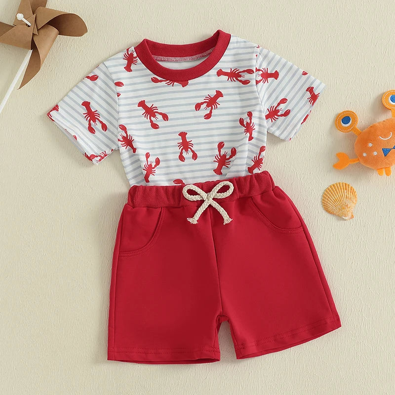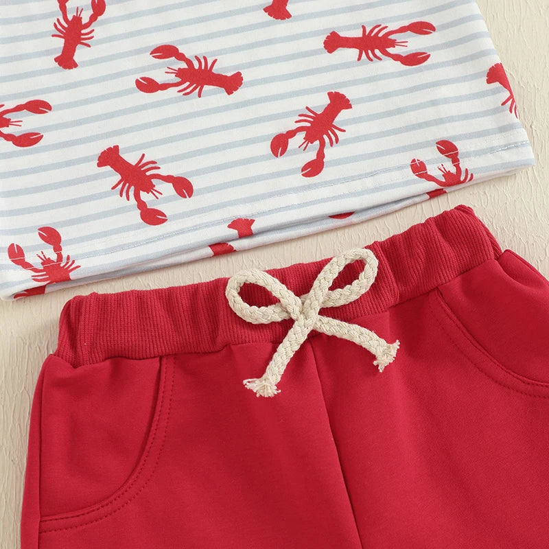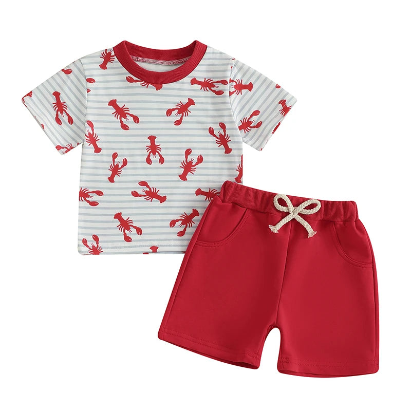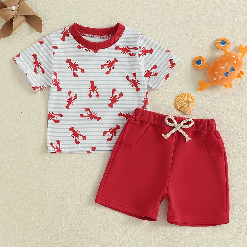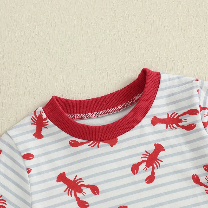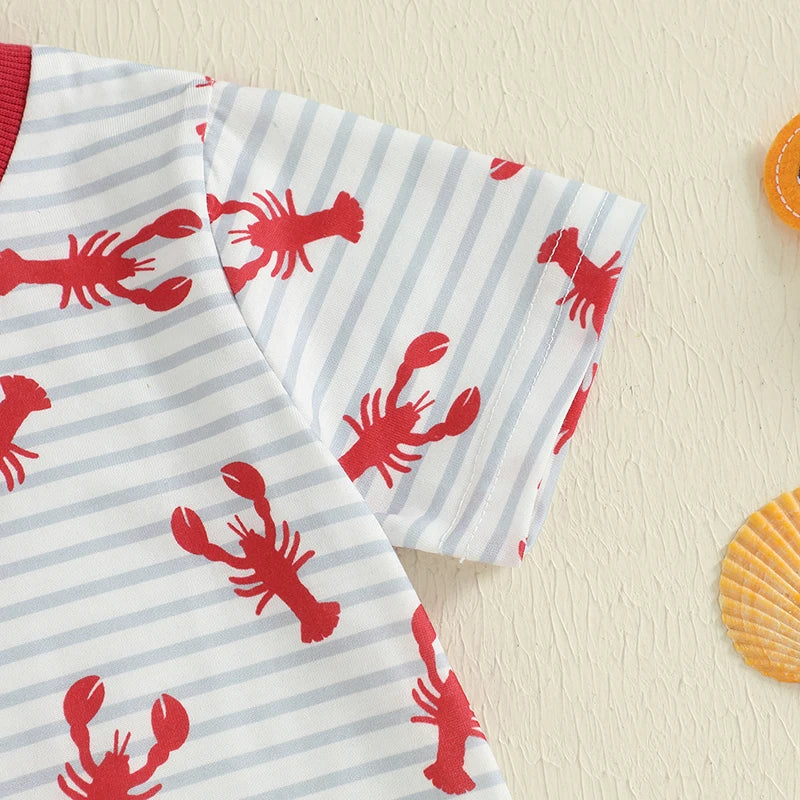 Charming Striped Lobster Print Summer Set for Baby Boys