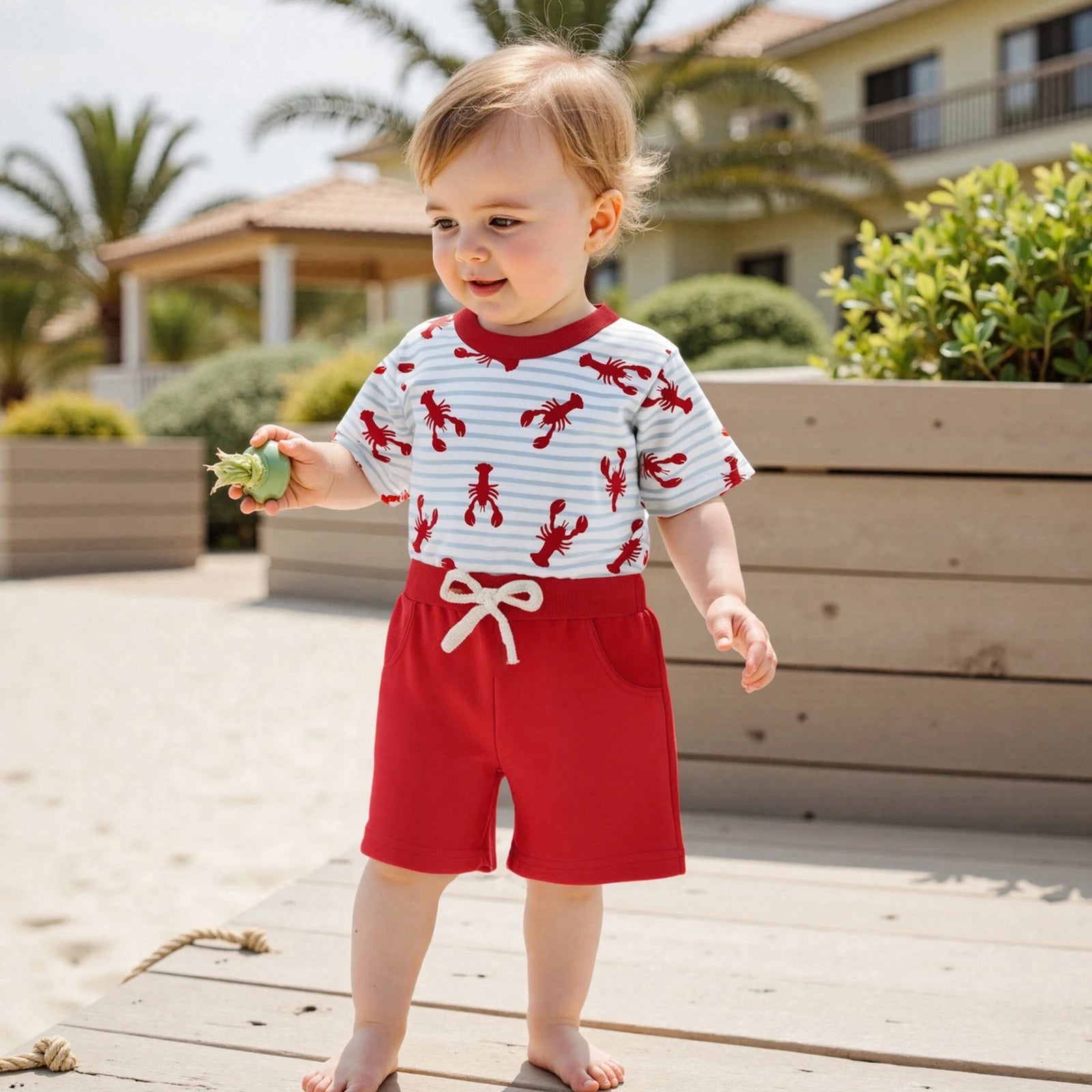 Your little one will love this playful lobster set that's perfect for creating precious summer memories while staying comfortable and stylish!