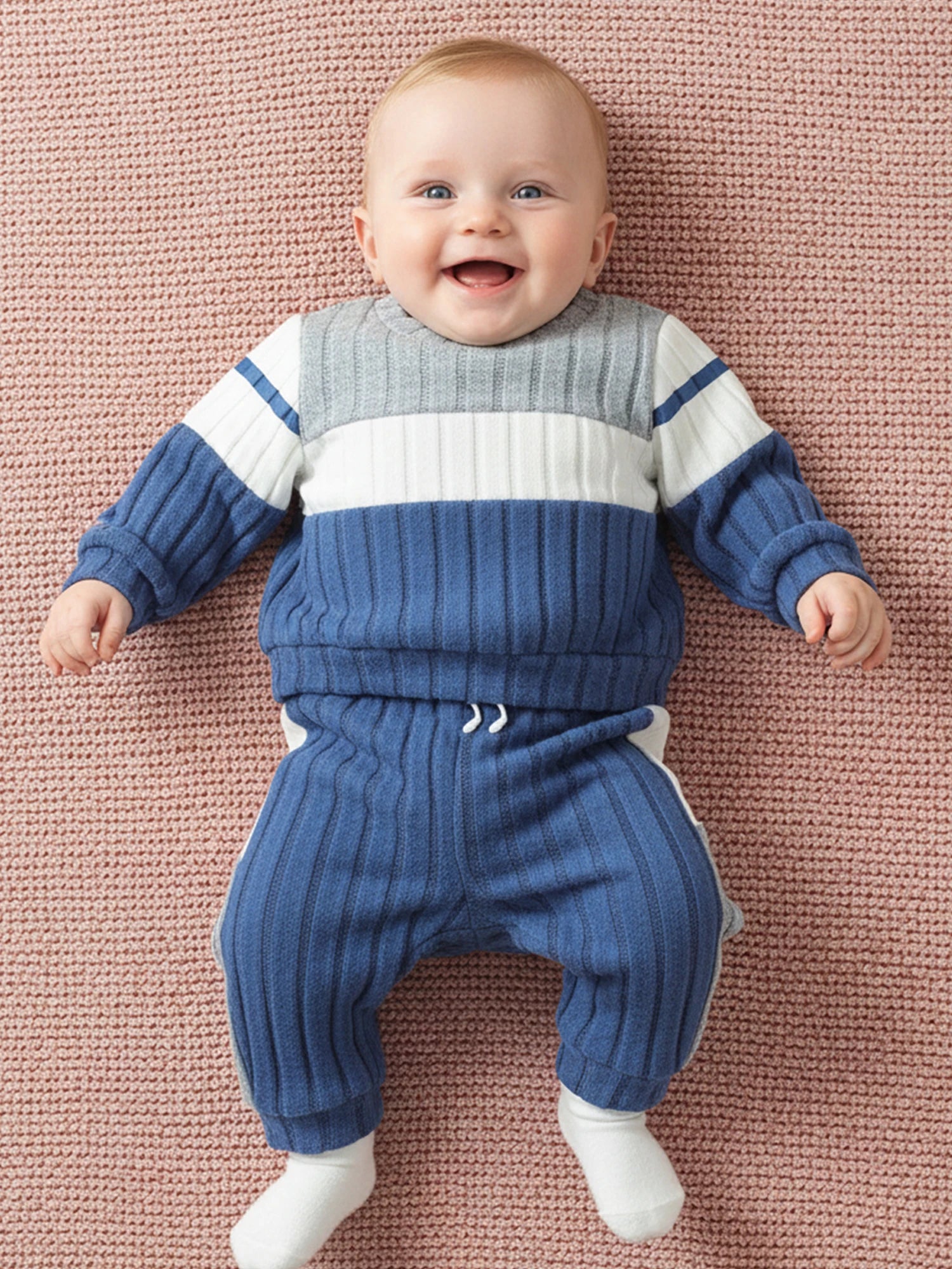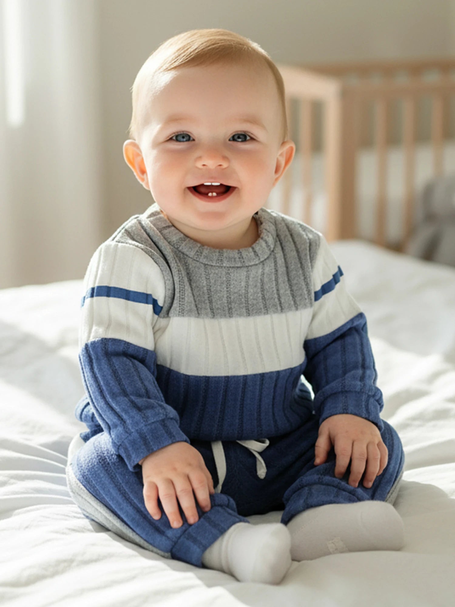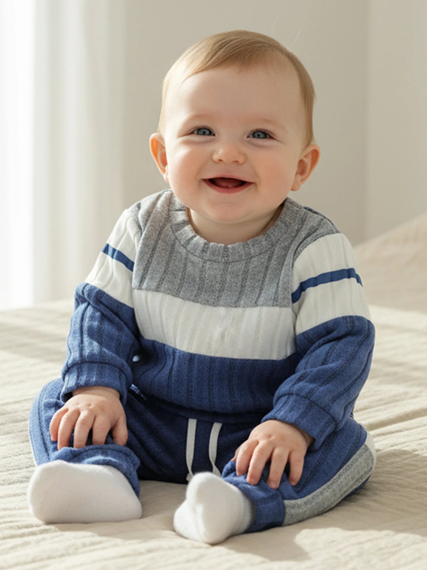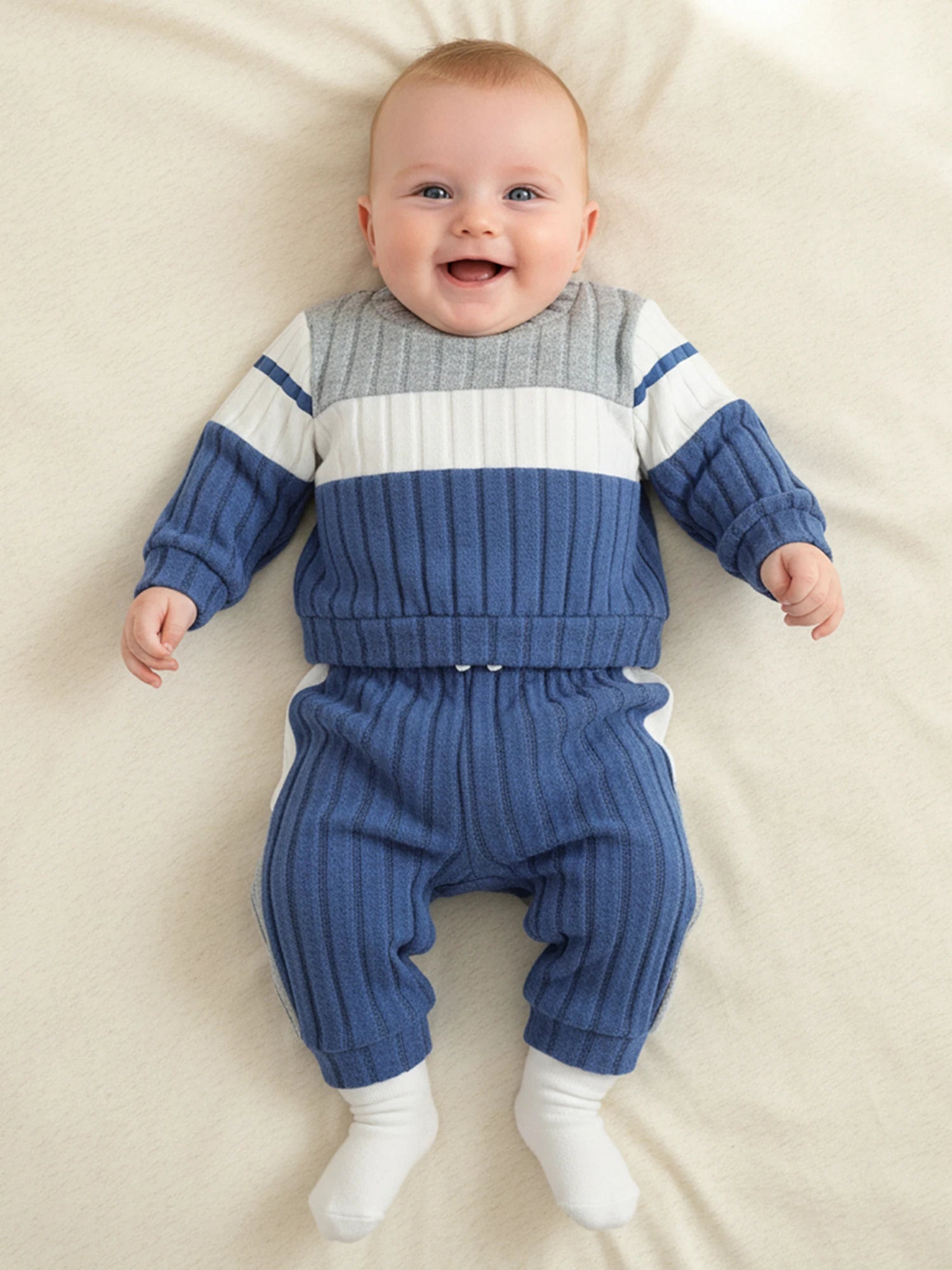Casual and comfortable 2-piece clothing set perfect for infant and toddler boys aged 0-3 years. This stylish outfit features contrast color details for a modern, sporty look.