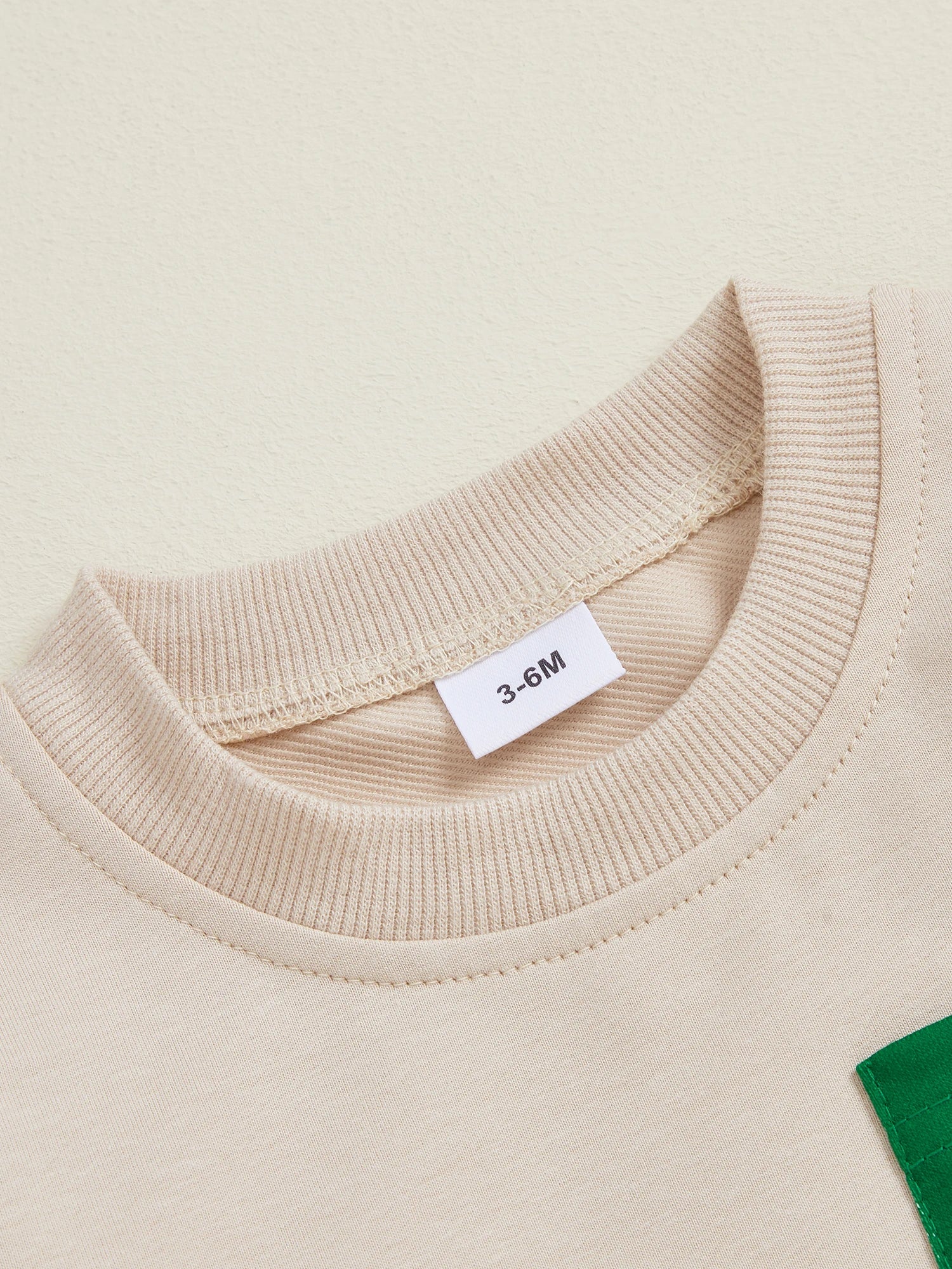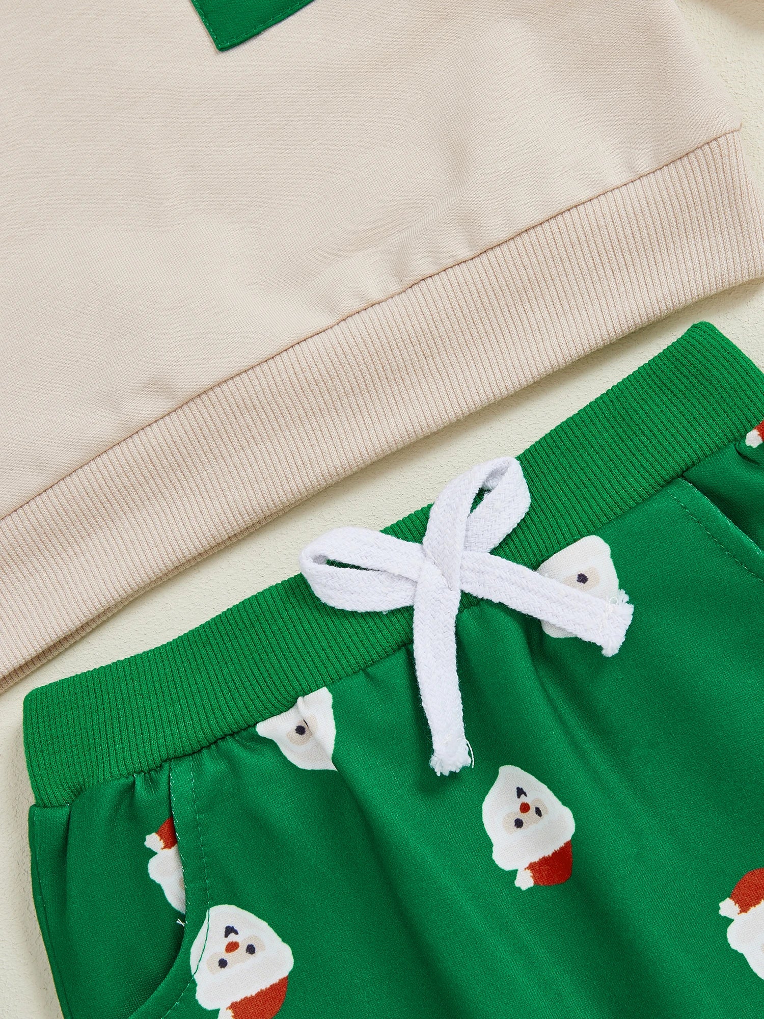 Baby Boys Christmas Gingerbread Outfit Set - Long Sleeve O-Neck Top & Drawstring Pants (0-3Y)