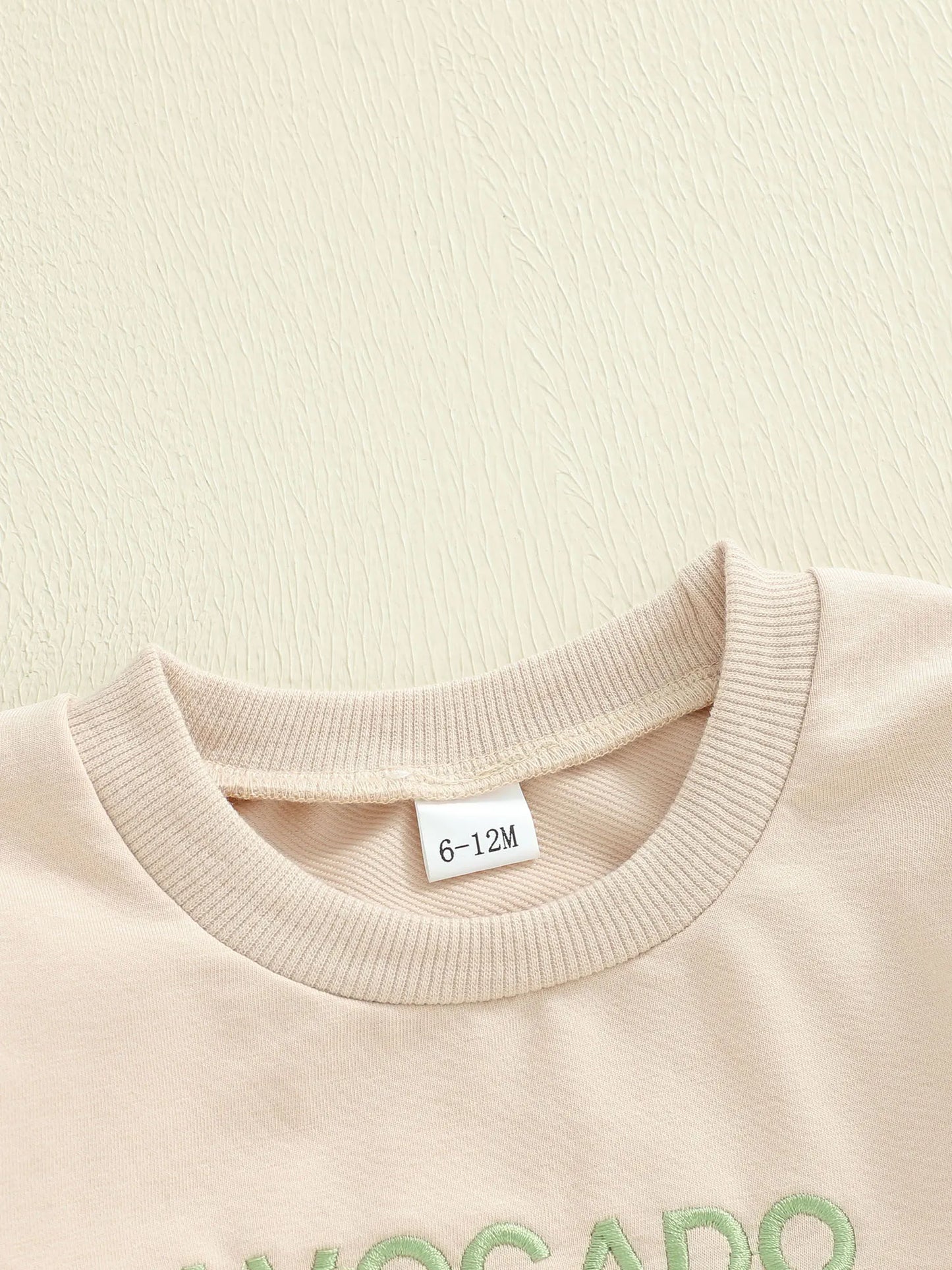 Keep your little one cozy and stylish this autumn and winter with this charming two-piece set. Featuring a long sleeve pullover sweatshirt with playful fruit and letters embroidery, plus coordinating solid color pants, this outfit is perfect for everyday adventures and casual outings.