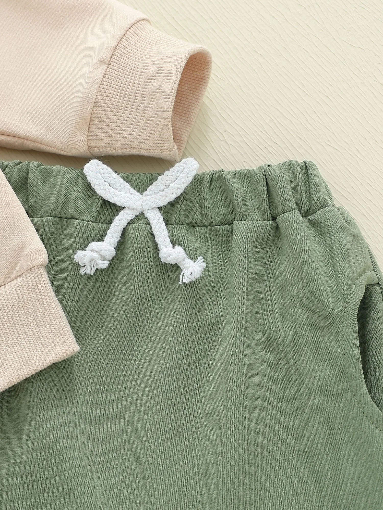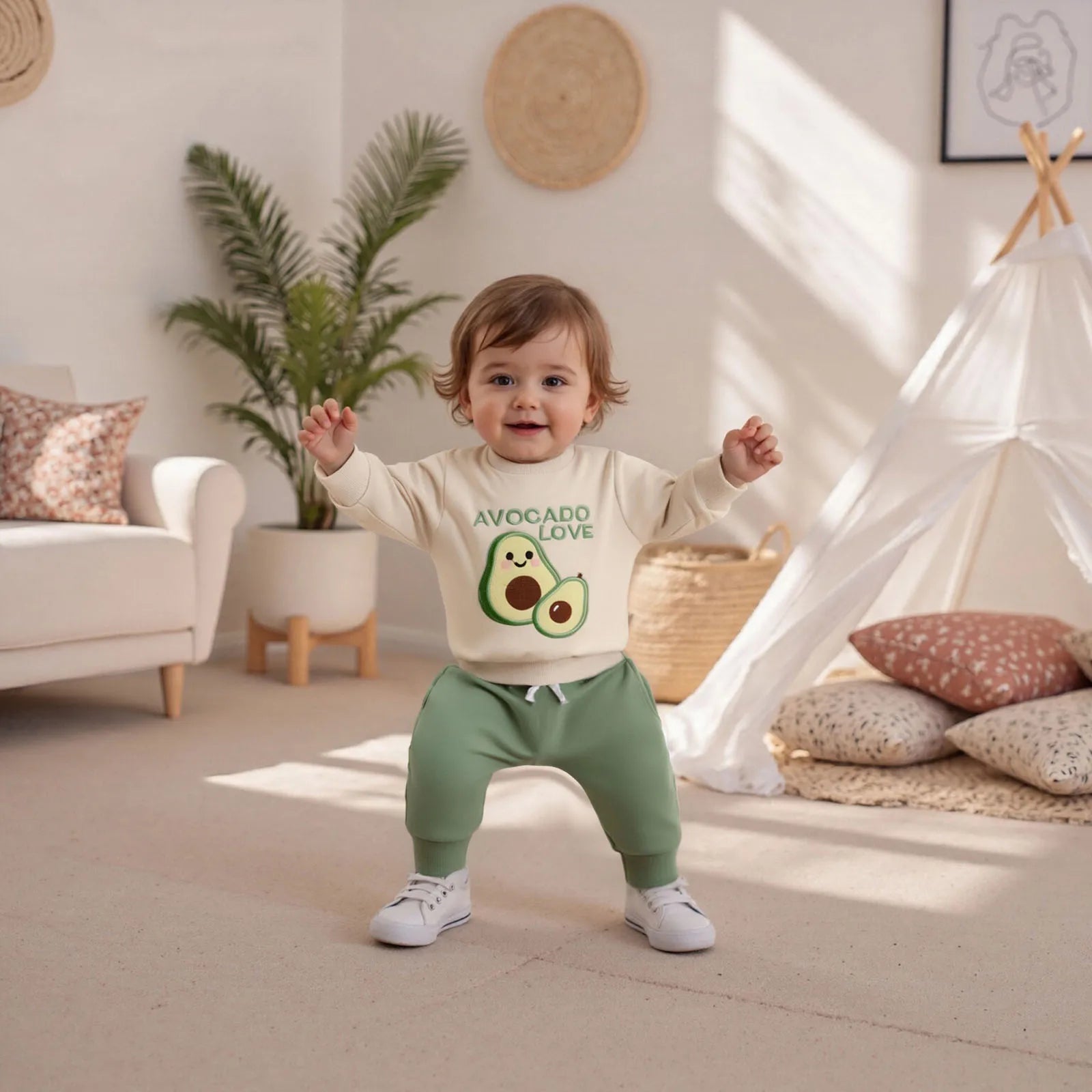 Infant Baby Boys Fall Winter Clothes Set - Fruit Letters Embroidery Long Sleeve Pullover Sweatshirt & Solid Pants