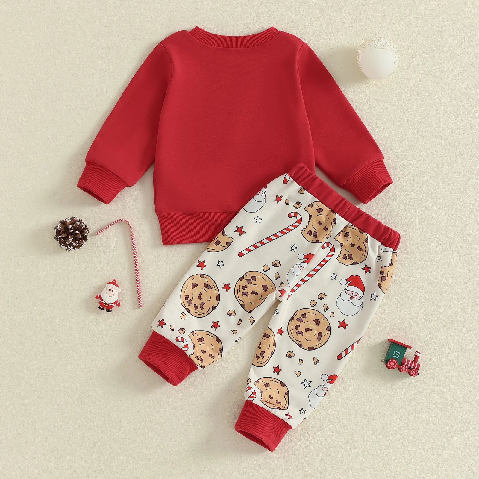 Get your little one ready for Christmas celebrations with this adorable 2-piece outfit set. Featuring cheerful Santa Claus and candy print designs on a long sleeve crew neck top paired with coordinating pants, this festive ensemble is perfect for Christmas Day, holiday parties, and creating magical festive memories.