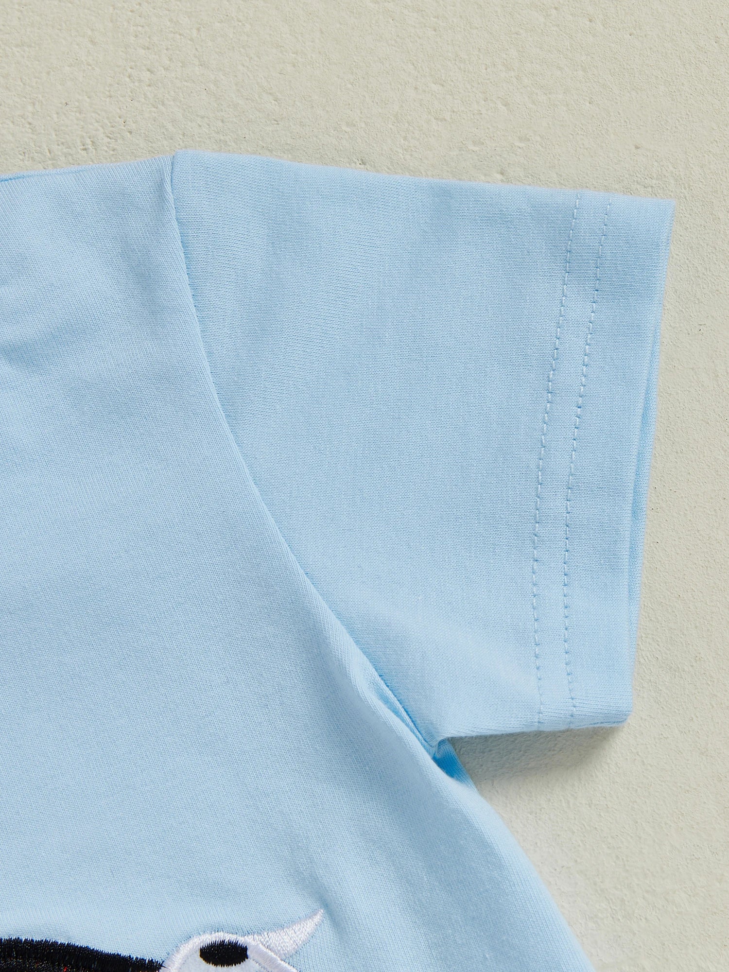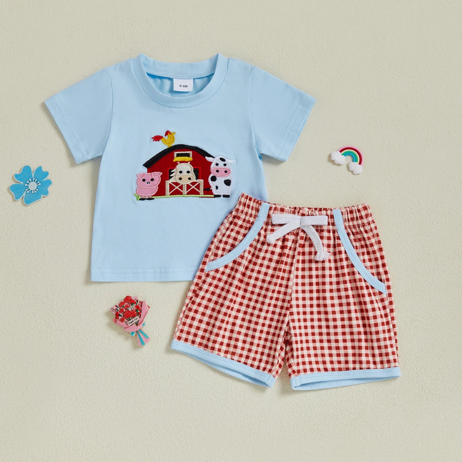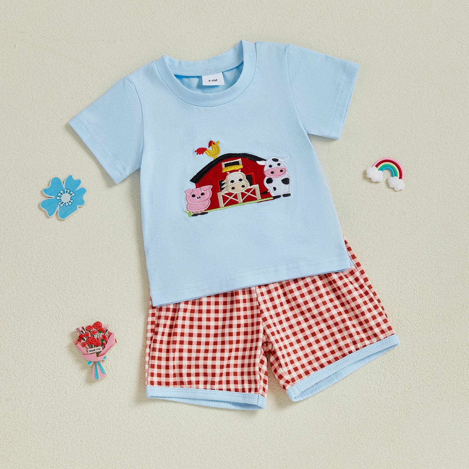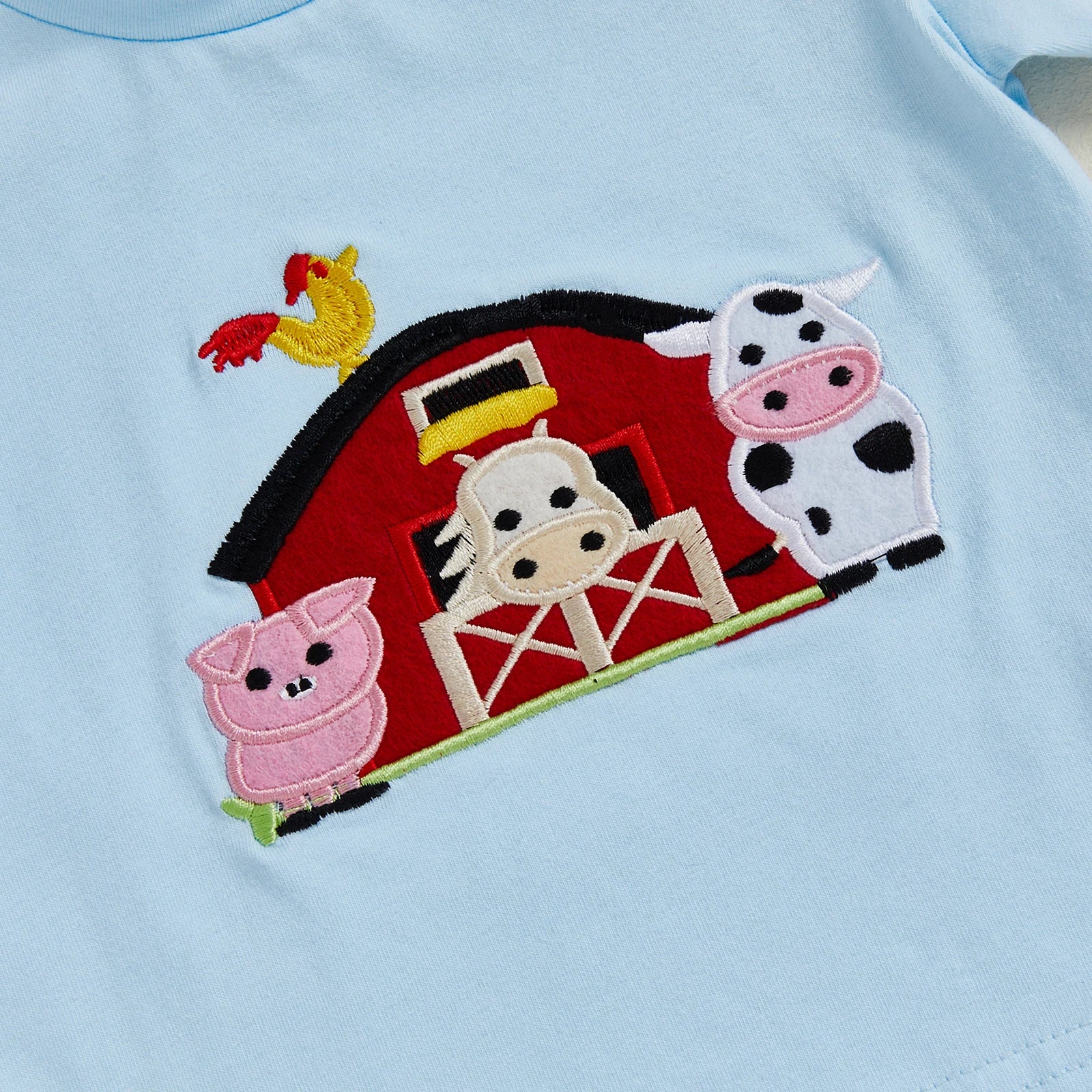 Infant Baby Boys Summer Outfit Set - Farm Animal Embroidery T-Shirt & Shorts (0-3Y)