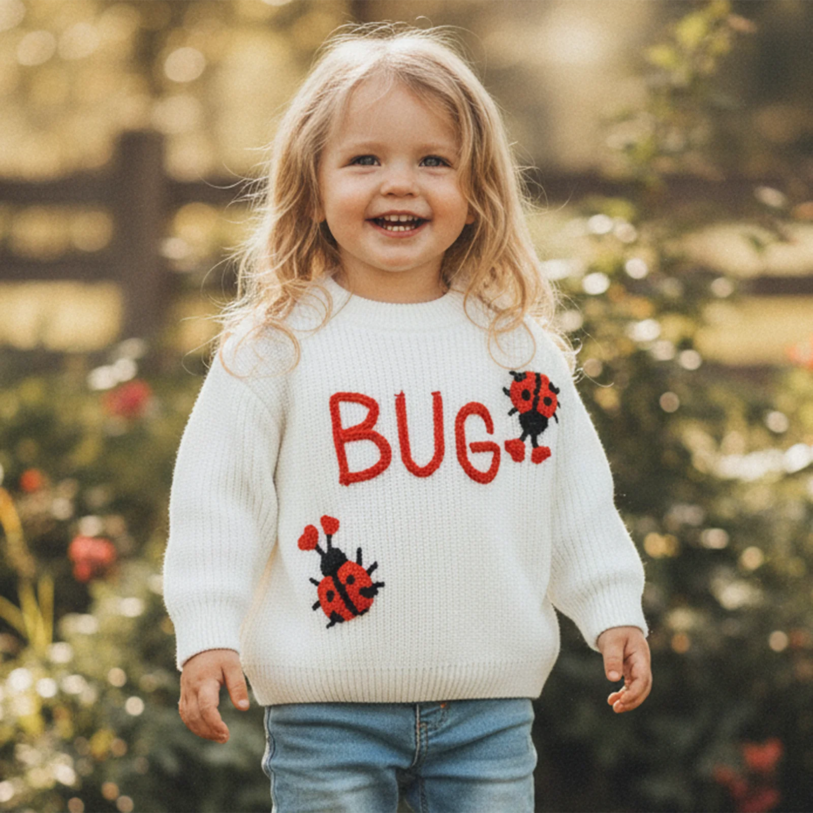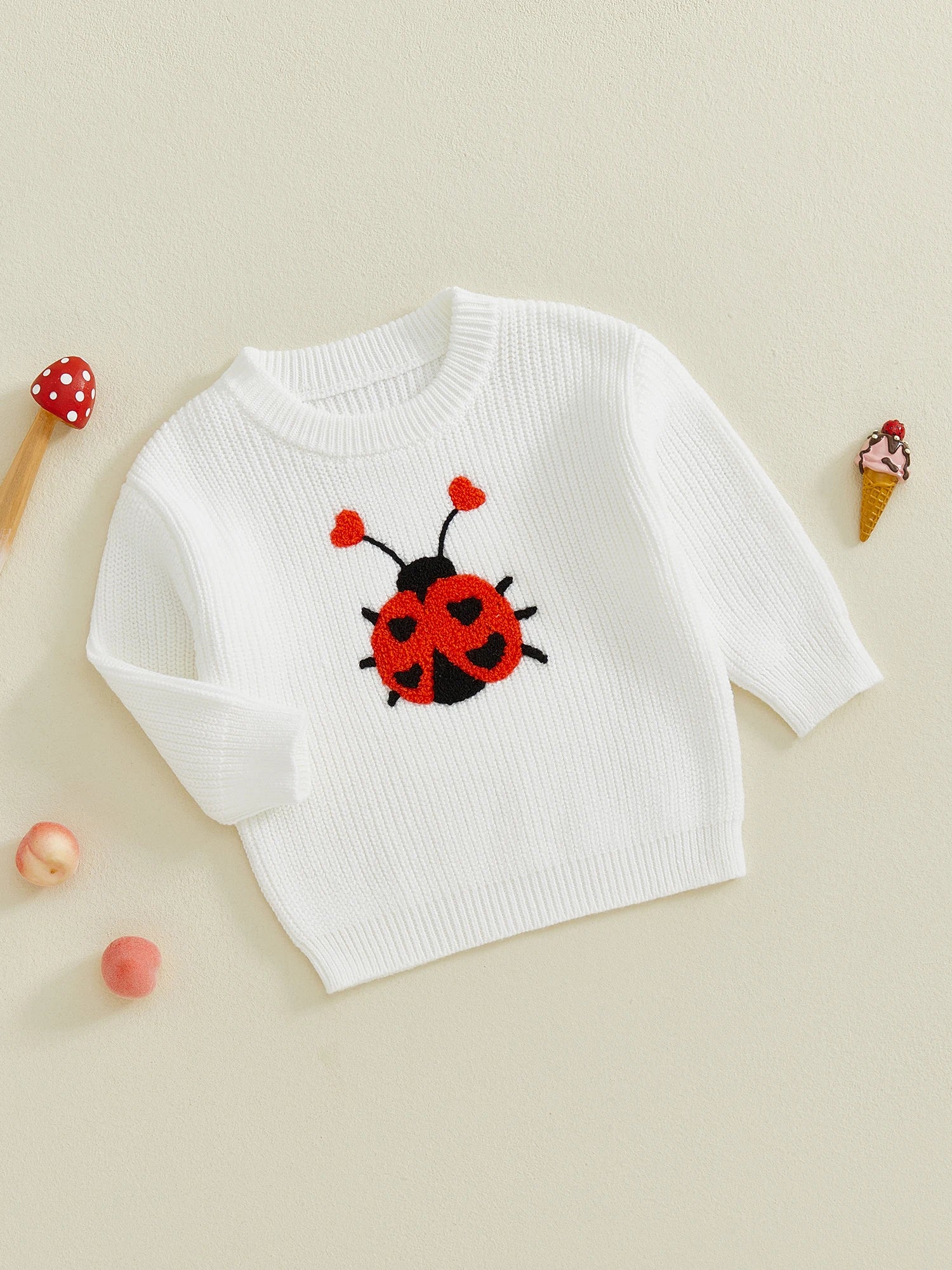Baby & Toddler Knit Sweater - Ladybug Embroidery Pullover