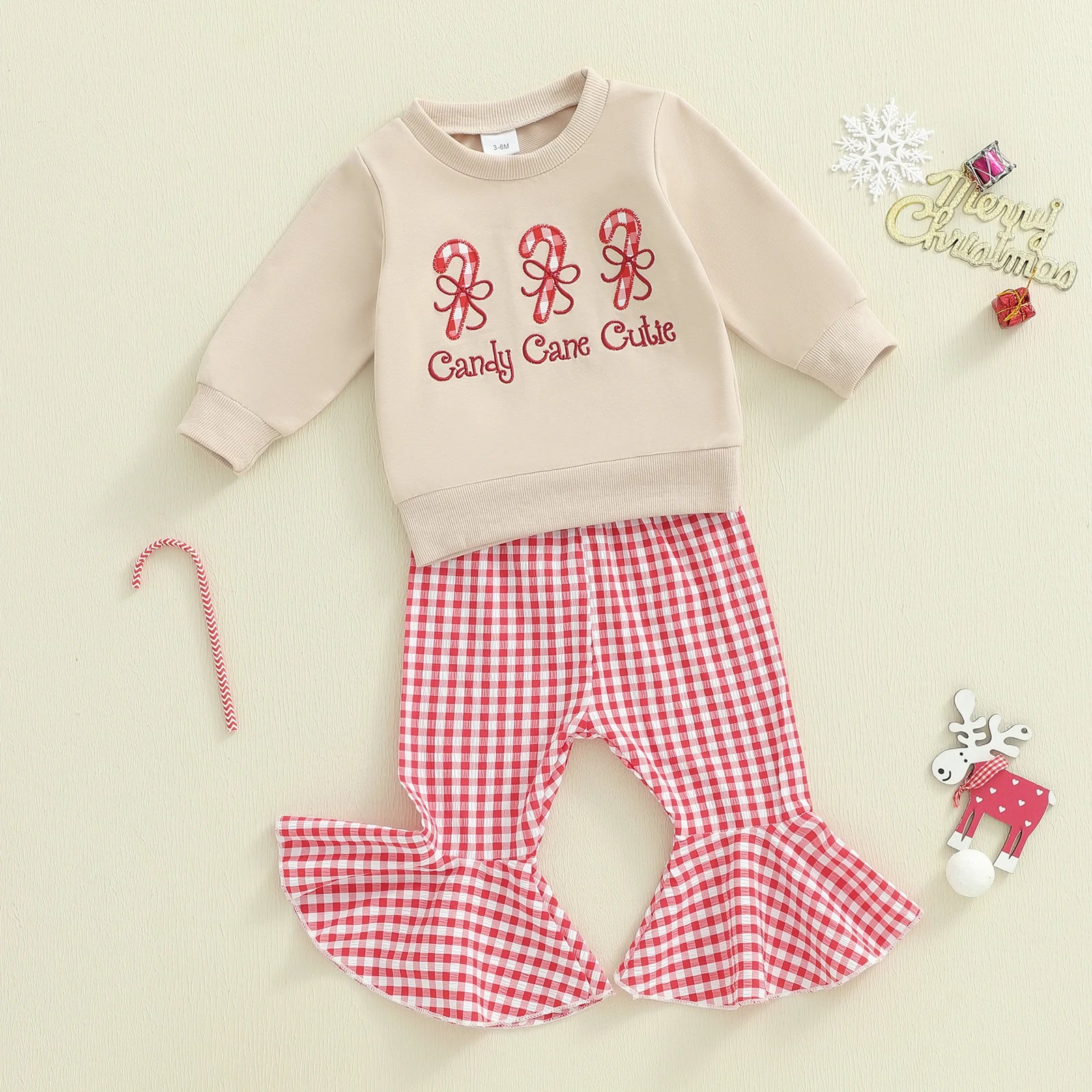 Baby Girls 2-Piece Christmas Clothes Set - Candy Cane Bow Embroidery Sweatshirt & Pants (0-3Y)
