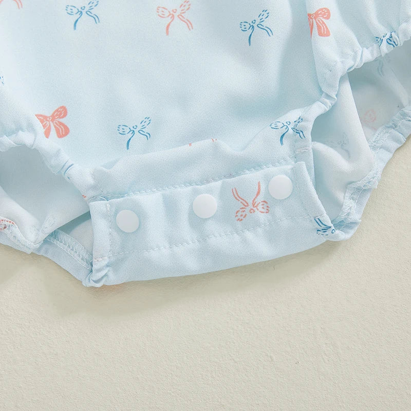 Baby Girls Casual Romper - Long Sleeve Embroidery Bow Print Jumpsuit