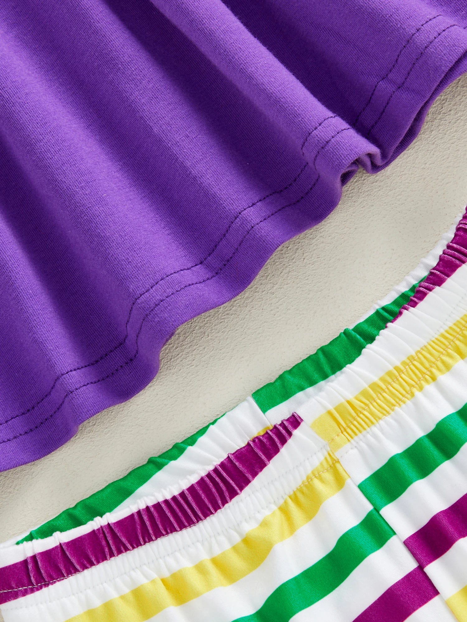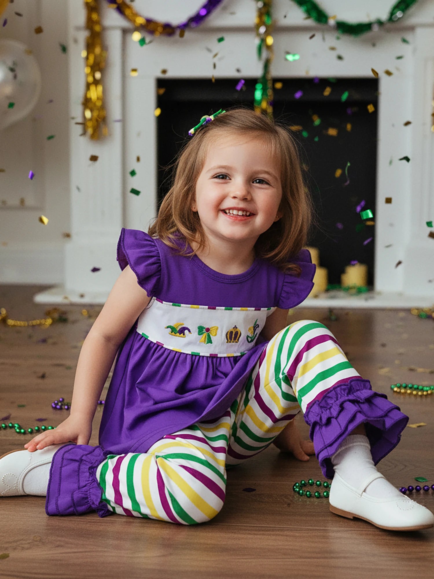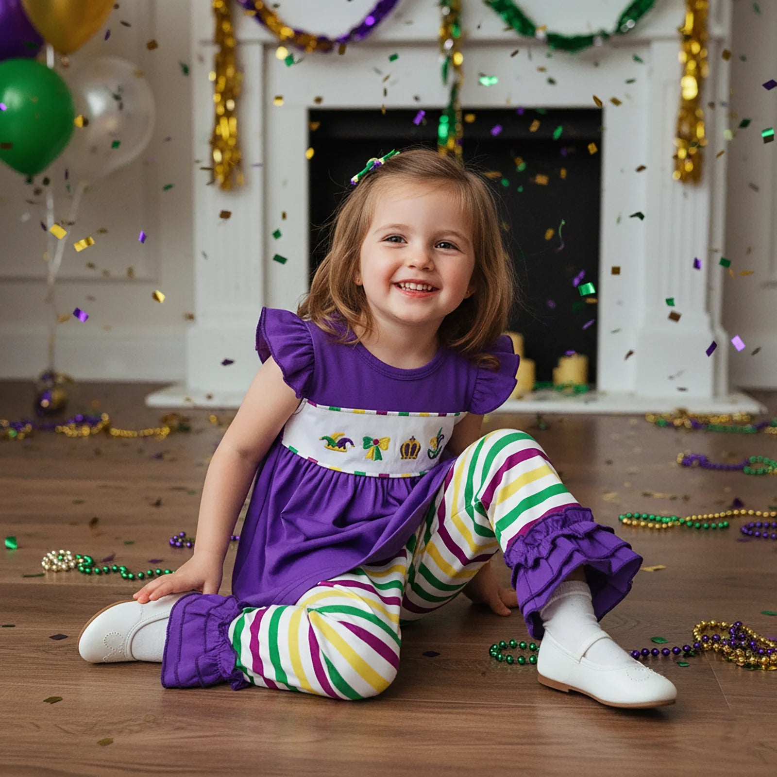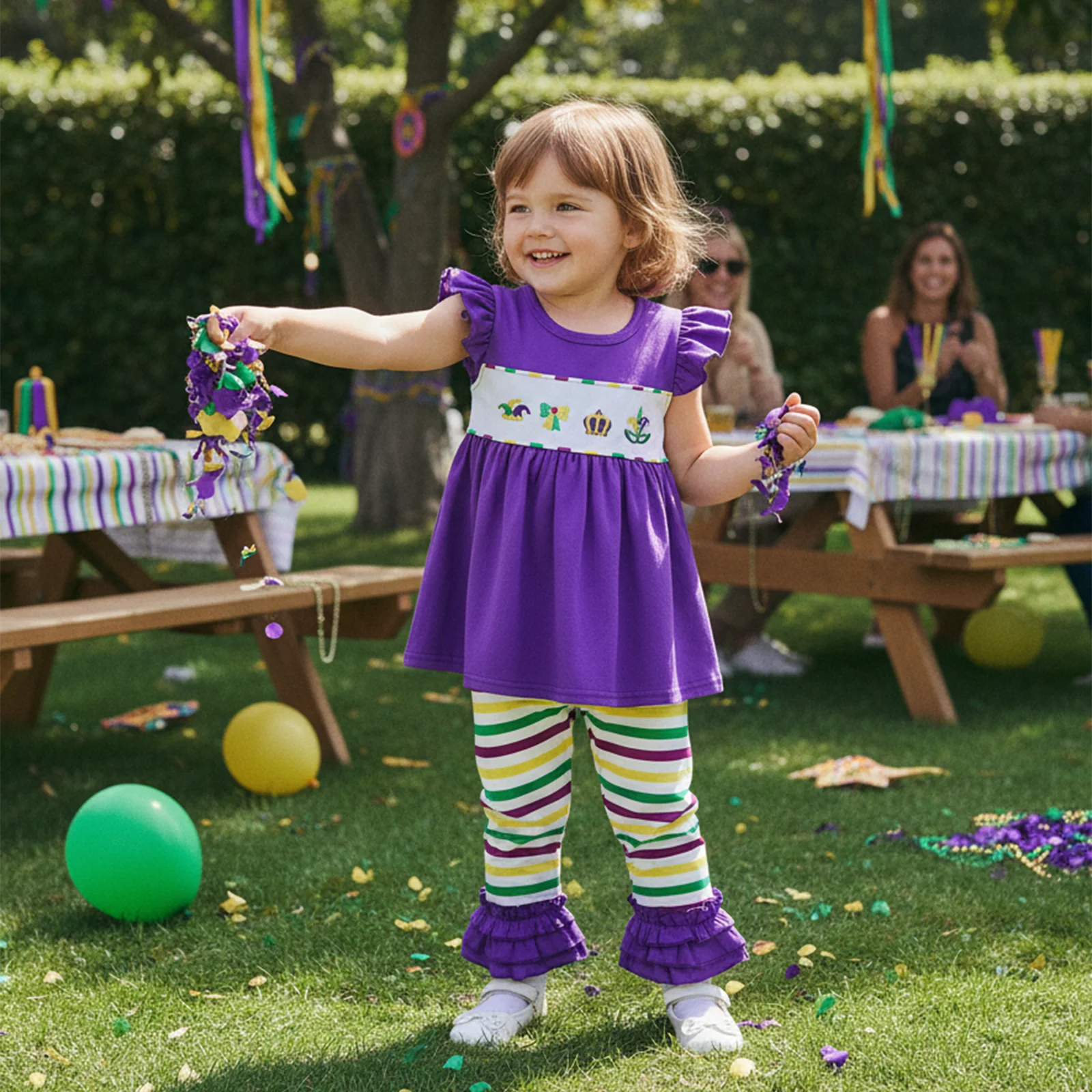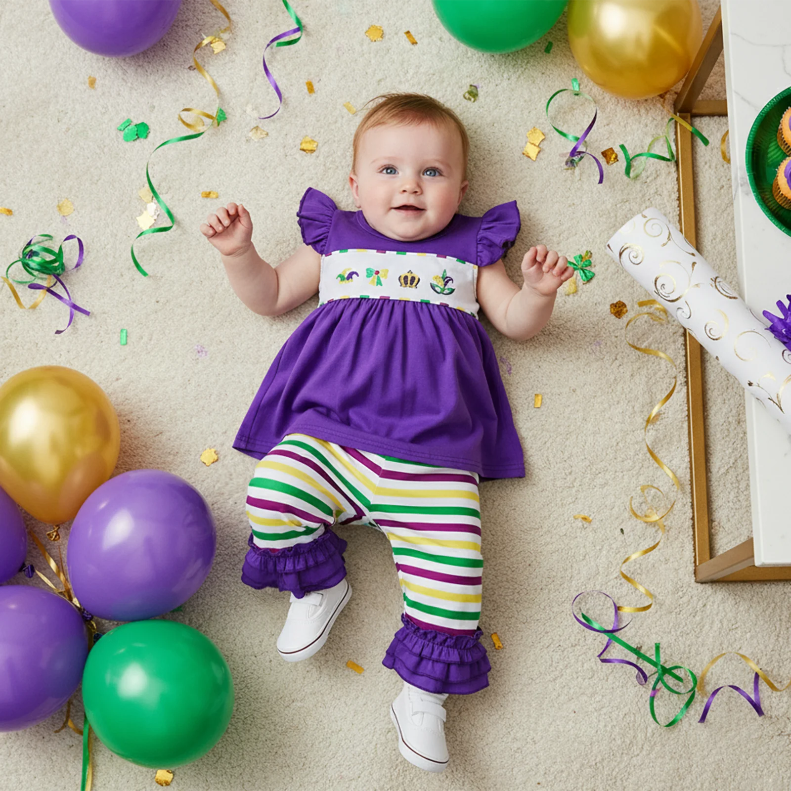 Dress your little one in this delightful two-piece spring outfit set featuring adorable ruffle sleeves and cartoon embroidered details. Perfect for the new season and special occasions.