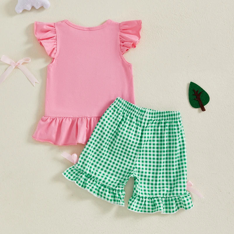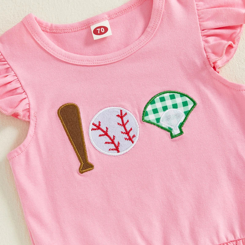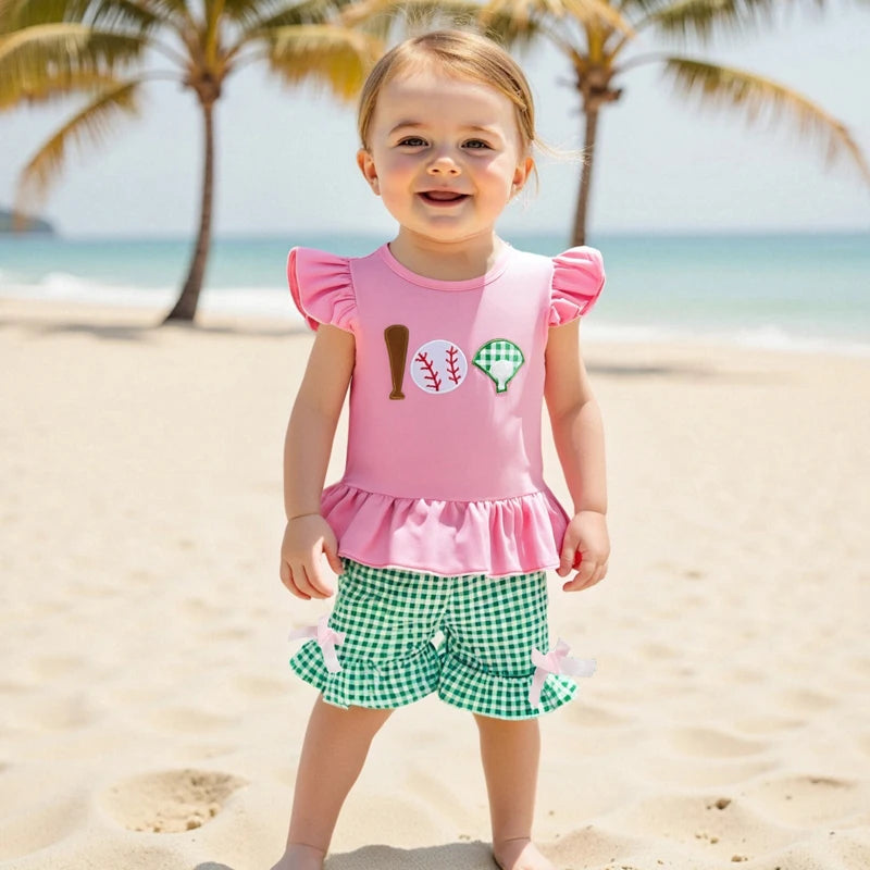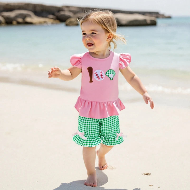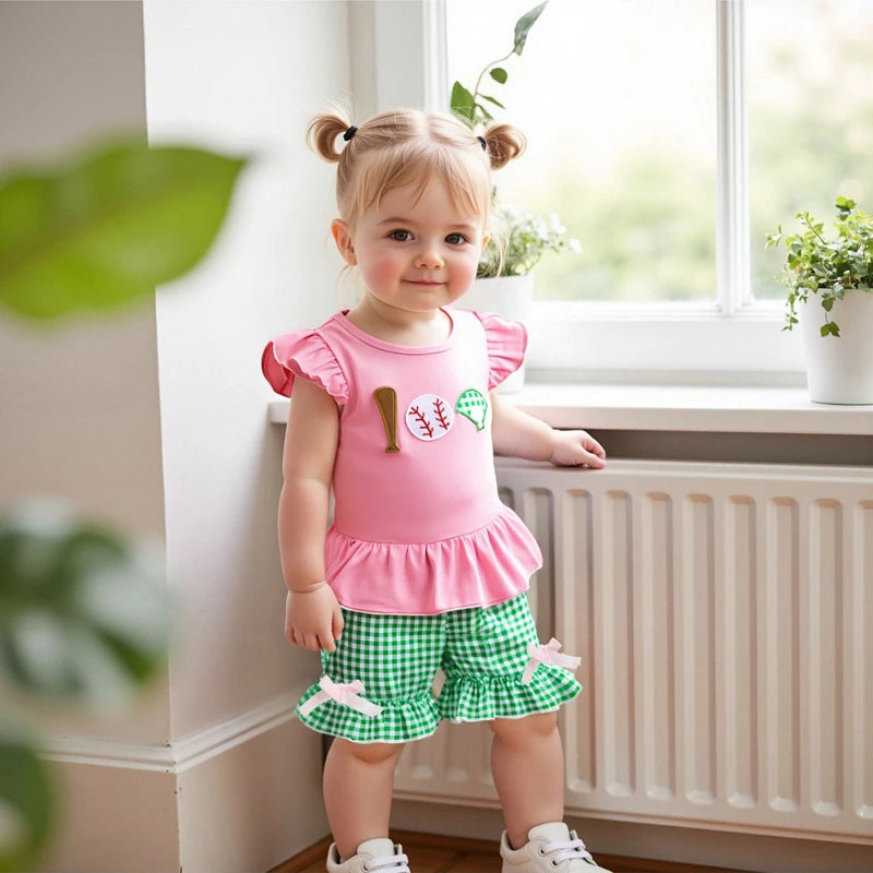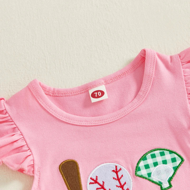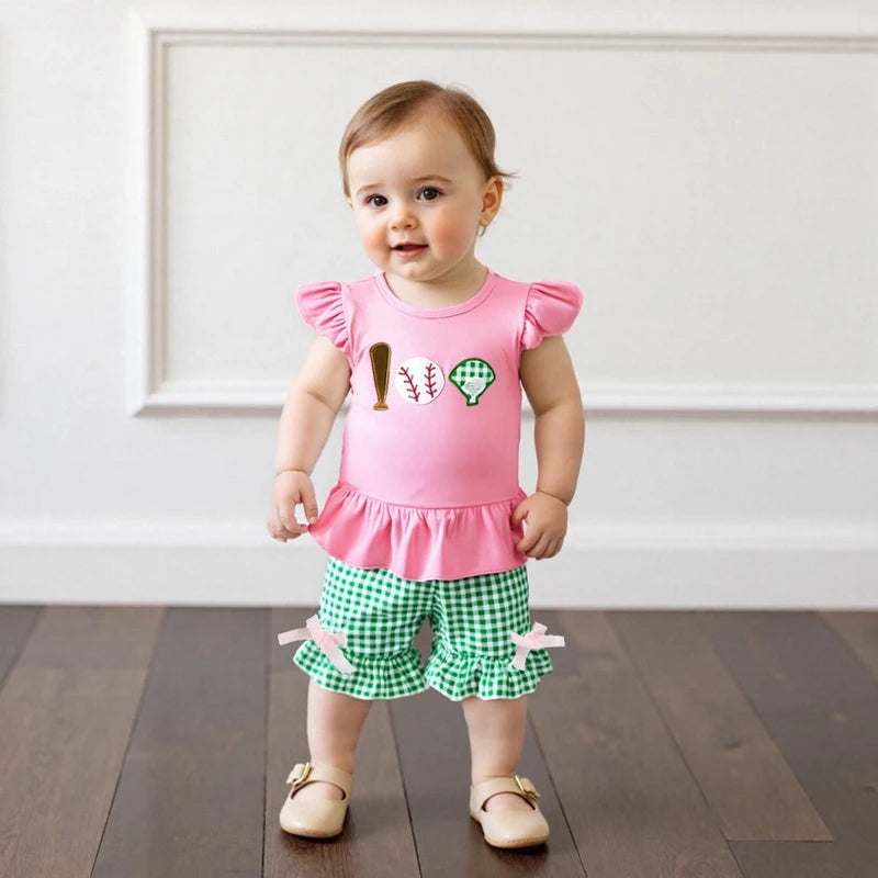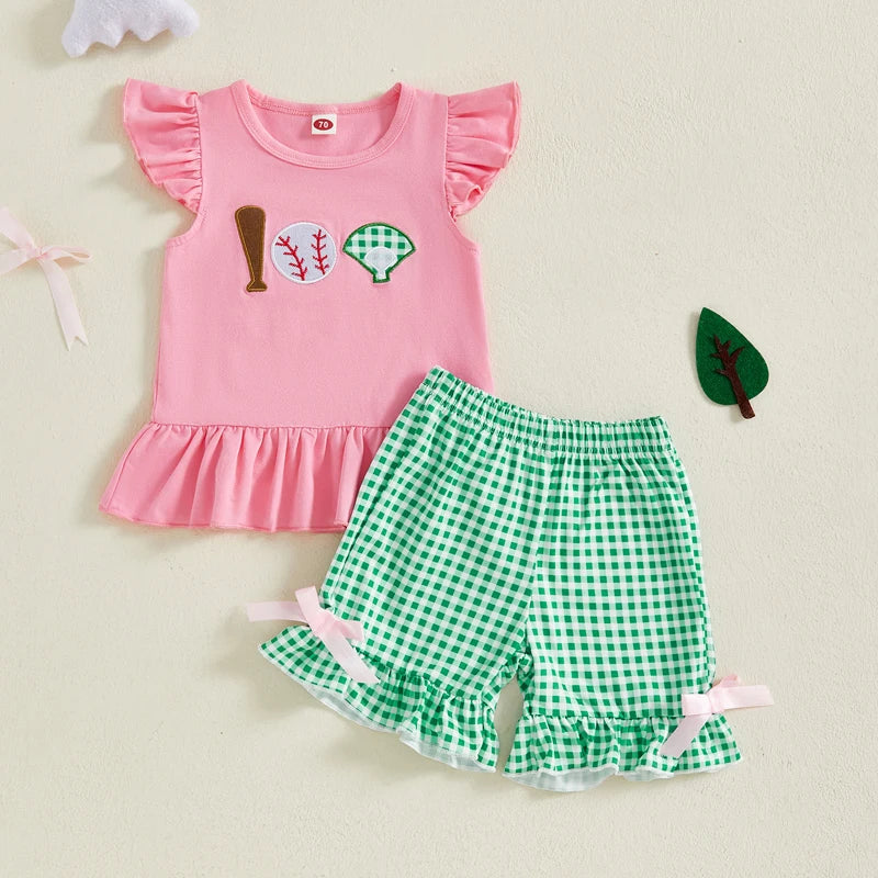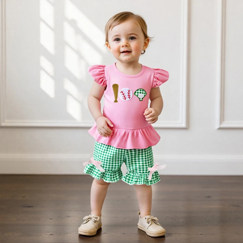 Baby Girls Summer Clothes Set - Baseball Embroidery Ruffle T-Shirt & Shorts