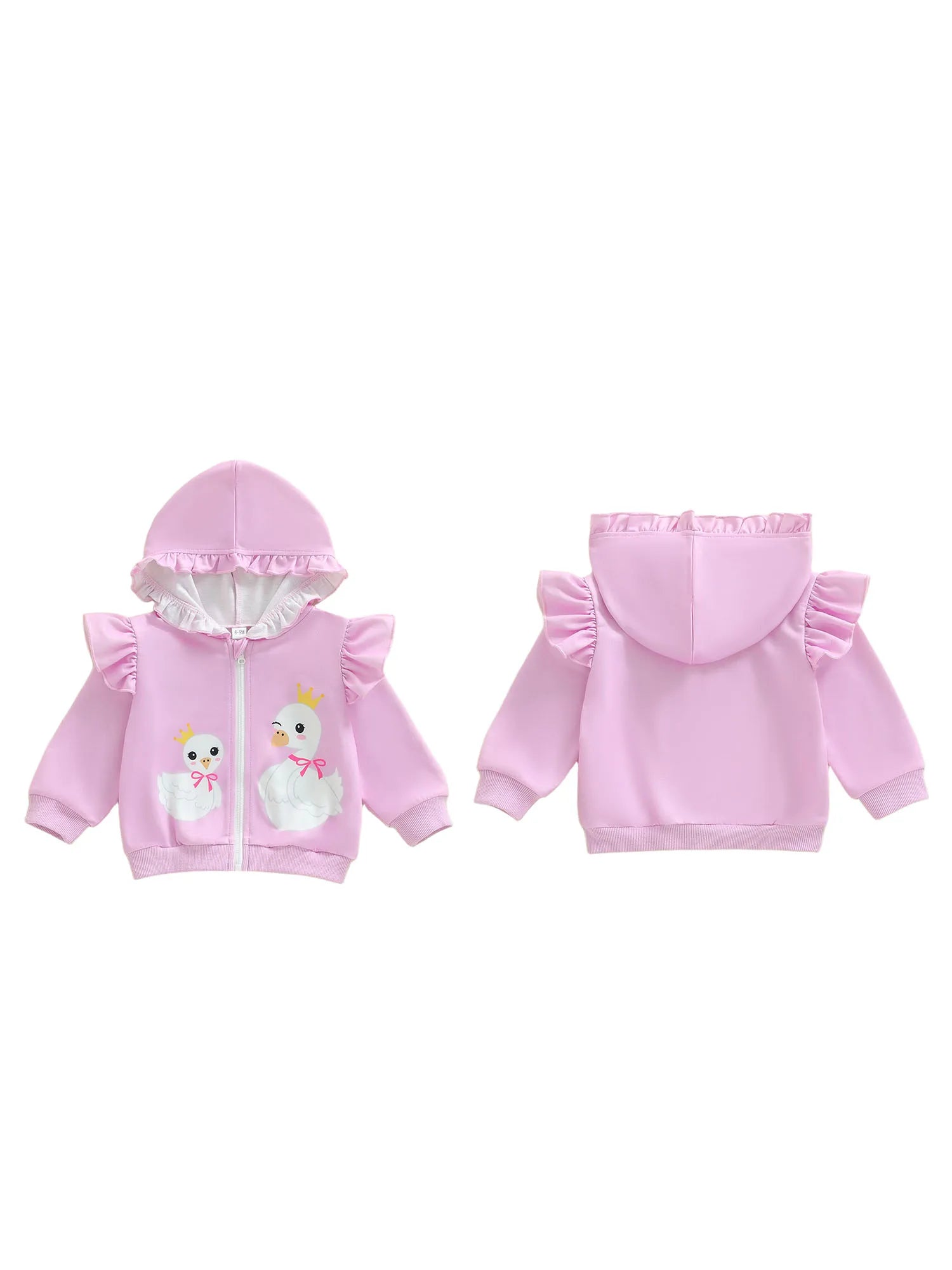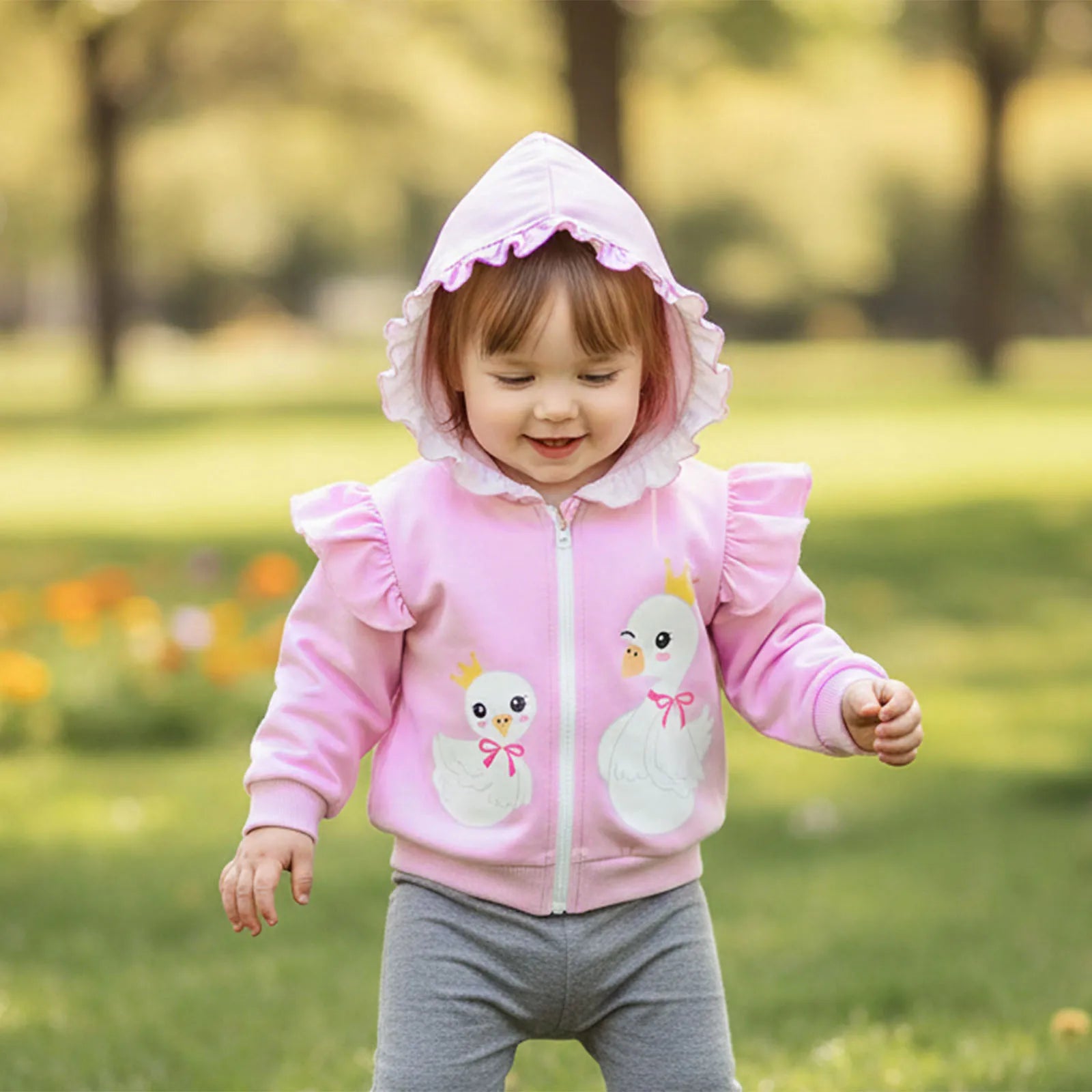 Toddler Girls Hooded Jacket - Goose Print Long Sleeve Coat