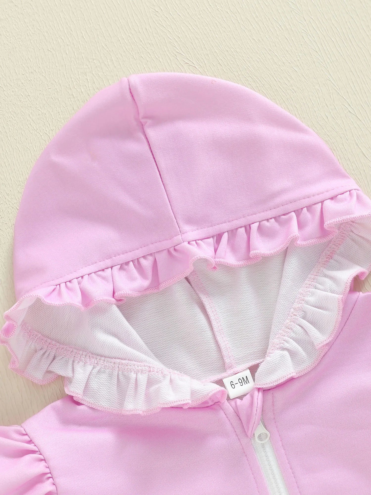 This charming long sleeve jacket features a delightful goose print design and cosy hood, keeping your little one warm and stylish during cooler months. Perfect for outdoor play, nursery runs, or casual outings.