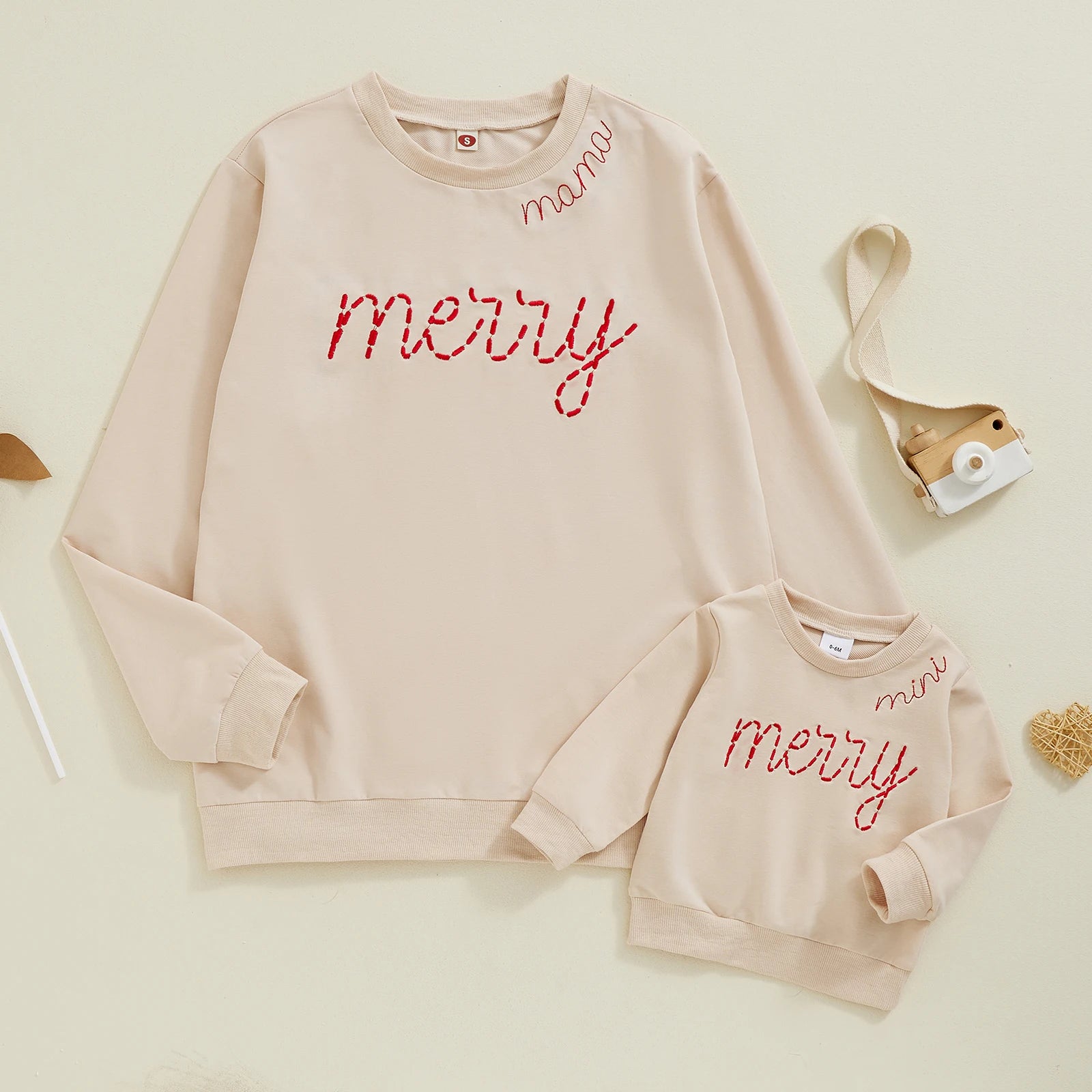 Create precious holiday memories with these charming matching sweatshirts for mum and little one. Featuring festive Christmas letter embroidery, these long sleeve tops are perfect for family photos, holiday gatherings, and cosy winter days together.