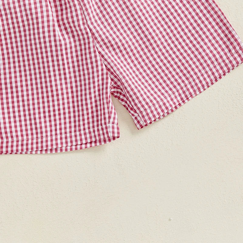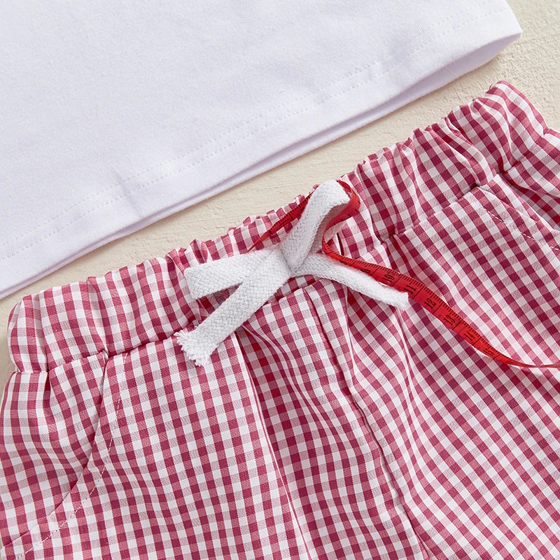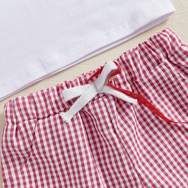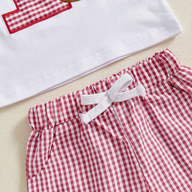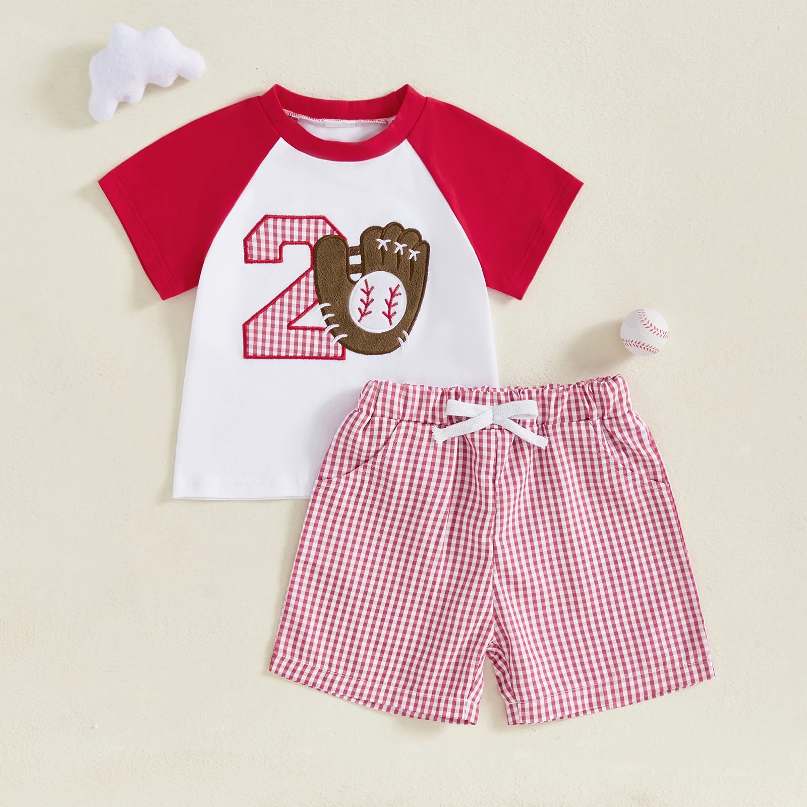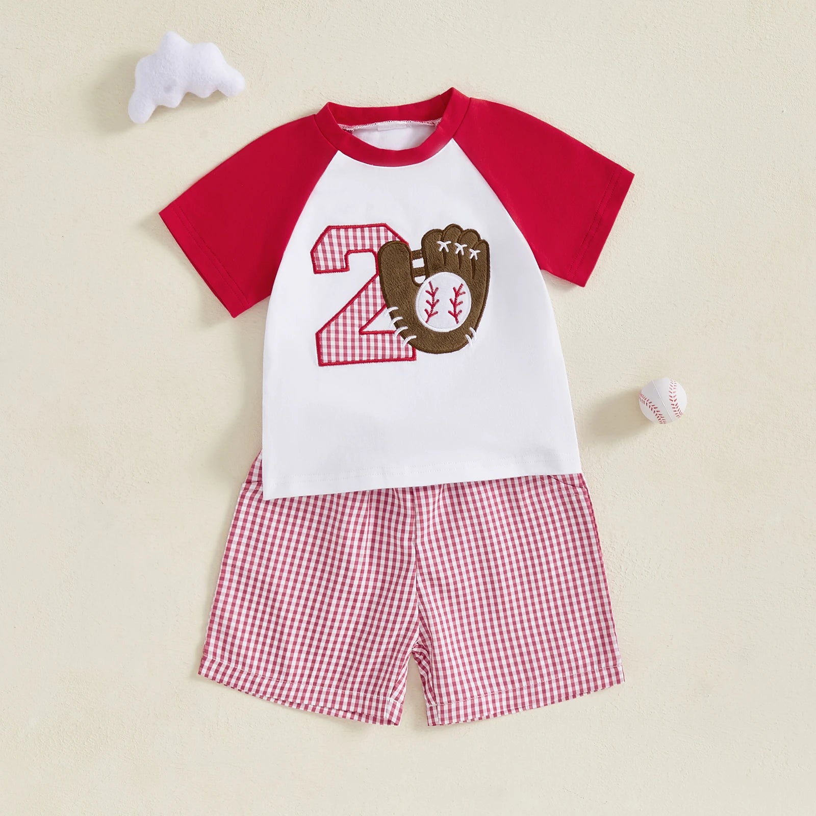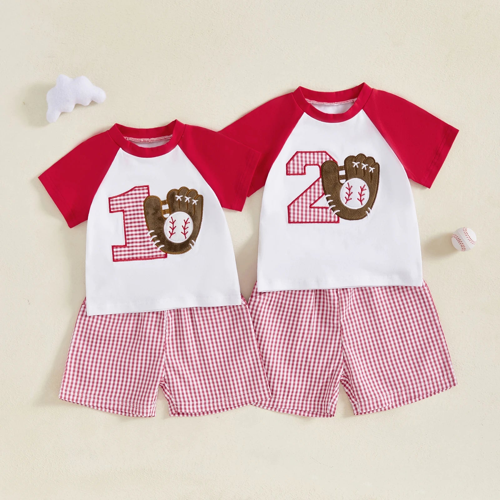 Summer Baby Boys Birthday Baseball Outfit Set - Letter Embroidery T-Shirt & Plaid Shorts (0-3Y)