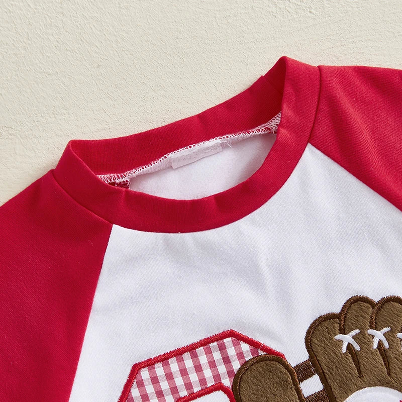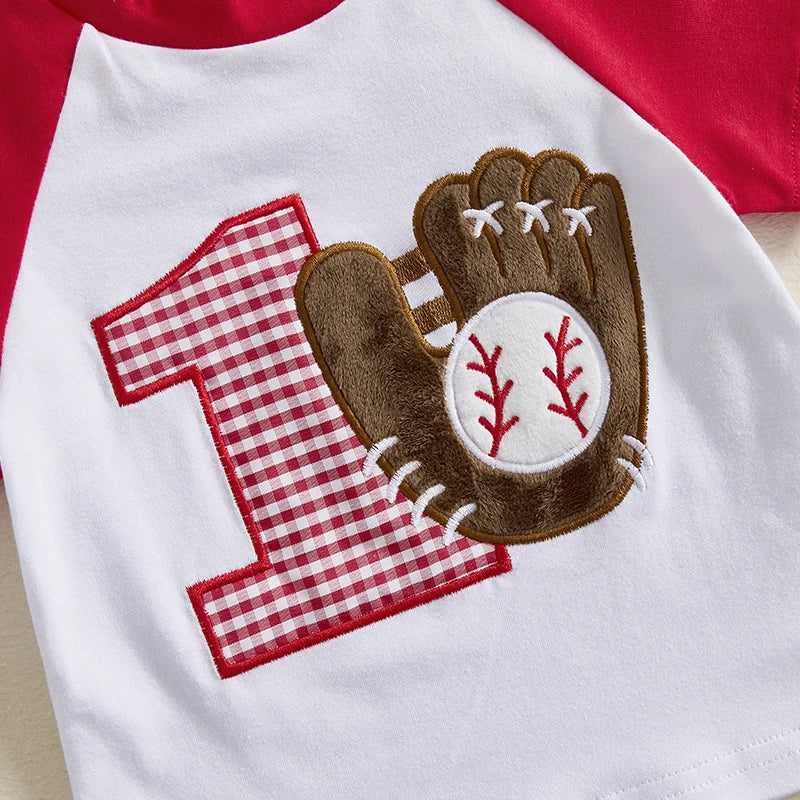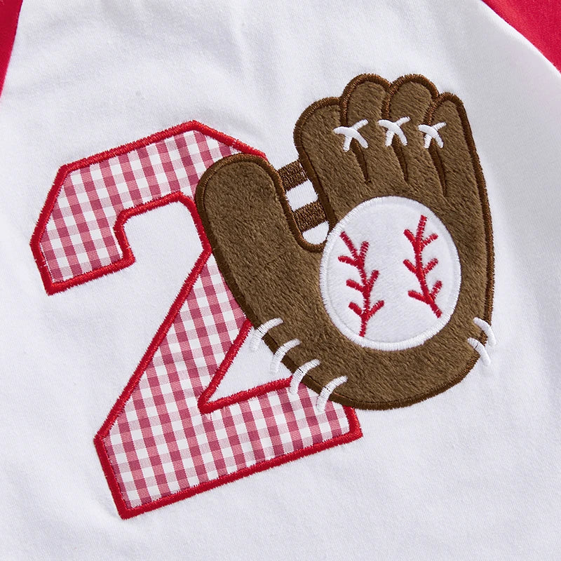 Make your little one's birthday extra special with this adorable baseball-themed 2-piece outfit. Featuring fun letter embroidery and classic patchwork design, this set is perfect for birthday celebrations, sports-themed parties, or any day when your little slugger wants to look their best.