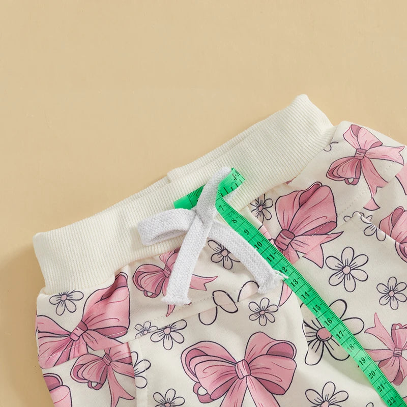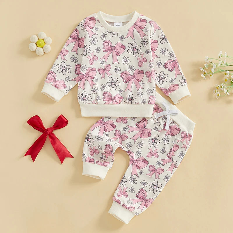 0-3Y Toddler Baby Girls Fall Clothes Sets 2pcs Bow Flower Print Long Sleeve Sweatshirt Elastic Waist Pants