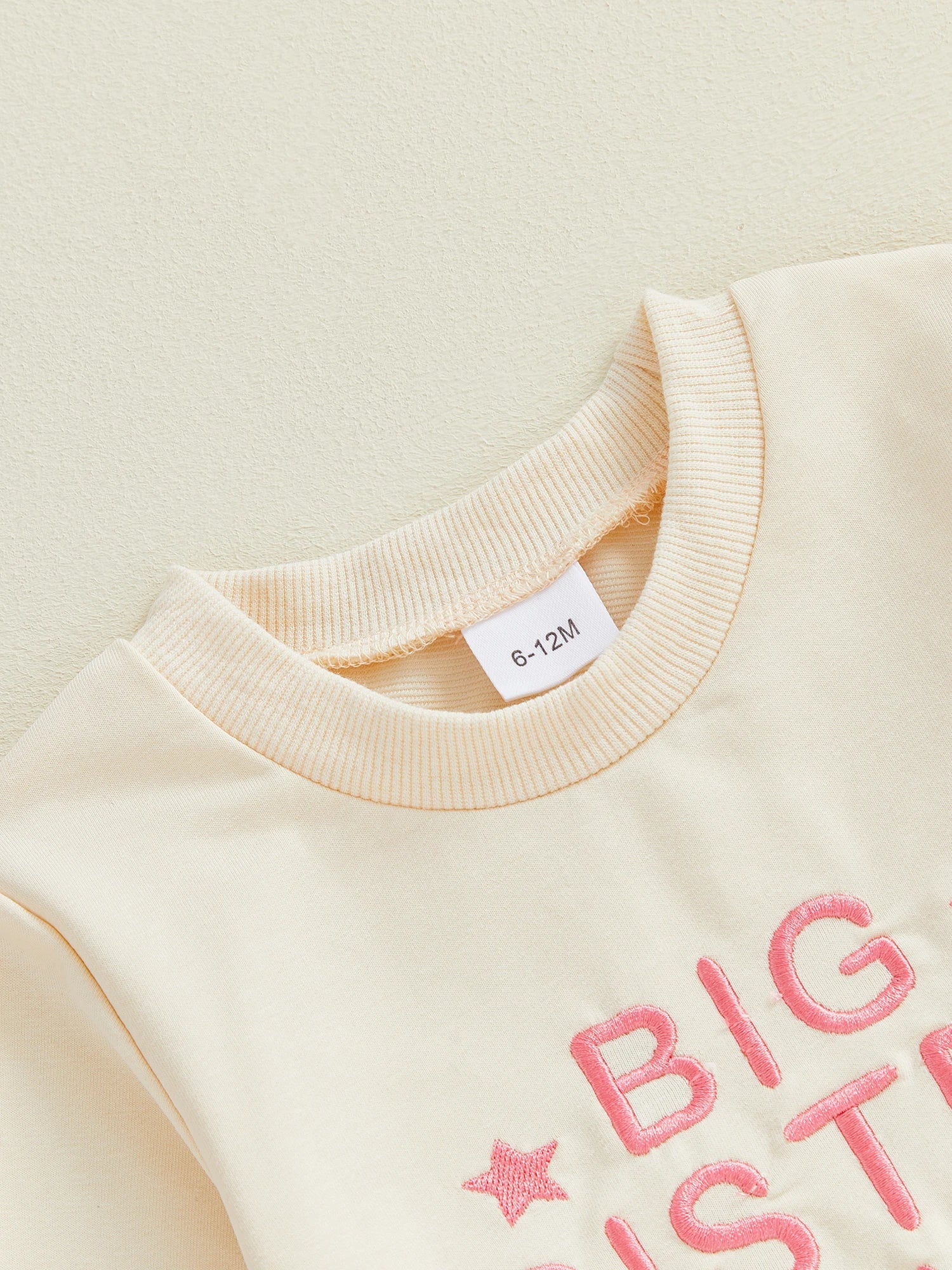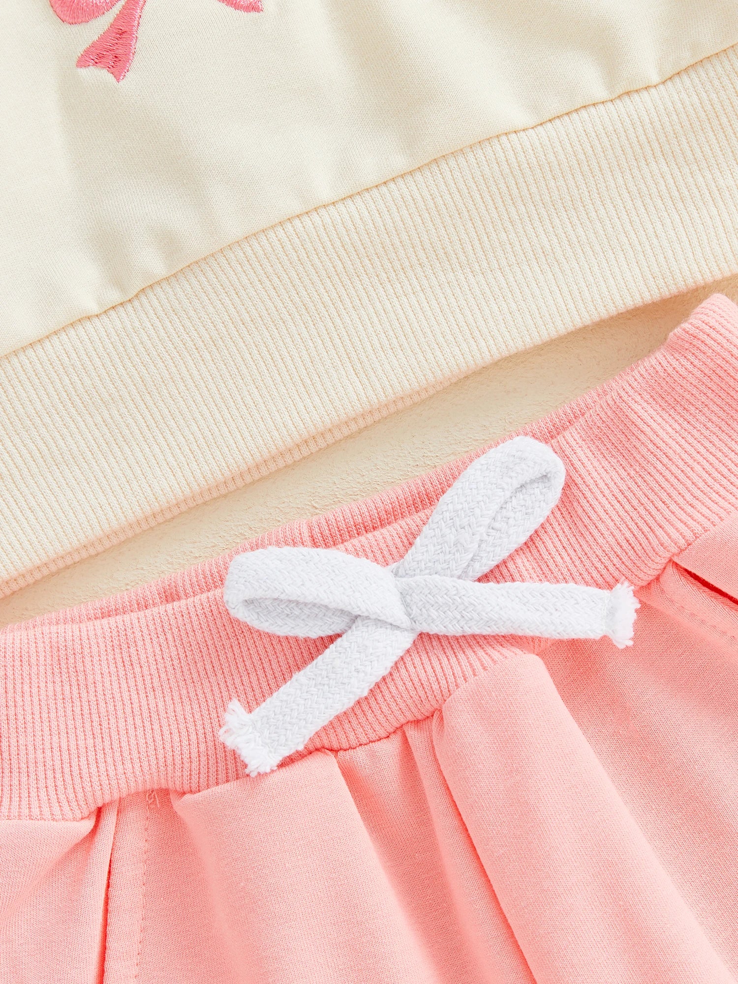 Keep your little one warm and stylish throughout the cooler months with this adorable 2-piece outfit set. Featuring a long sleeve crew neck sweatshirt with charming letters, star, and bow embroidery paired with coordinating pants, this ensemble is perfect for autumn and winter adventures.