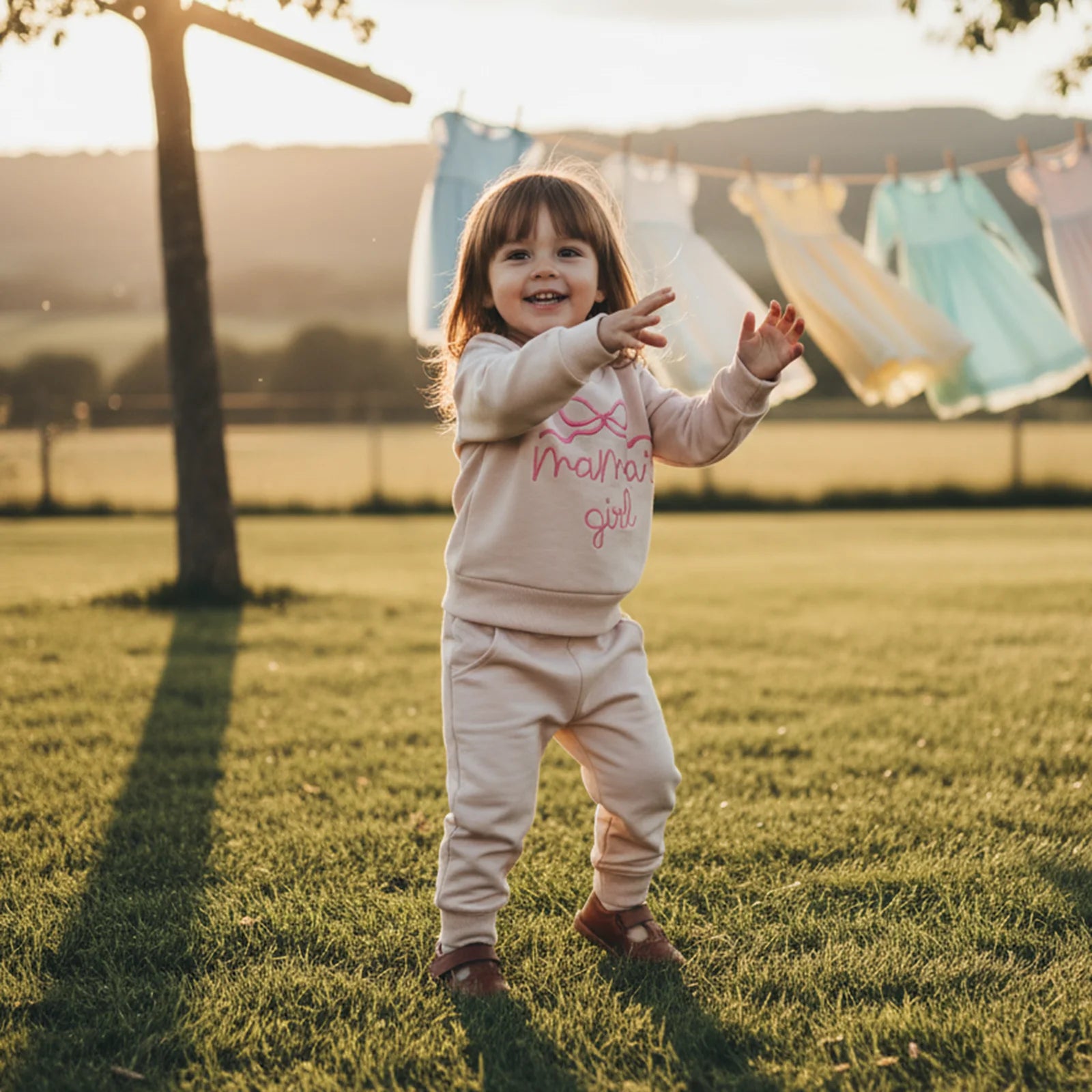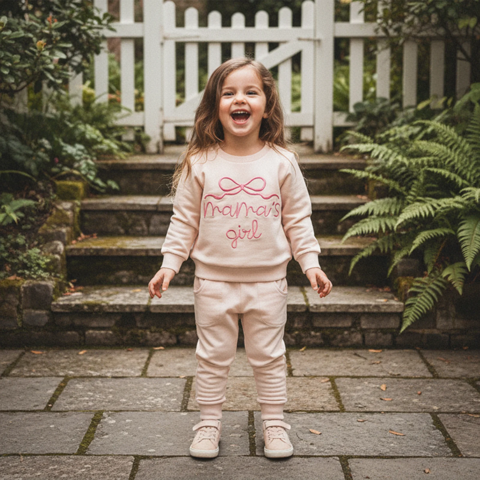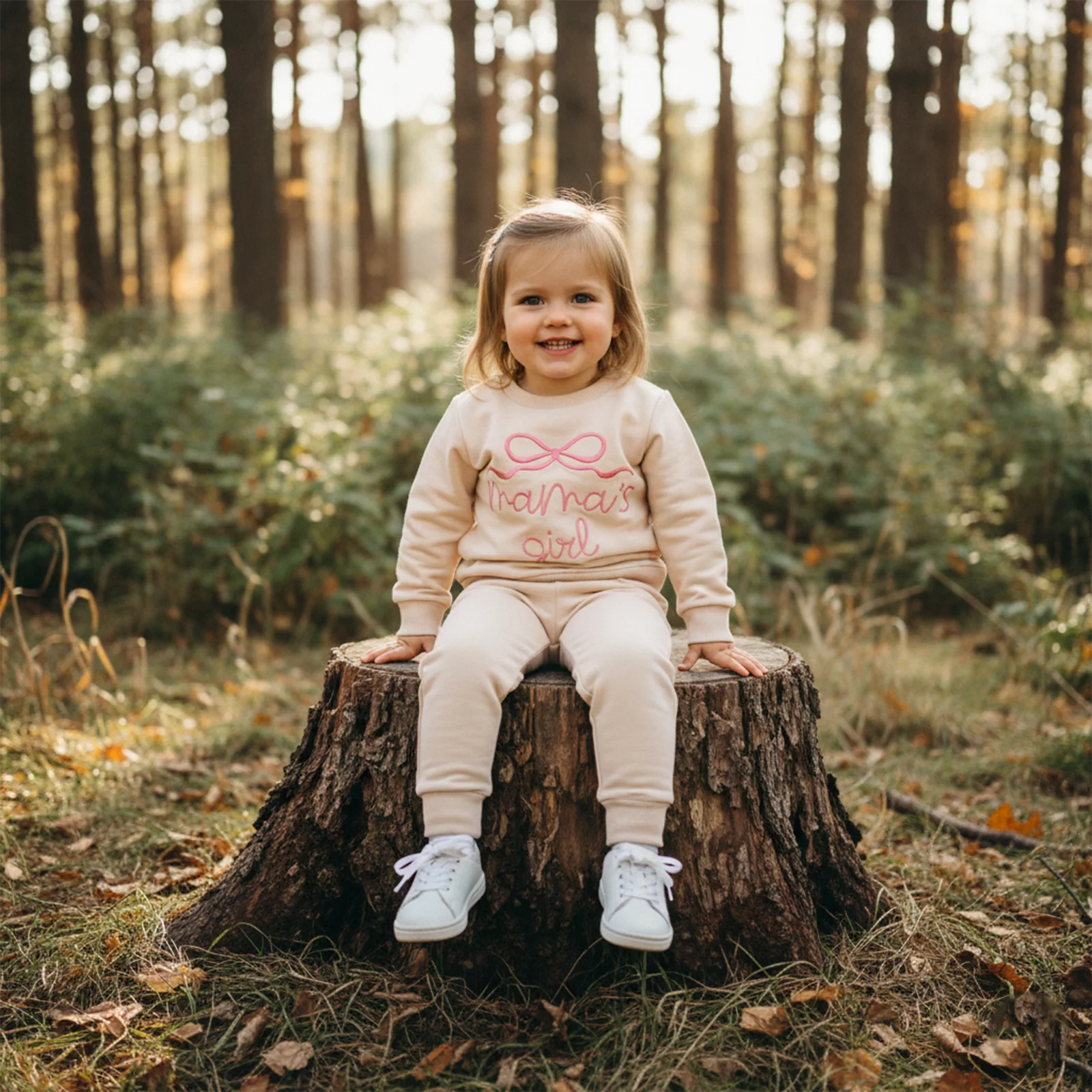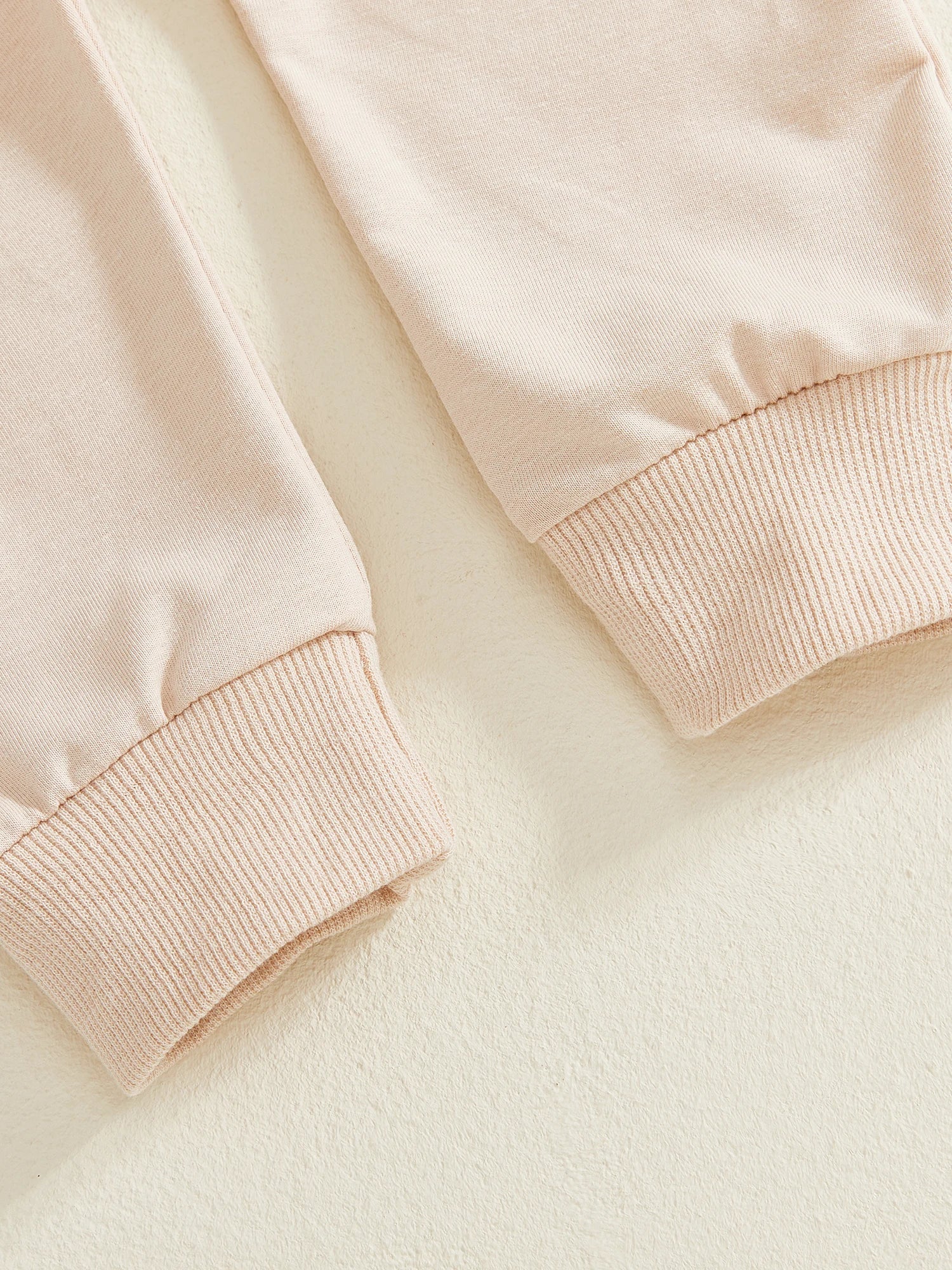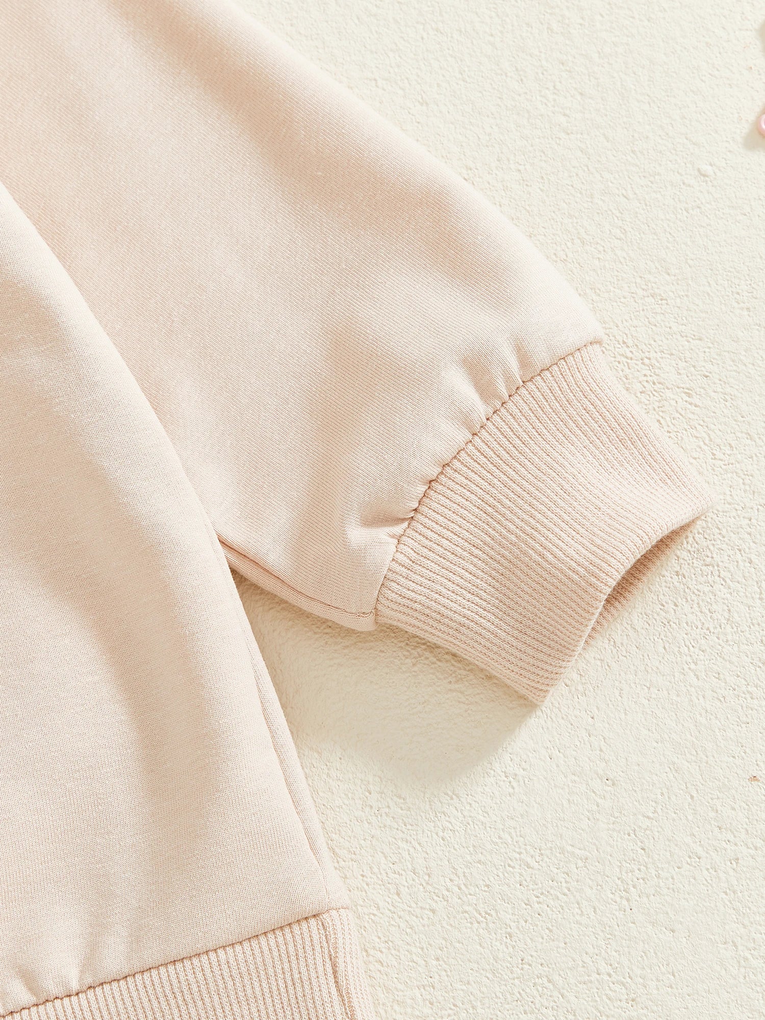 Dress your little one in sweet, comfortable style with this charming 2-piece outfit set. Featuring a long sleeve sweatshirt with adorable bow and letter embroidery paired with solid colour pants, this ensemble is perfect for everyday wear, playdates, and casual outings.