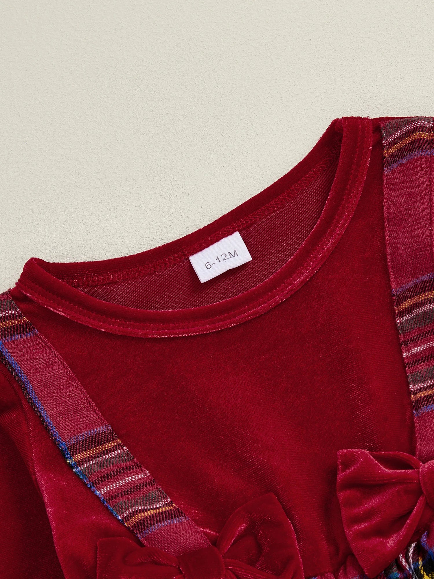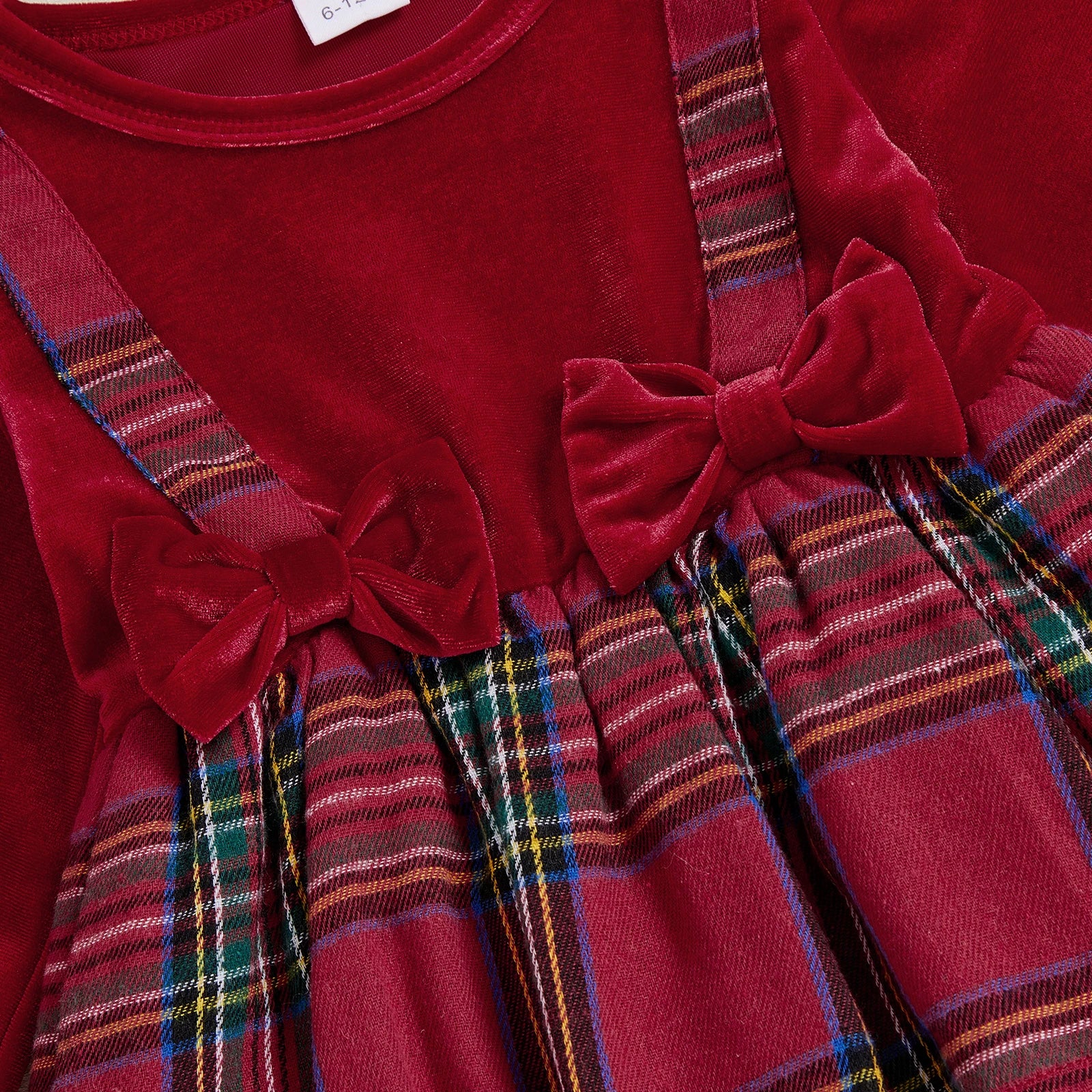 Baby Girls Christmas Plaid Velvet Party Dress (0-4Y)