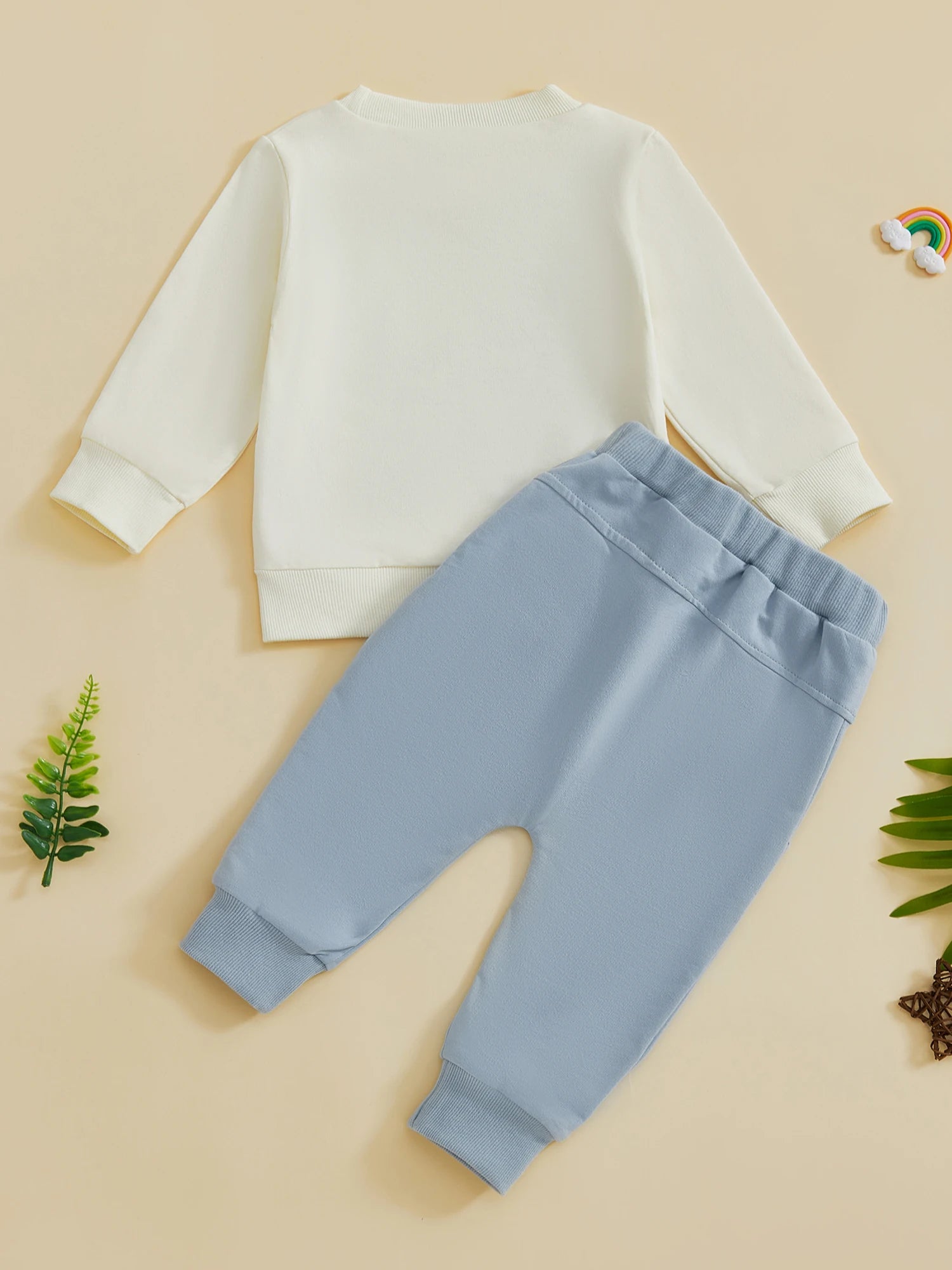- Complete 2-piece set: sweatshirt and elastic waist pants