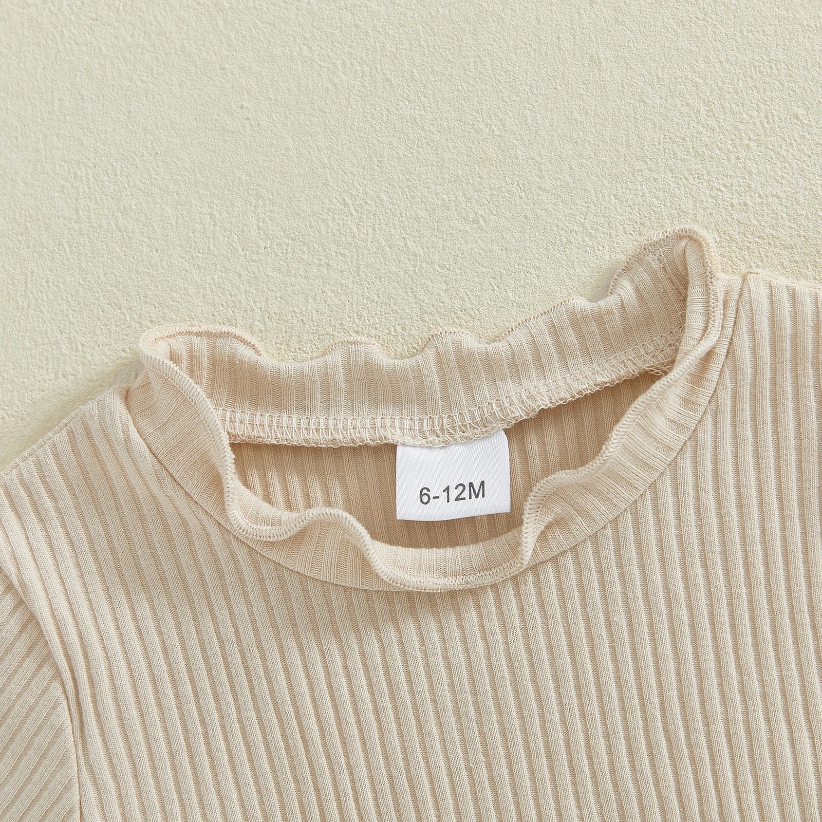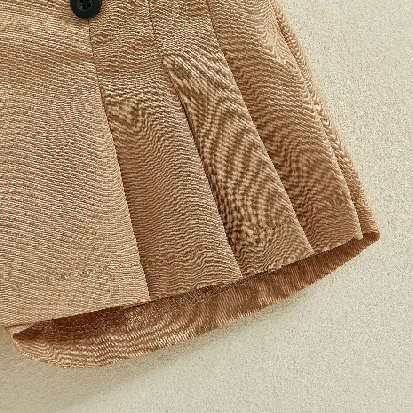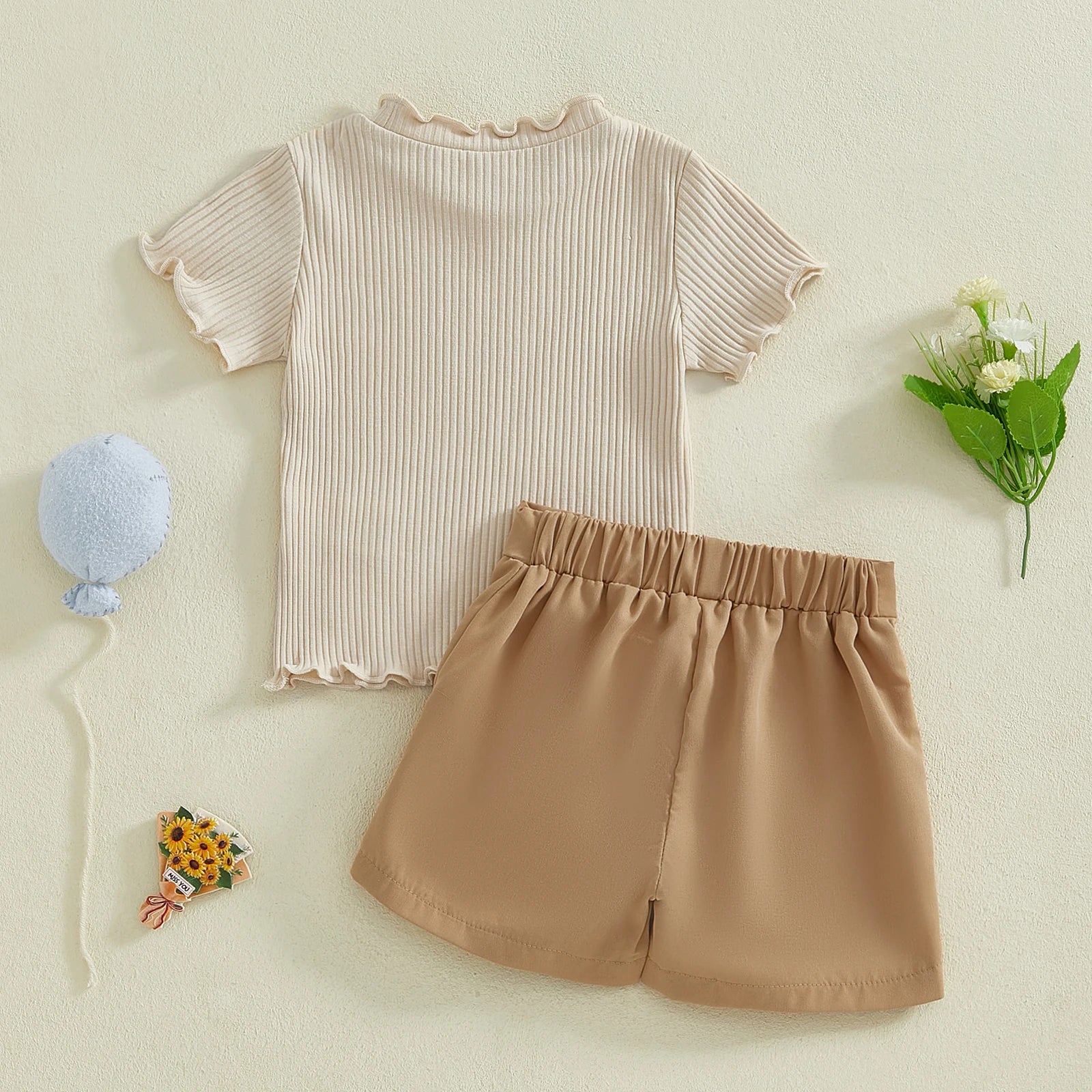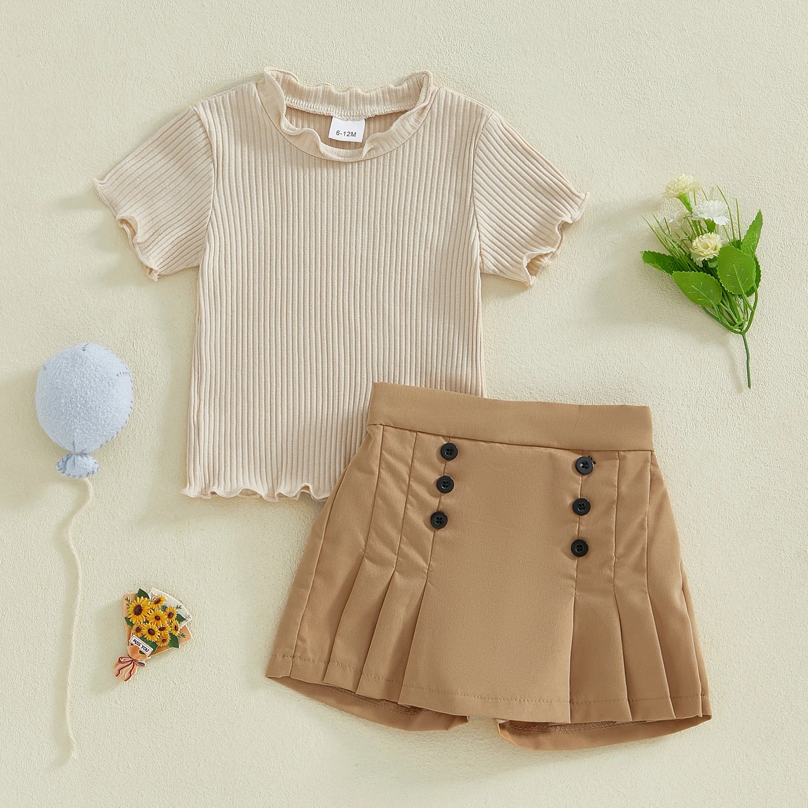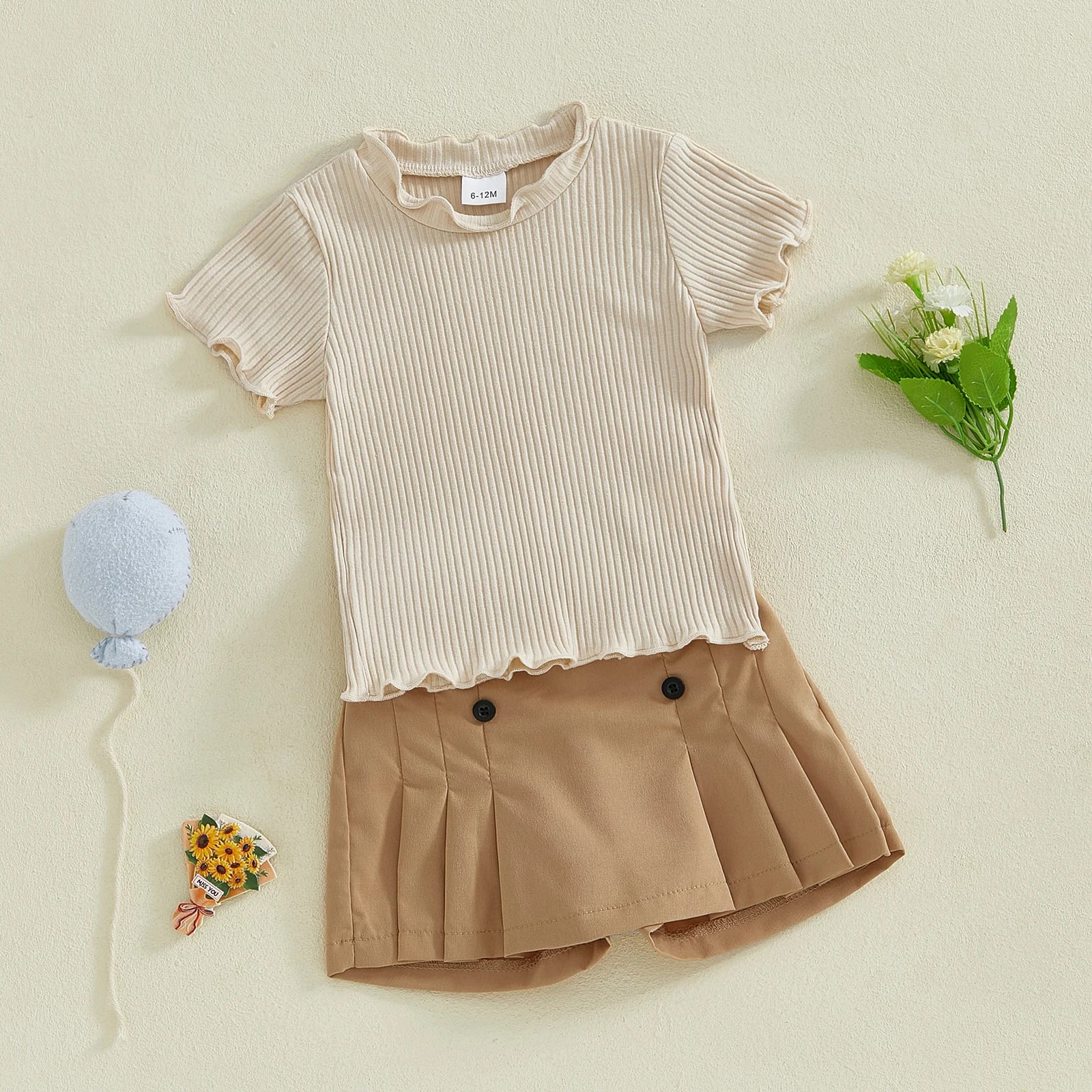 0-4Y Kids Girls Summer Clothes Sets Short Sleeve Ribbed Top with Pleated A Line Skirt