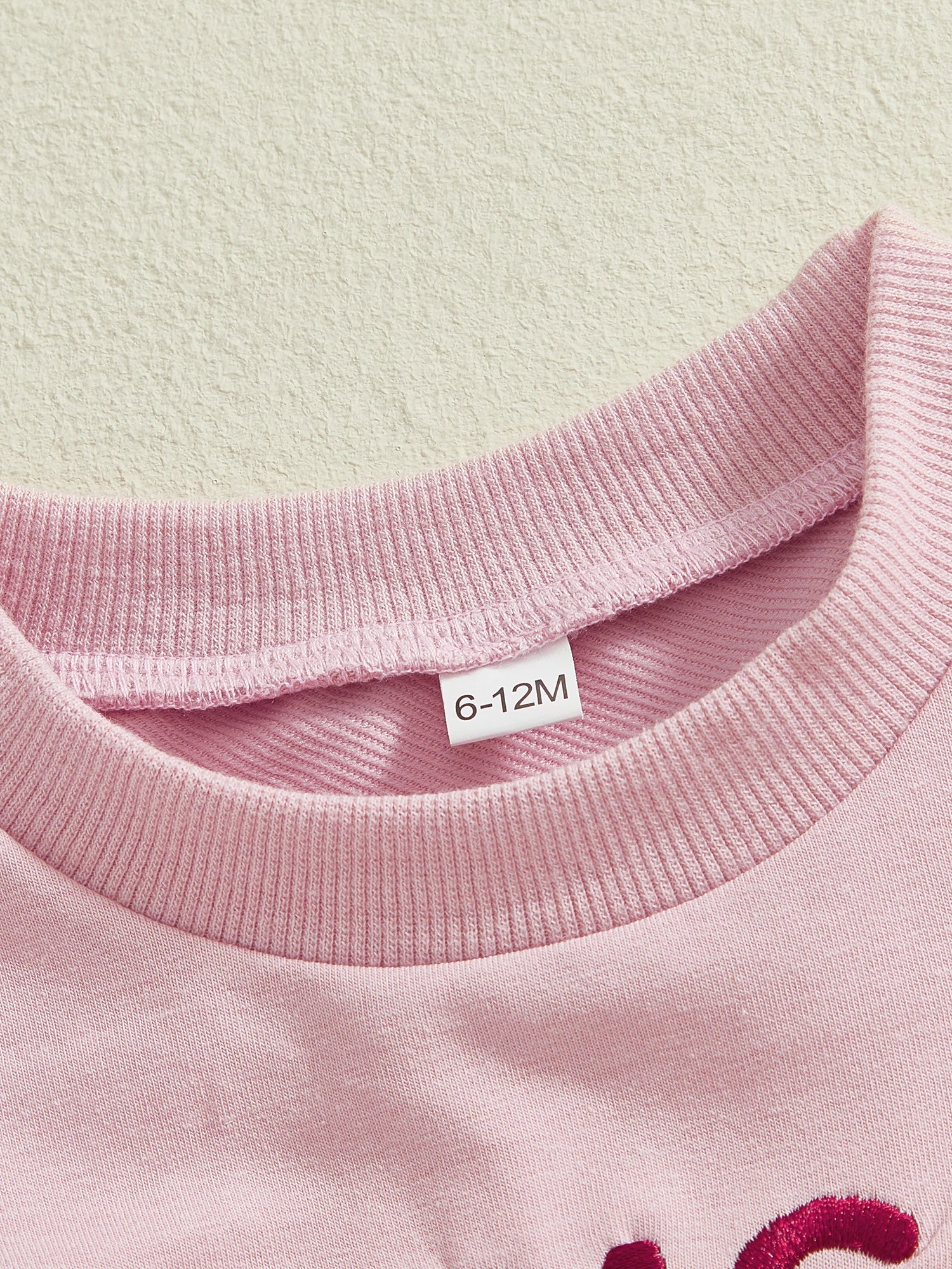 This charming pullover top features delicate letter embroidery and a classic round neck design, perfect for autumn and winter wear. Soft, comfortable fabric keeps your little one warm while looking adorable.